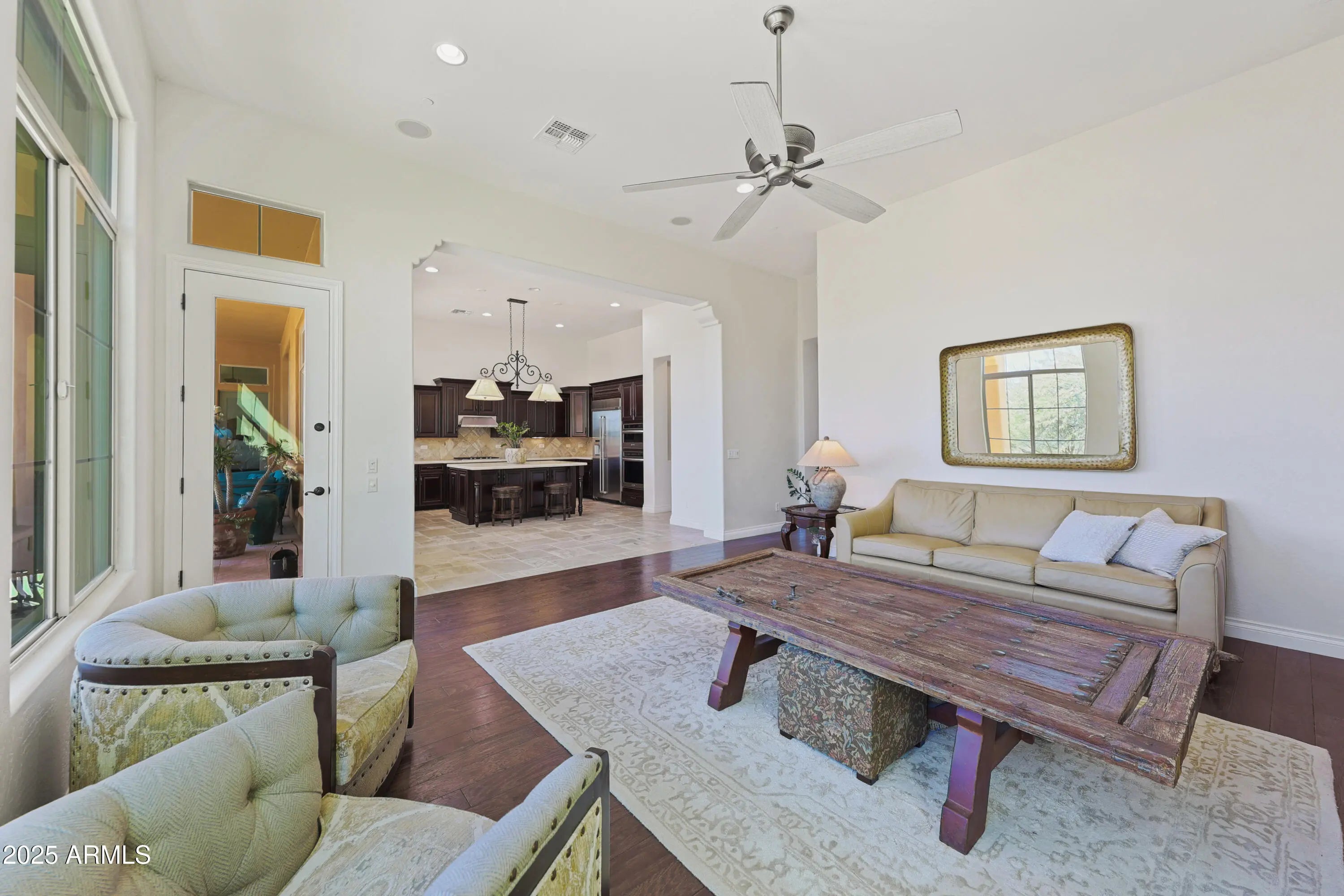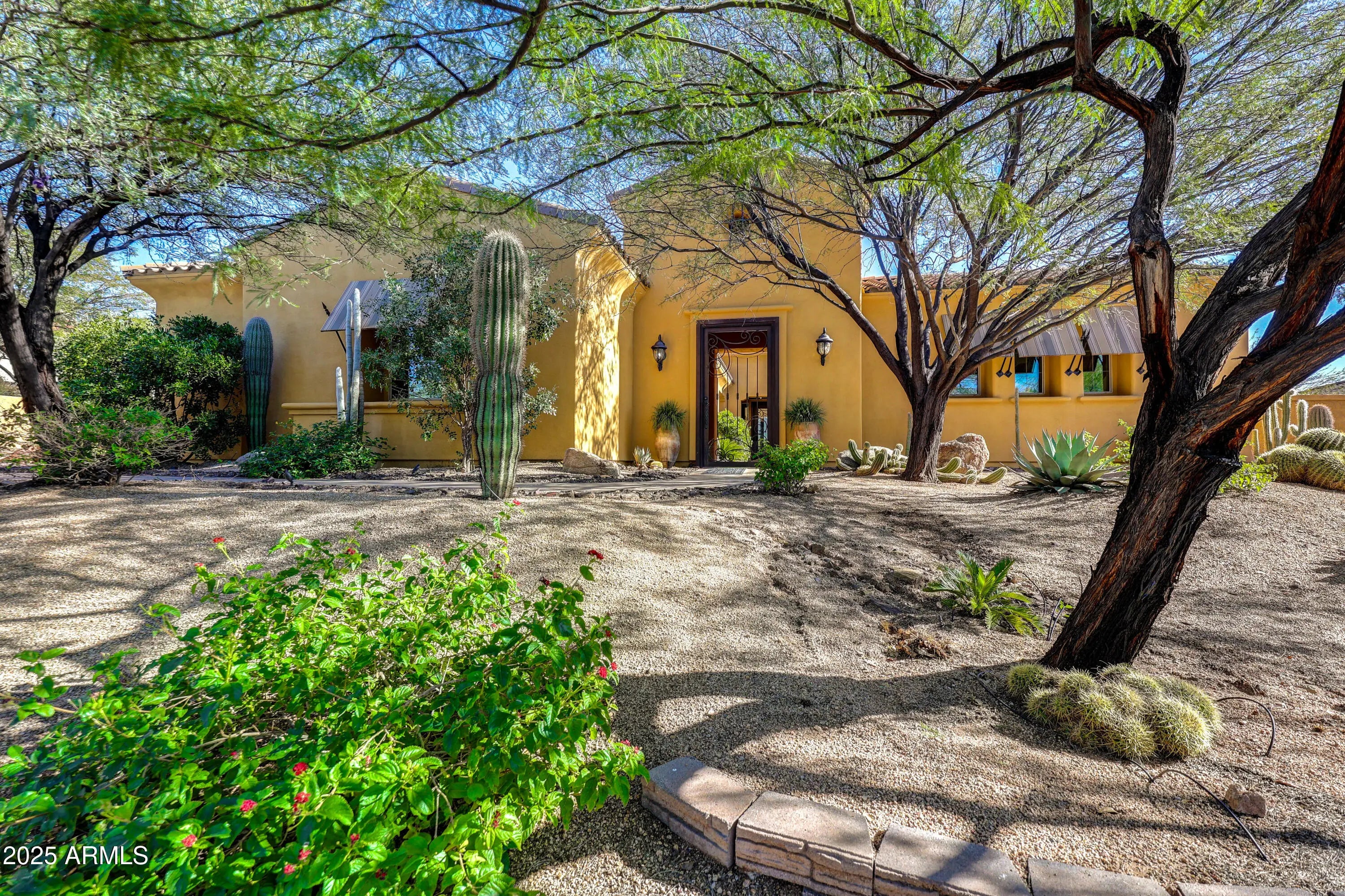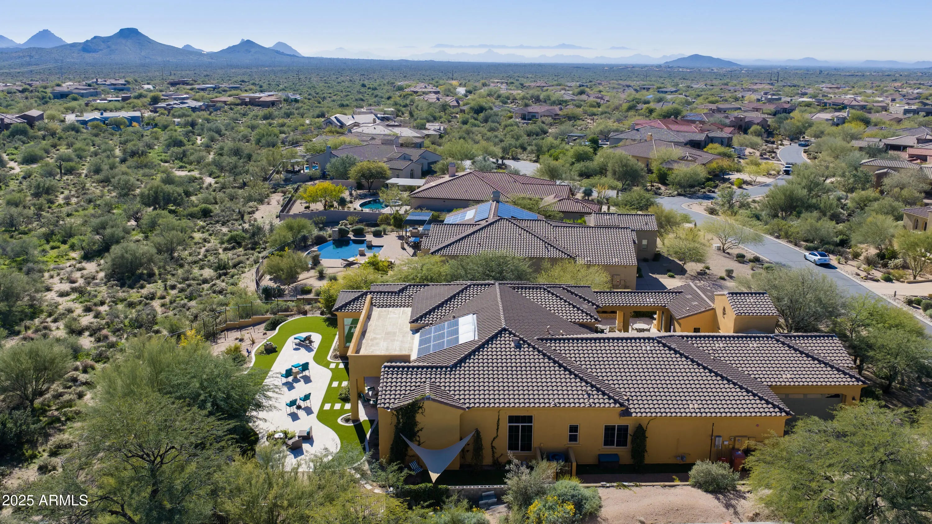 Located within an exclusive, gated community, this expansive residence in Mirabel Village offers sweeping mountain and desert views, exceptional privacy, and a true North Scottsdale lifestyle. The thoughtfully designed floor plan features 5 bedrooms and 4.5 baths, including a full guest casita with separate entrance—ideal for visitors or multigenerational living. Interior spaces include a spacious great room, formal dining, den, recreation room, and a generous primary suite with sitting area. The open kitchen showcases granite countertops, a large island, walk-in pantry, and breakfast nook. An expansive private courtyard enhances indoor-outdoor living, while the backyard captures breathtaking sunsets and star-filled skies. Close to golf, dining, and outdoor recreation.