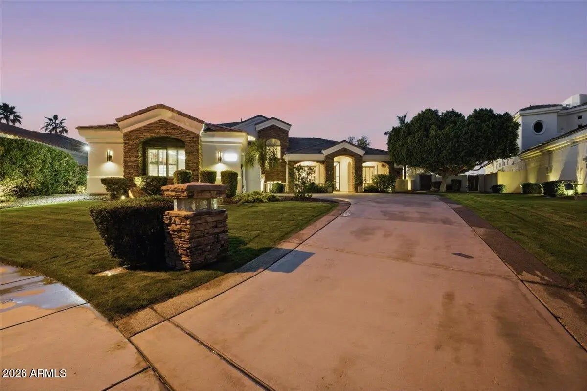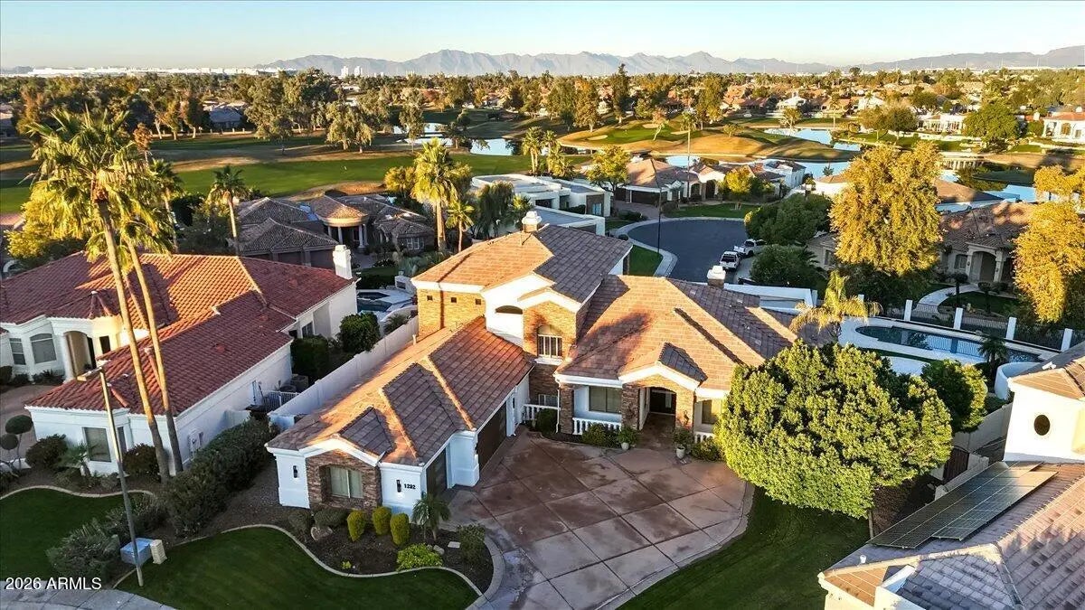 Set within one of Ocotillo's most desirable gated communities, this luxury estate sits on a private, elevated cul-de-sac with impressive curb appeal. The light-filled open floor plan is designed for everyday comfort & entertaining. The chef's kitchen features dual sinks, two dishwashers, double ovens, a warming drawer, oversized pantry, & coffee bar. A full bar with wet sink and ice maker opens through panoramic doors to a resort-style backyard. The private primary retreat includes a fireplace, steam shower, & a balcony with mountain, golf course, & community views. Additional highlights include a home gym, finished basement with guest living space, dual laundry rooms, & an entertainer's backyard with pool, waterfalls, fire features, & outdoor kitchen.