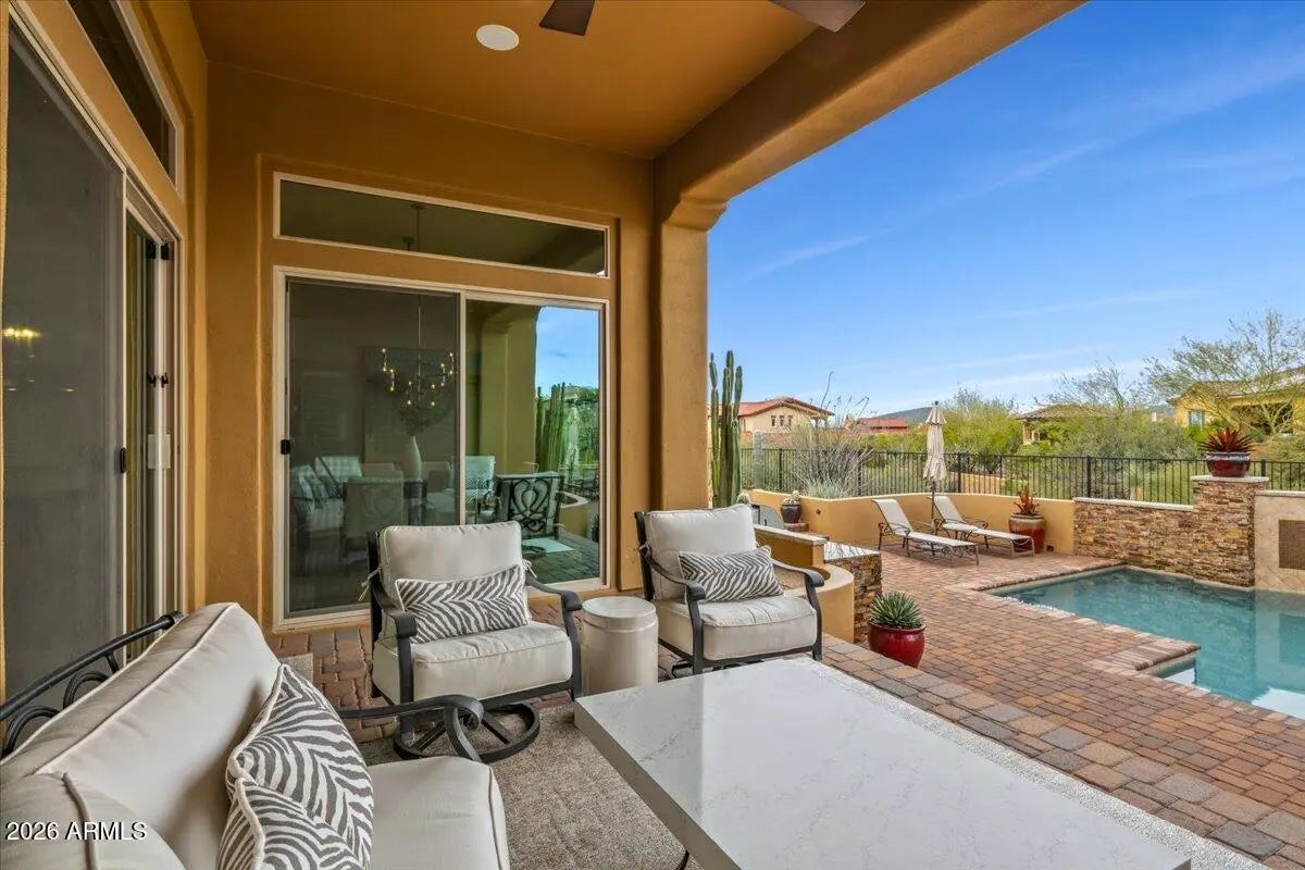 Enjoy the best of the North Scottsdale lifestyle in this beautifully updated and remodeled home, thoughtfully designed to reflect today's modern style preferences. A private attached casita opens to a welcoming courtyard and connects to a single-car garage, offering ideal space for guests or a home office. The light-filled main living area features soaring 14-foot ceilings, a formal dining room with butler's pantry, a cozy fireplace, and a chef's kitchen with generous pantry. The expansive great room seamlessly blends kitchen and lounge spaces, perfect for both everyday living and entertaining. The spacious primary suite is a serene retreat with an oversized walk-in closet and spa-inspired bath. Step outside to a meticulously designed backyard with pool, BBQ, and fire pit—ideal for enjoyi ideal for enjoying Arizona sunsets. Conveniently located near Cave Creek and Carefree, and just 1.5 miles from the McDowell Sonoran Preserve.