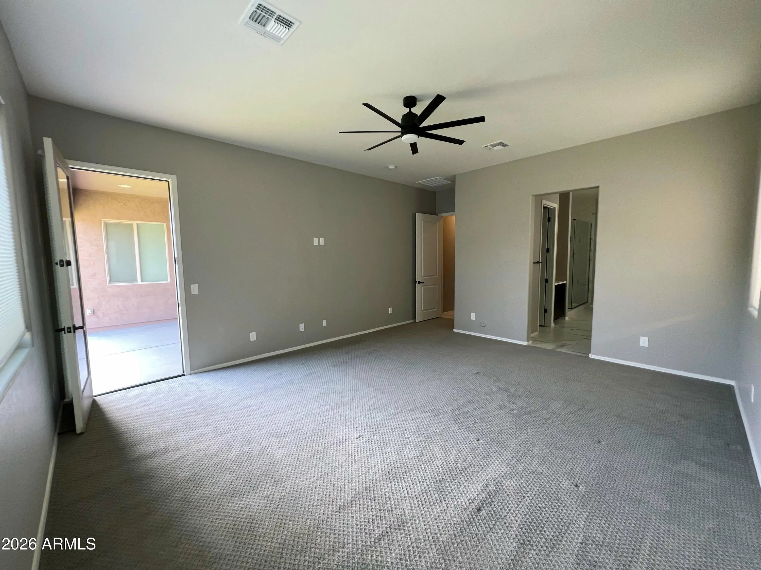 This move-in-ready 3-bedroom, 2.5-bath house in the Meridian Community has everything you need. Key Features:*Spacious layout* with a separate den/office.*Large primary bedroom* with a private bathroom (dual sinks, walk-in shower, tub) and direct patio access.*Open kitchen* with granite counters, stainless appliances, double oven, walk-in pantry, and bar seating.*Easy indoor/outdoor living* with patio access from multiple rooms and a grassy backyard. Great floors: easy-clean tile in main areas, carpet in bedrooms. Huge 3-car garage with extra storage. Access to community amenities: pool, splash pad, playgrounds, parks, and walking trails. Great Location: Minutes from Queen Creek Marketplace, schools, and parks. A comfortable, stylish home in a fantastic neighborhood. Start a tour today!