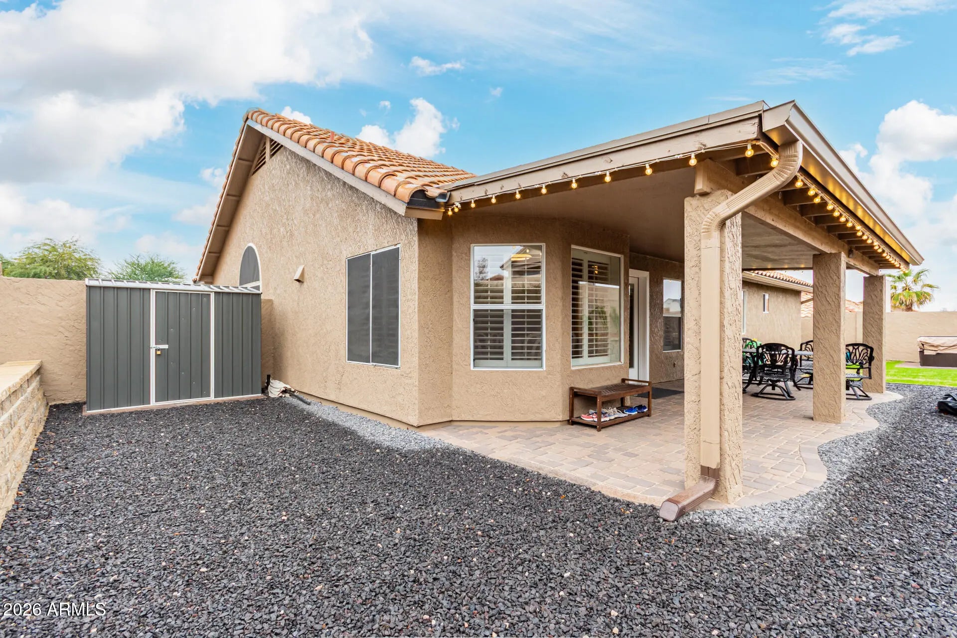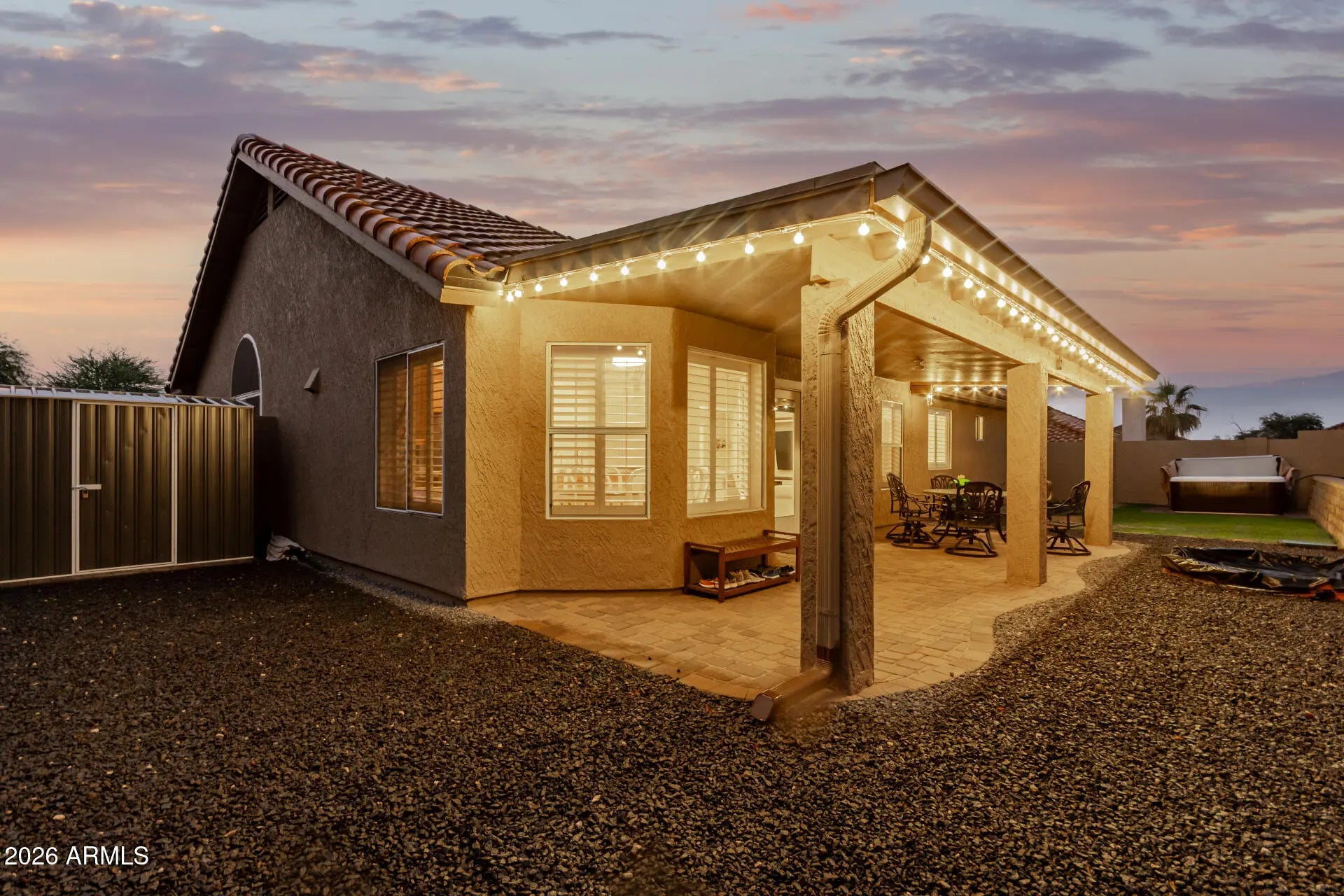 Fall in love with this beautiful home in a great Mesa location with NO HOA! Offering 3 beds, 2 baths, oversized 2.5-car garage, NEW roof underlayment (2025), and a low-care NEWLY redone landscape. The fabulous interior features vaulted ceilings, plantation shutters, FRESHLY painted, abundant natural light, LVP flooring in common areas, and plush carpet in bedrooms. Excellent floor plan with a formal living & dining room and an inviting family room that opens to the kitchen! SS appliances, granite counters & backsplash, staggered wood cabinetry, a pantry, an angled island, RO System, and a breakfast nook w/bay window make up the culinary space. The double-door main bedroom has an ensuite with dual sinks, separate refinished tub/shower, & a walk-in closet. Enjoy the perfectly sized backyard with a paver patio, lush lawn, hot tub (220 volt), & storage shed! Welcome home! Please see docs tab for an upgrades list.