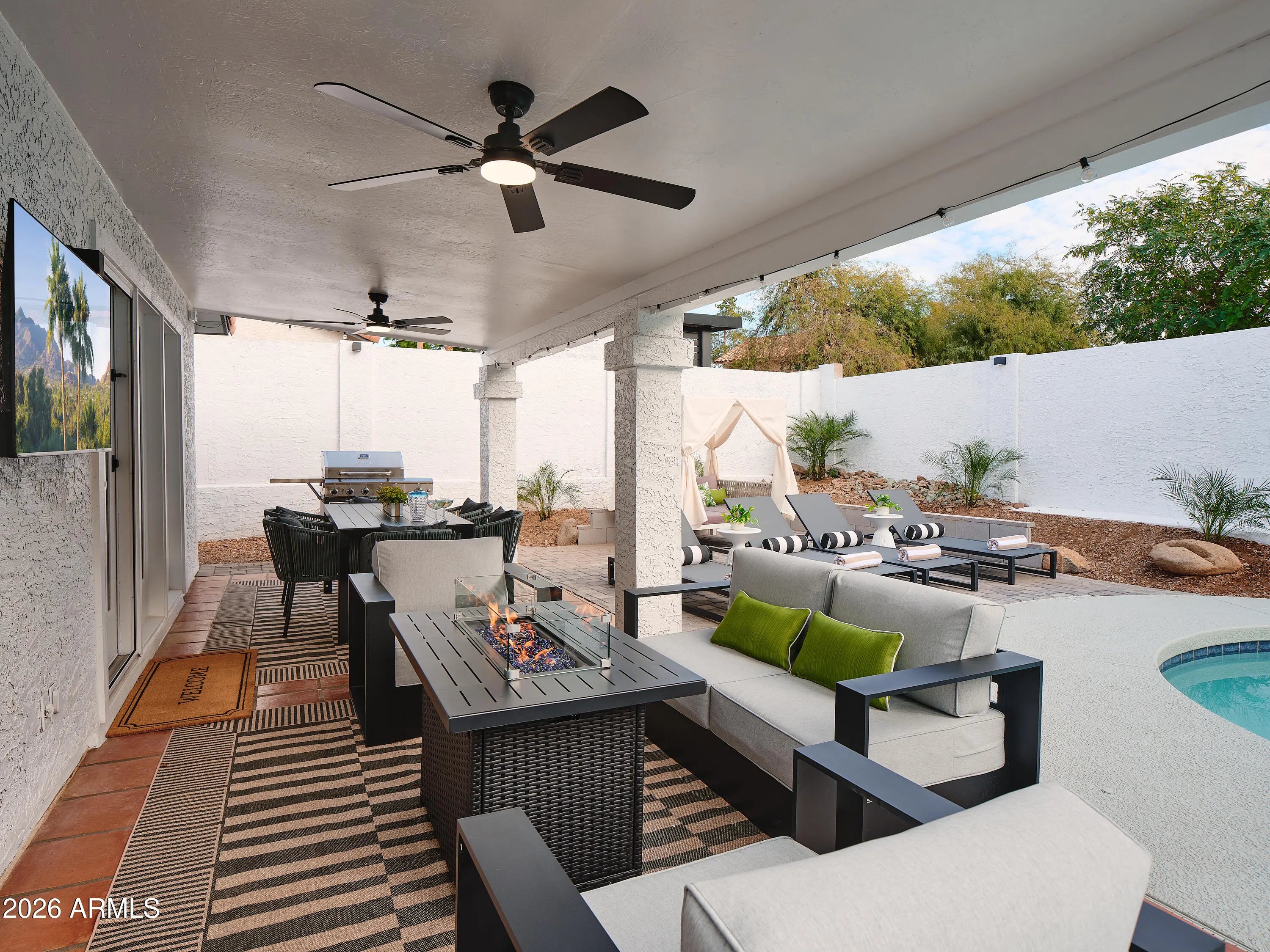 Stunning, newly redesigned retreat in the heart of Scottsdale! Step into a fully updated home featuring a professionally curated design-modern, fresh, stylish. This spacious 4-bedroom home offers 3 King beds, 2 XL Twins, office, open living areas, sleek finishes, and a bright contemporary great room ideal for daily living. The refreshed spaces shine with thoughtfully selected fixtures, textures, and NEW furnishings, creating a true magazine-worthy look throughout, inside and out. Relax in a private backyard oasis with Heated Pool and built-in spa, gas BBQ, fire table, turfed lawn, and soft-scape dog run—perfect for unwinding or entertaining. Spacious 2-car garage complete with new Universal EV Charger. Ten minutes to N Scottsdale's premier shopping, dining, golf (TPC), hiking, medical, and lifestyle amenities. This beautifully revamped home is your ideal Scottsdale escape. Baby Toddler Package and SUV available for rent on a first come first serve basis for our 9 properties. Monthly Seasonal Rates based on 3 month terms (preferred, not required): Oct-Dec and May: $11,995, Jan-Apr: $20,495 Jun-Sept $7,995. Inquire for shorter term seasonal rates. Tell us animal details (breed, age, weight) for an accurate quote. Inquire for 9 more beautifully upgraded, fully furnished rentals in the area.