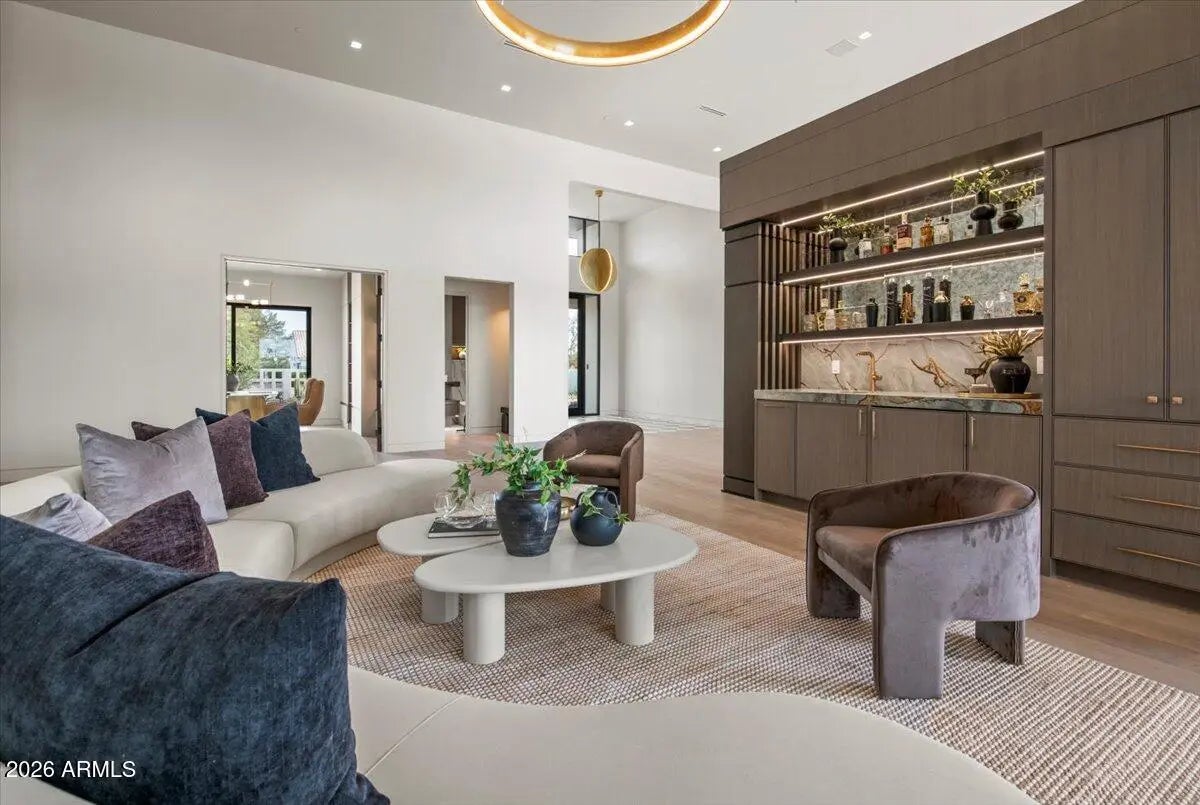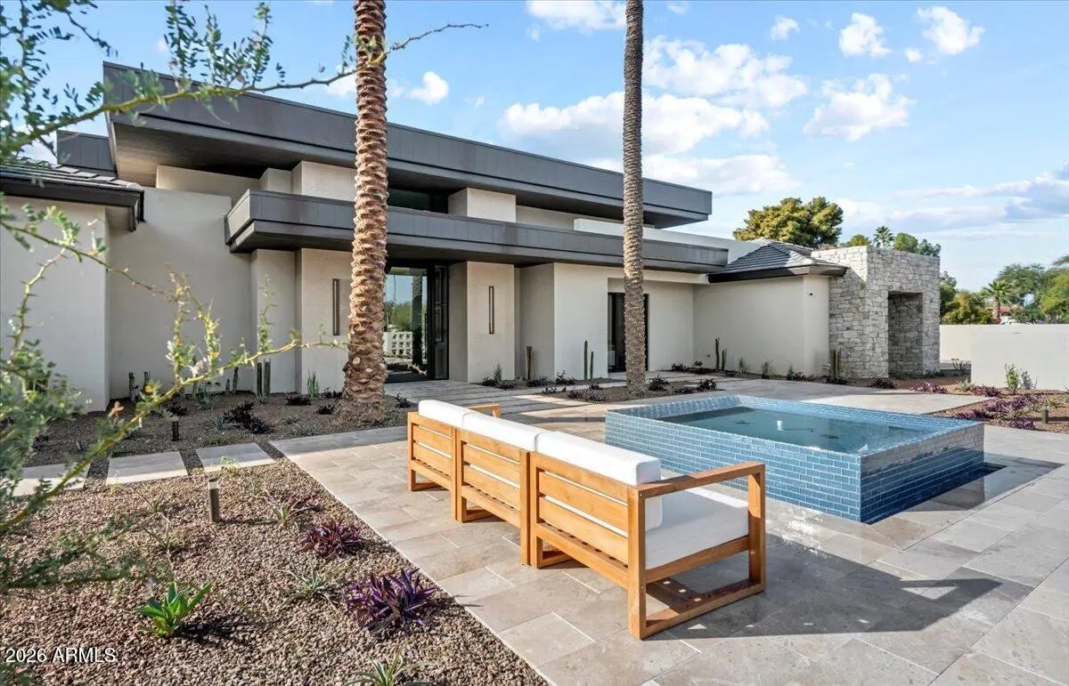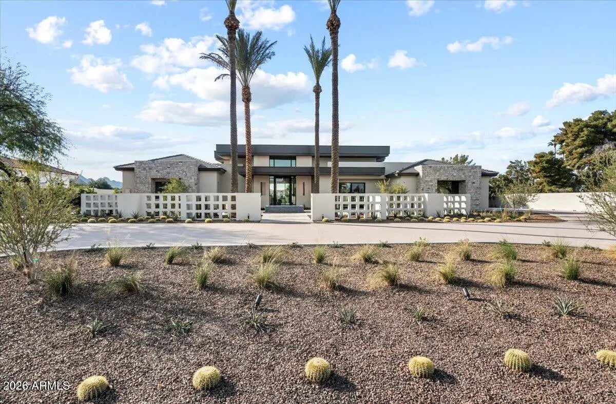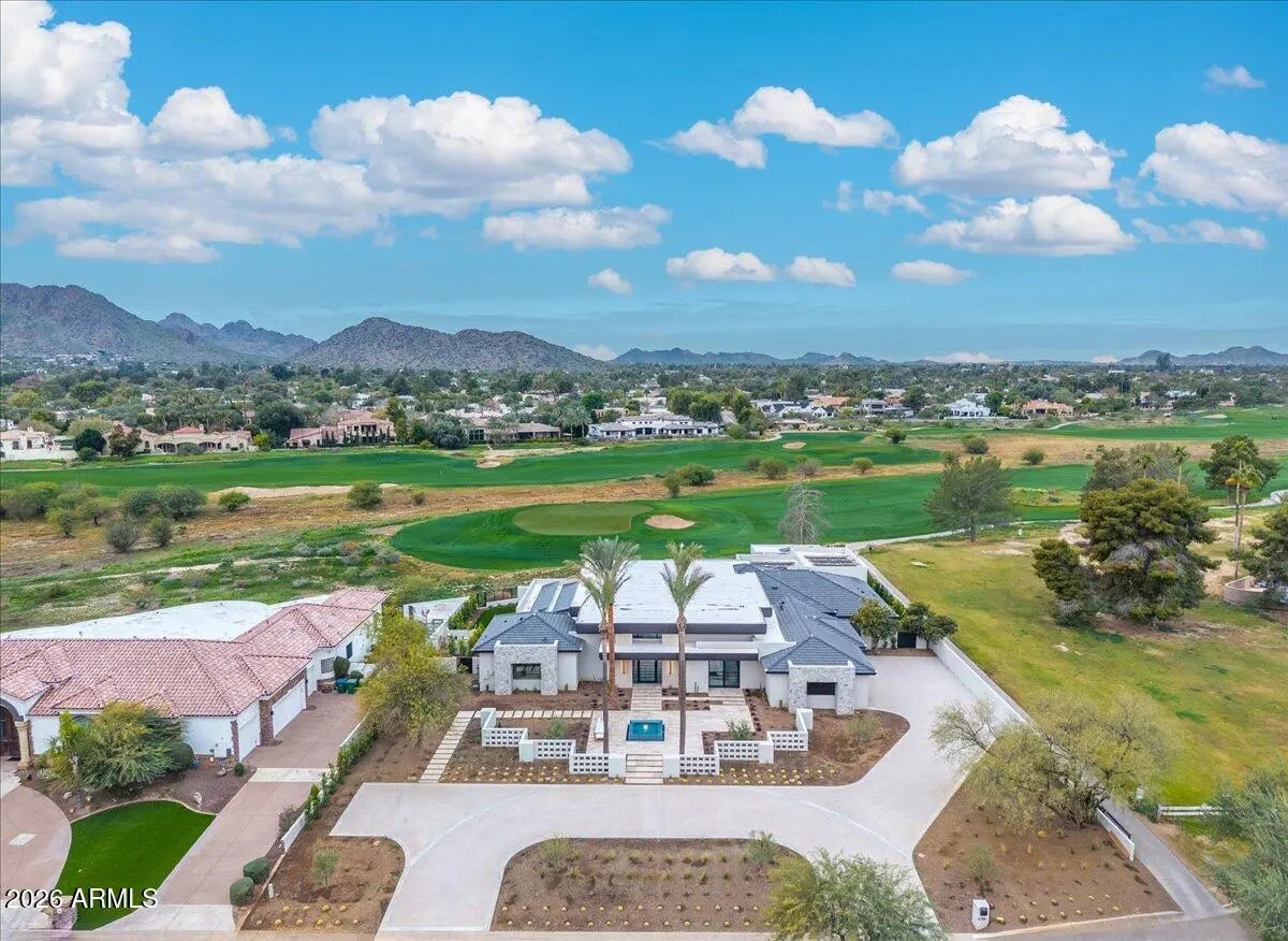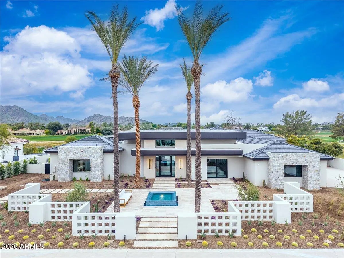 This exceptional custom estate promises to be one of the most stellar new builds in all of Paradise Valley. The modern exterior design is characterized by clean lines, geometric shapes, and a focus on functionality, simple forms, neutral colors and limited materials. The sleek architecture and impressive design combine elegance, comfort, and functionality while incorporating contemporary elements and maintaining a sense of luxury and sophistication. Neutrals provide a timeless backdrop to the 8,000 square feet showpiece allowing other design elements to take center stage as subtle pops of color prevent the space from feeling monotonous. Meticulous attention to detail elevates the overall quality of each room including the impressive kitchen with every imaginable accoutrement, including a limestone slab vented hood, quartzite kitchen islands and bar counters, Wolf/Subzero appliance package, and a hidden back kitchen/butler's pantry. The exquisite dining room has a wet bar and temperature-controlled wine storage, the spectacular lounge has a full wet bar, an office that will leave you yearning to work from home, teen lounge, and four fabulous ensuite bedrooms including a highly impressive primary suite with laundry and a hanging steam closet. The modern finishes feature neutral walls, matte metals, textured tile, natural stone, and substantial millwork. The extraordinary grounds feature a heated pool, spa, full kitchen and turf covered yard, plus a 4-car climate-controlled garage. Sitting on a superb golf course lot on camelback golf club's ambiente course, with amazing mountain views, this high-end residence is a true masterpiece!