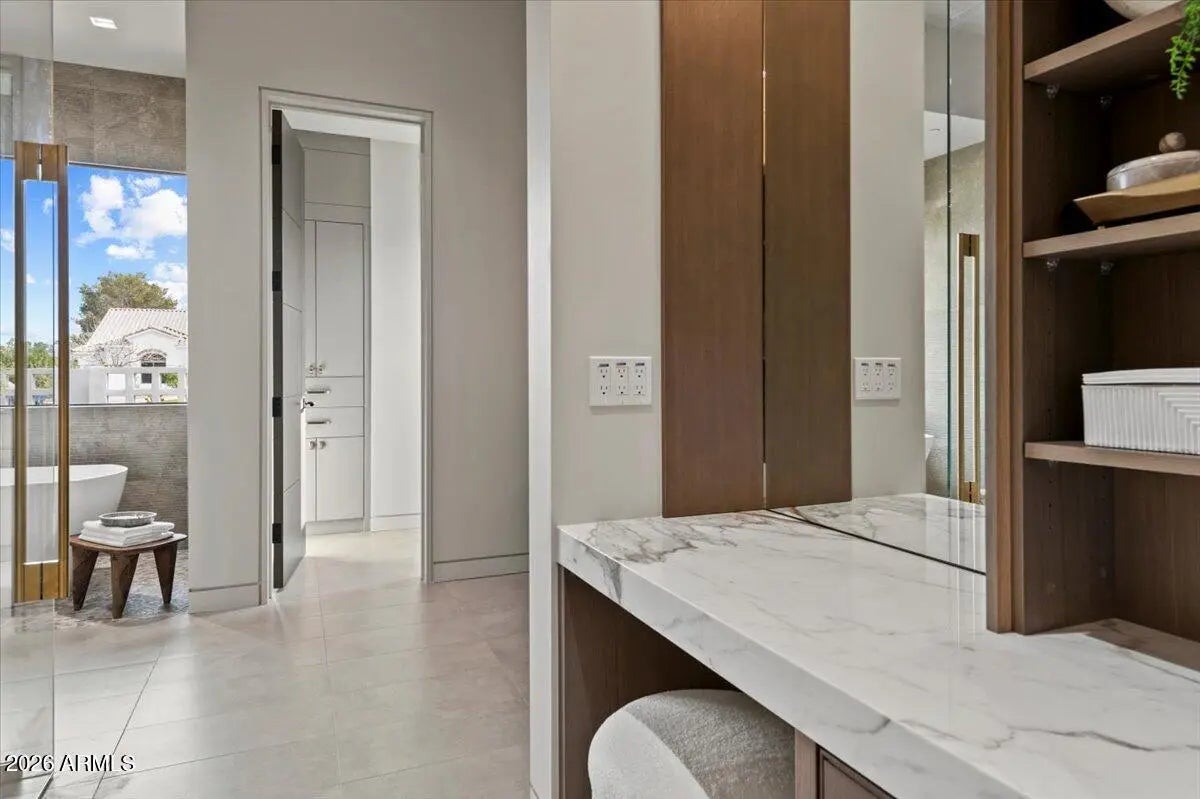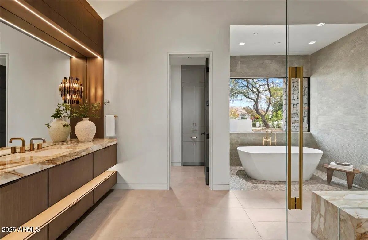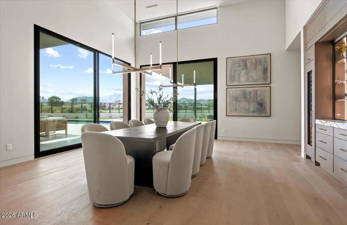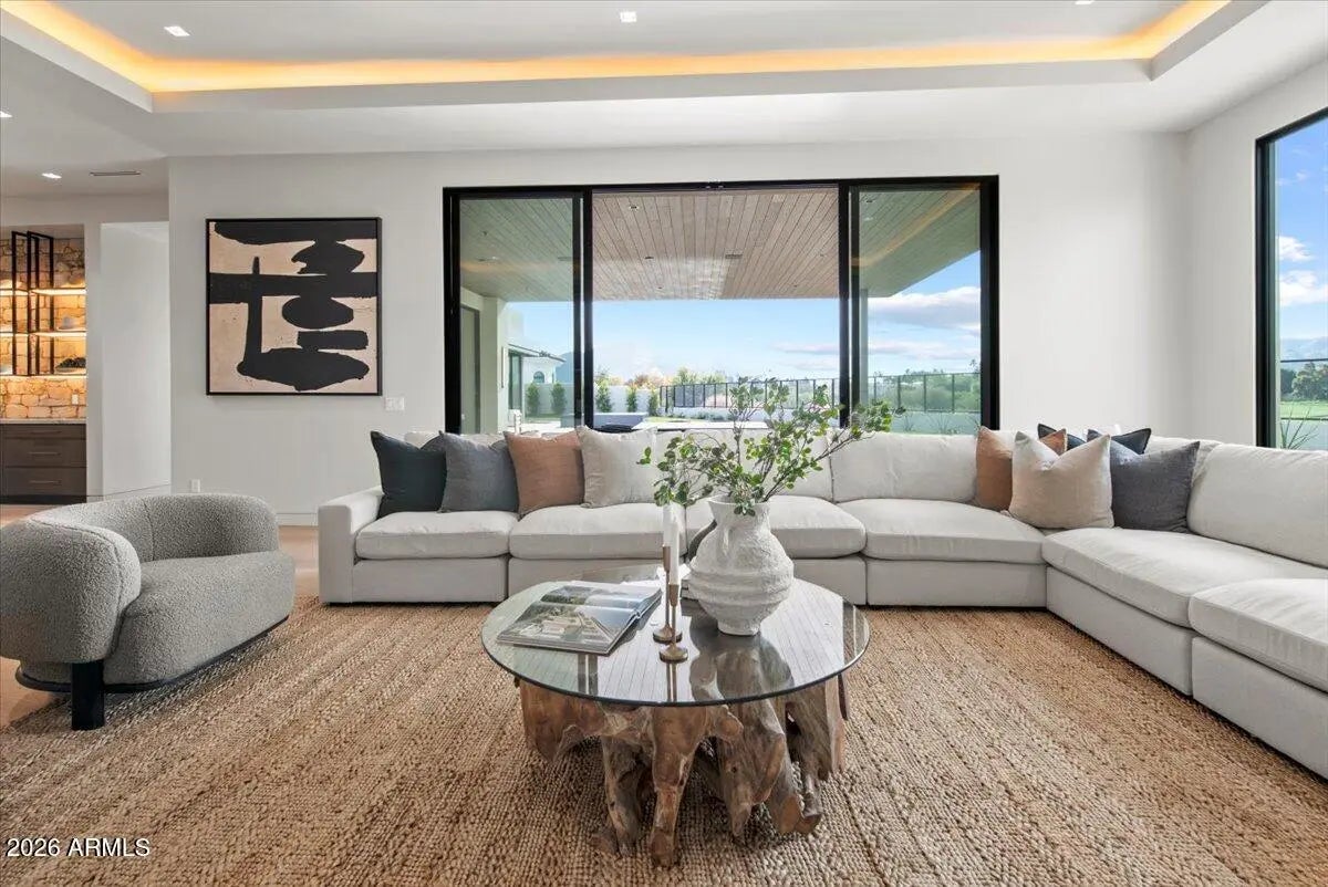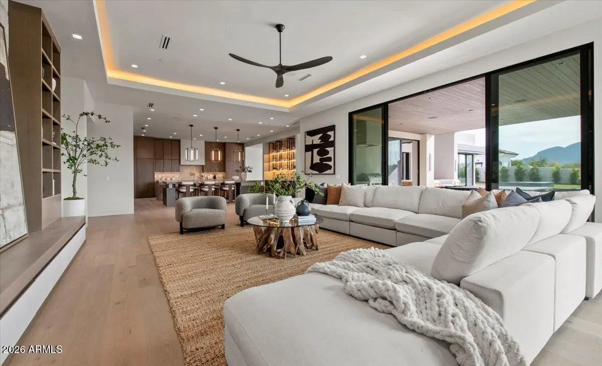 This exceptional custom estate promises to be one of the most stellar new builds in all of Paradise Valley. The modern exterior design is characterized by clean lines, geometric shapes, and a focus on functionality, simple forms, neutral colors and limited materials. The sleek architecture and impressive design combine elegance, comfort, and functionality while incorporating contemporary elements and maintaining a sense of luxury and sophistication. Neutrals provide a timeless backdrop to the 8,000 square feet showpiece allowing other design elements to take center stage as subtle pops of color prevent the space from feeling monotonous. Meticulous attention to detail elevates the overall quality of each room including the impressive kitchen with every imaginable accoutrement, including a limestone slab vented hood, quartzite kitchen islands and bar counters, Wolf/Subzero appliance package, and a hidden back kitchen/butler's pantry. The exquisite dining room has a wet bar and temperature-controlled wine storage, the spectacular lounge has a full wet bar, an office that will leave you yearning to work from home, teen lounge, and four fabulous ensuite bedrooms including a highly impressive primary suite with laundry and a hanging steam closet. The modern finishes feature neutral walls, matte metals, textured tile, natural stone, and substantial millwork. The extraordinary grounds feature a heated pool, spa, full kitchen and turf covered yard, plus a 4-car climate-controlled garage. Sitting on a superb golf course lot on camelback golf club's ambiente course, with amazing mountain views, this high-end residence is a true masterpiece!