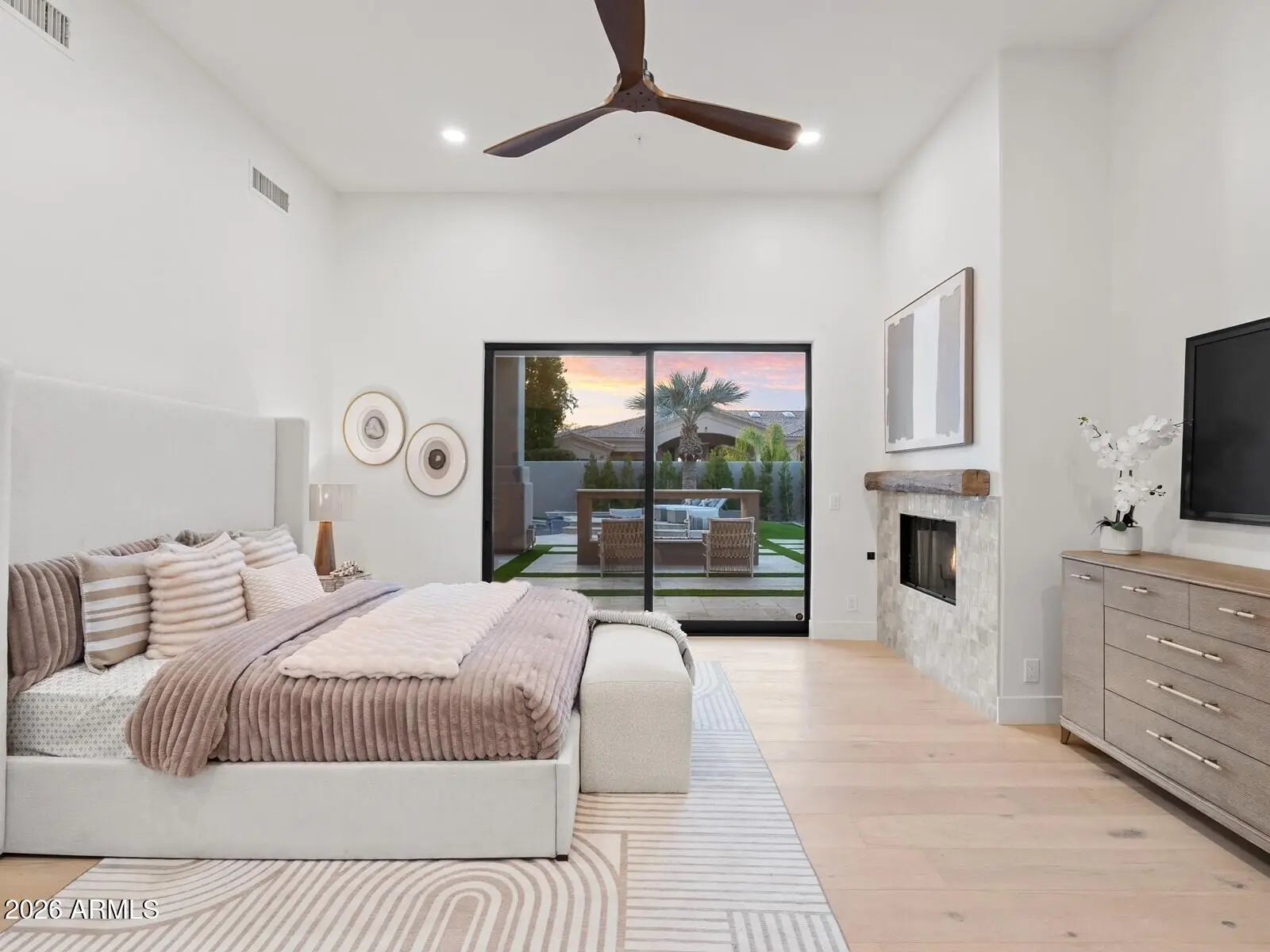 At coveted Catavina is a newly completed, designer-renovated single-level showpiece on over three-quarters of an acre with panoramic mountain views. Reimagined by Lifestyle Lab Design Studio, the 4,522-sf plan (5BD/4.5BA) balances volume and warmth with vaulted ceilings, extra-wide halls, 9.5'' European oak, and four fireplaces. The chef's kitchen pairs Wolf/Sub-Zero with White Rhino marble, custom cabinetry, walk-in pantry, and a pass-through window for effortless entertaining. The serene primary retreat offers a fireplace, boutique closet, and spa bath with zero-edge shower and soaking tub. Outdoors: 3,000+ sf travertine terraces, redesigned heated pool/spa, contemporary fireplace, built-in BBQ, putting green, and expansive turf. Oversized 4-car garage; near BASIS and Mayo.