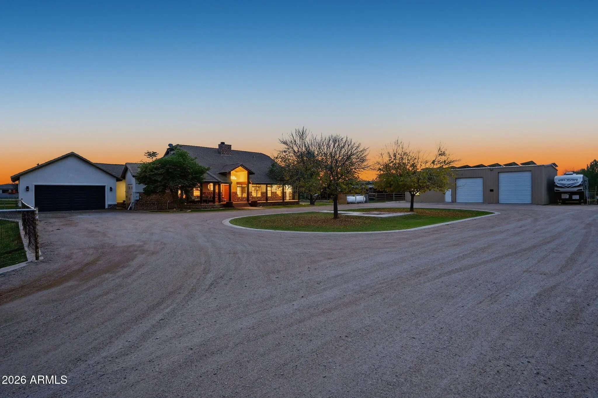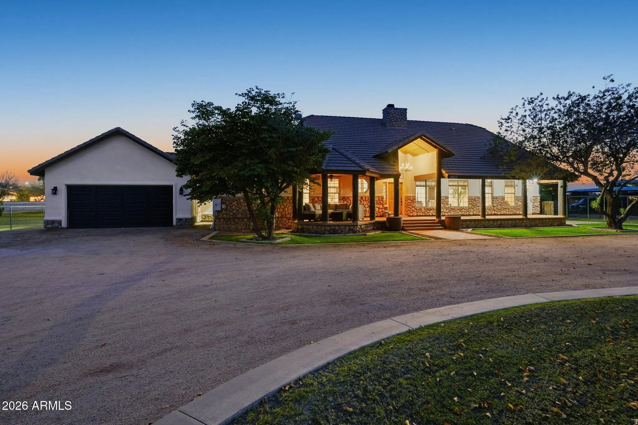 Rare, updated Chandler country charm on nearly 2 acres with no HOA. This 3 bed, 3 bath main home boasts cozy country features; hardwood floors, exposed beams, and a stunning stone fireplace. The newly remodeled bright, open kitchen, spacious office/laundry combo, guest bath, and gorgeous primary retreat on the main floor add comfort & modern touches. Continue to the finished basement with the 2 remaining bedrooms & a full bath. Bring your horses & your toys! Pull your 40ft RV in the RV garage and still have room for projects or additional parking, temp-controlled storage, and a 540 sqft apartment-style space. This home has OWNED solar and a 1000- gallon propane tank. Private, relaxed, thoughtfully upgraded, with room to breathe & yet conveniently located in Chandler!