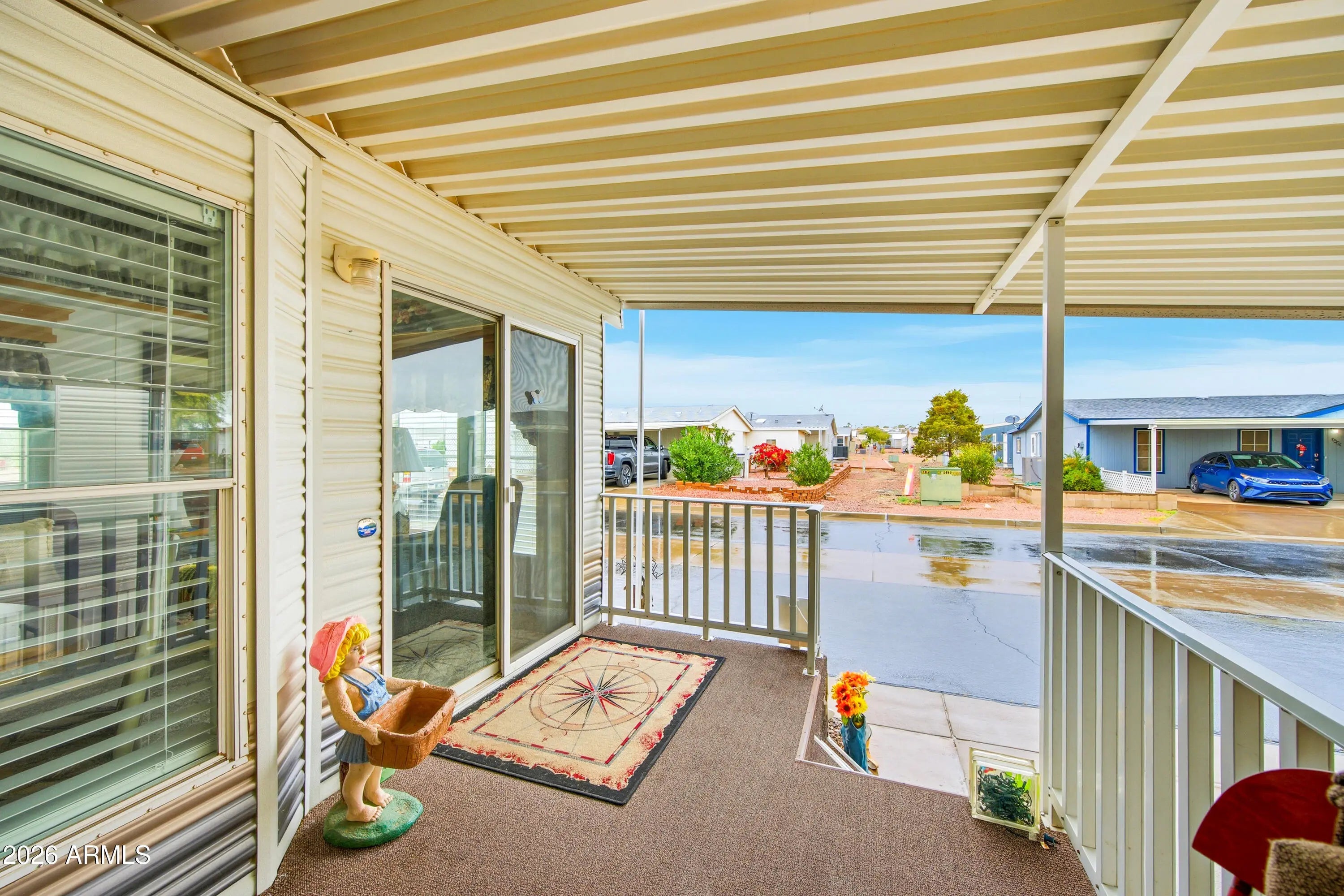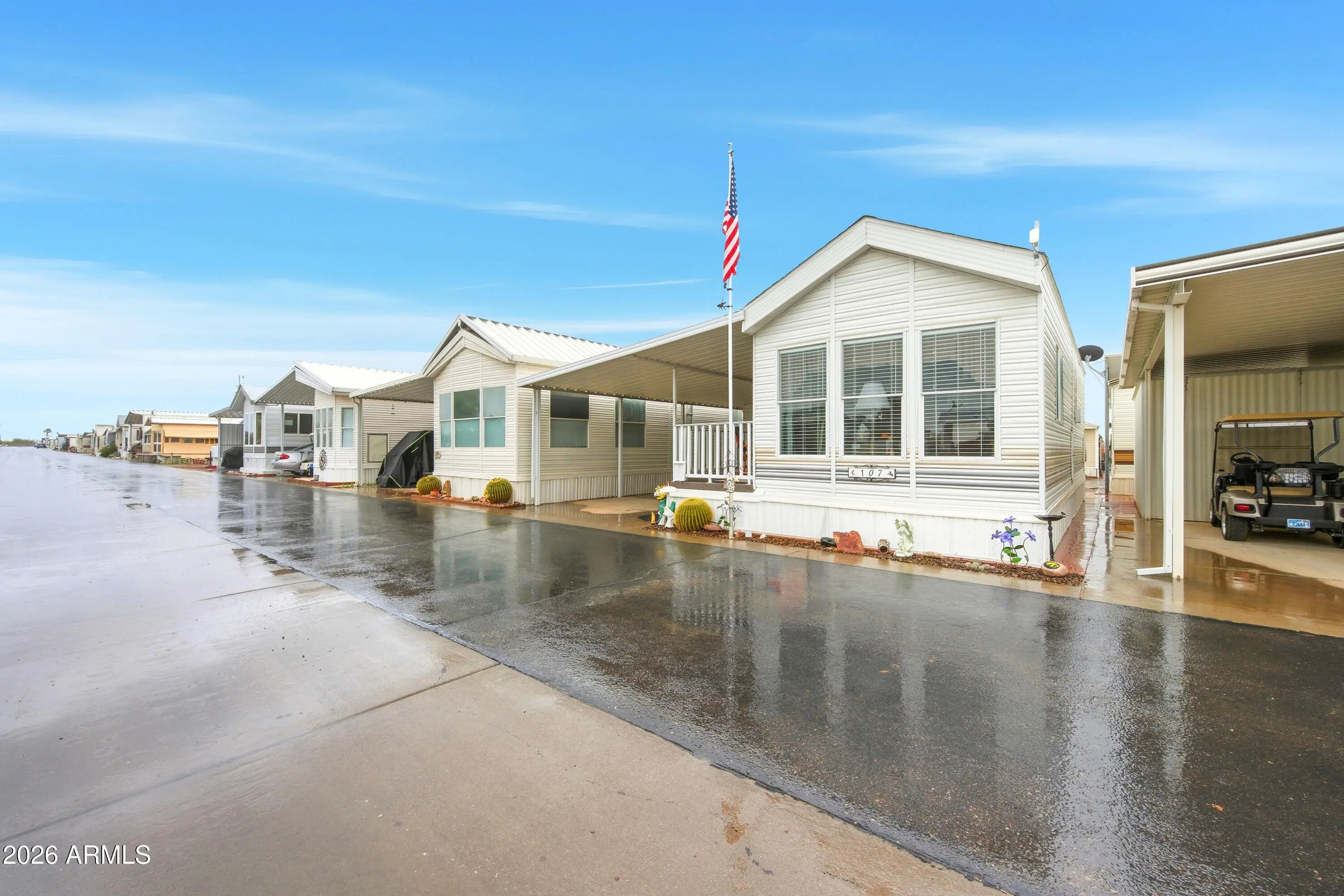OWN YOUR LAND! This 1-bedroom, 1-bathroom 1997 Cavco Park Model in Florence is fully furnished and ready to go. The home features a smooth top range and built-in microwave, and the interior layout is simple and efficient. The extra large deck—with no neighbor directly to the north—creates a quiet outdoor space perfect for entertaining or unwinding. You'll have ample parking while still enjoying plenty of room to host on the large deck. Additional highlights include a double roof, a recently serviced A/C, and a shed with workbench, tools, washer and dryer. Nestled in the 55+ Caliente Casa de Sol community, this home is ideal for seasonal escapes or year-round living. Set within the 55+ Caliente Casa de Sol community, residents enjoy a heated pool and spa, clubhouse events, shuffleboard, pickleball courts, fitness room, library, craft areas, and moreall in a well-kept, social setting. Three Parks Fairways golfing is nearby. This is a great opportunity for year-round or seasonal living.