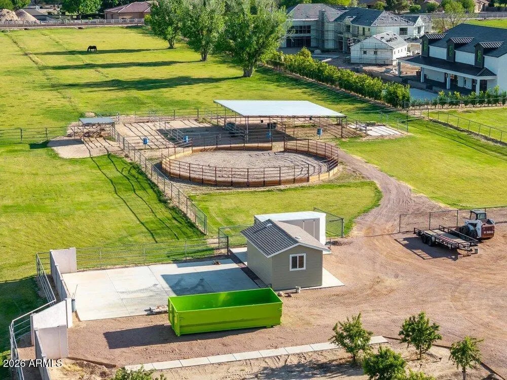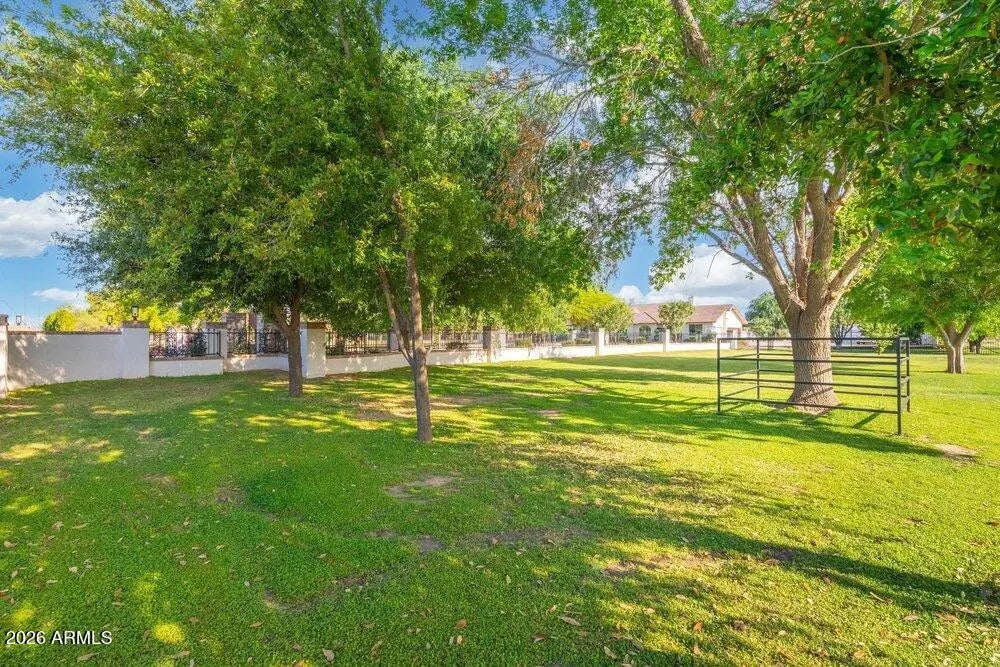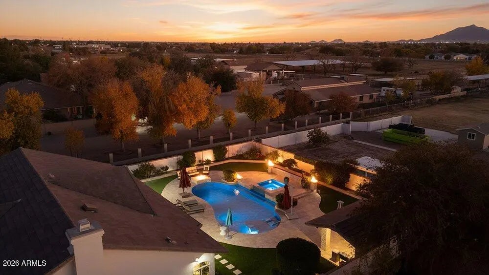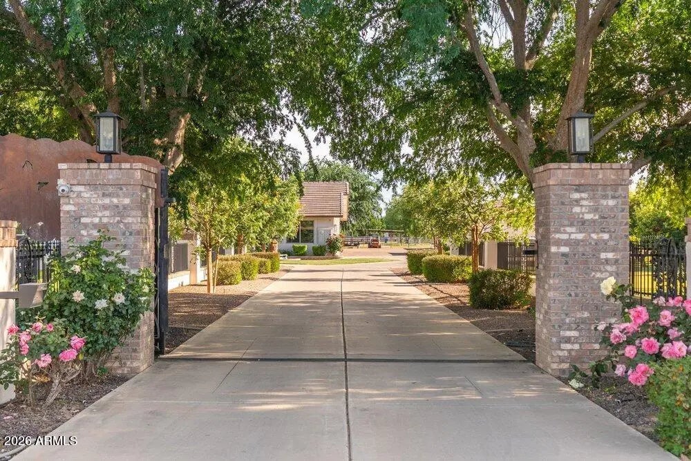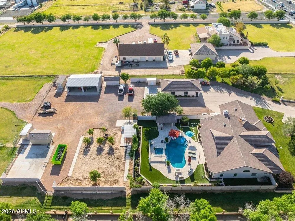 Privately Gated Six-Acre Estate A property of this caliber, scale, and freedom is rarely offered. Privately gated and set on six pristine, flat acres with no HOA, this remarkable estate delivers an unparalleled combination of luxury, privacy, and limitless potential, a true legacy offering for the most discerning buyer. The residence is artfully positioned to capture sweeping mountain views, framed by mature landscaping that creates a tranquil, resort-inspired setting. Refined interior spaces transition seamlessly to outdoor living, where a travertine pool deck invites elegant entertaining, peaceful mornings, and unforgettable evenings beneath open desert skies. Adding exceptional versatility is an approximately 1,100-square-foot climate-controlled shop with garage, thoughtfully designed with a window, closet, and bathroom plumbing already in place allowing for a seamless conversion into a full guest house. This highly adaptable space offers a rare opportunity to create a bespoke guest suite, executive office, wellness retreat, or multigenerational living quarters, customized entirely to your vision. For collectors, enthusiasts, and business owners alike, the estate offers outstanding infrastructure, including a 28' x 42' garage and multiple additional enclosed garage spaces, ideal for luxury vehicles, RVs, workshops, or specialized equipment. The expansive, fully usable acreage is a defining feature, offering extraordinary freedom for barns, stables, trailers, workshops, or business-related use, all while preserving the privacy and serenity of a true estate setting. Throughout, the home reflects enduring quality, thoughtful stewardship, and timeless appeal. This is more than a residence, it is a rare opportunity to own land, privacy, and luxury without compromise. Properties offering this level of scale, flexibility, and freedom are seldom available and even more rarely repeated. Located in the heart of Queen Creek, the estate enjoys a coveted balance of modern conveniences and a genuine small-town, equestrian-friendly lifestyle. Just minutes from the Queen Creek Equestrian Center, scenic riding trails, dining, shopping, and top-rated schools, the location provides everyday accessibility while maintaining a peaceful, rural ambiance. The flat acreage is ideally suited for horses and animals, with abundant space for barns, corrals, and riding areas, making it equally compelling for equestrian enthusiasts or those seeking a refined live-work estate. With no HOA restrictions, this property presents an exceptional opportunity for small business owners, contractors, or entrepreneurs who require land, storage, and flexibility without sacrificing luxury living.
