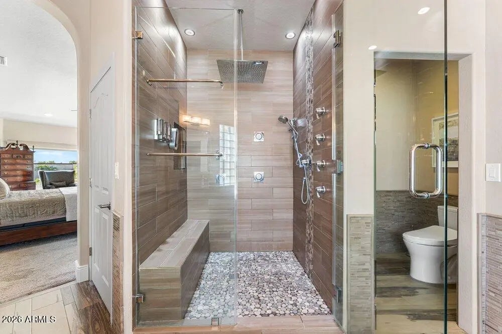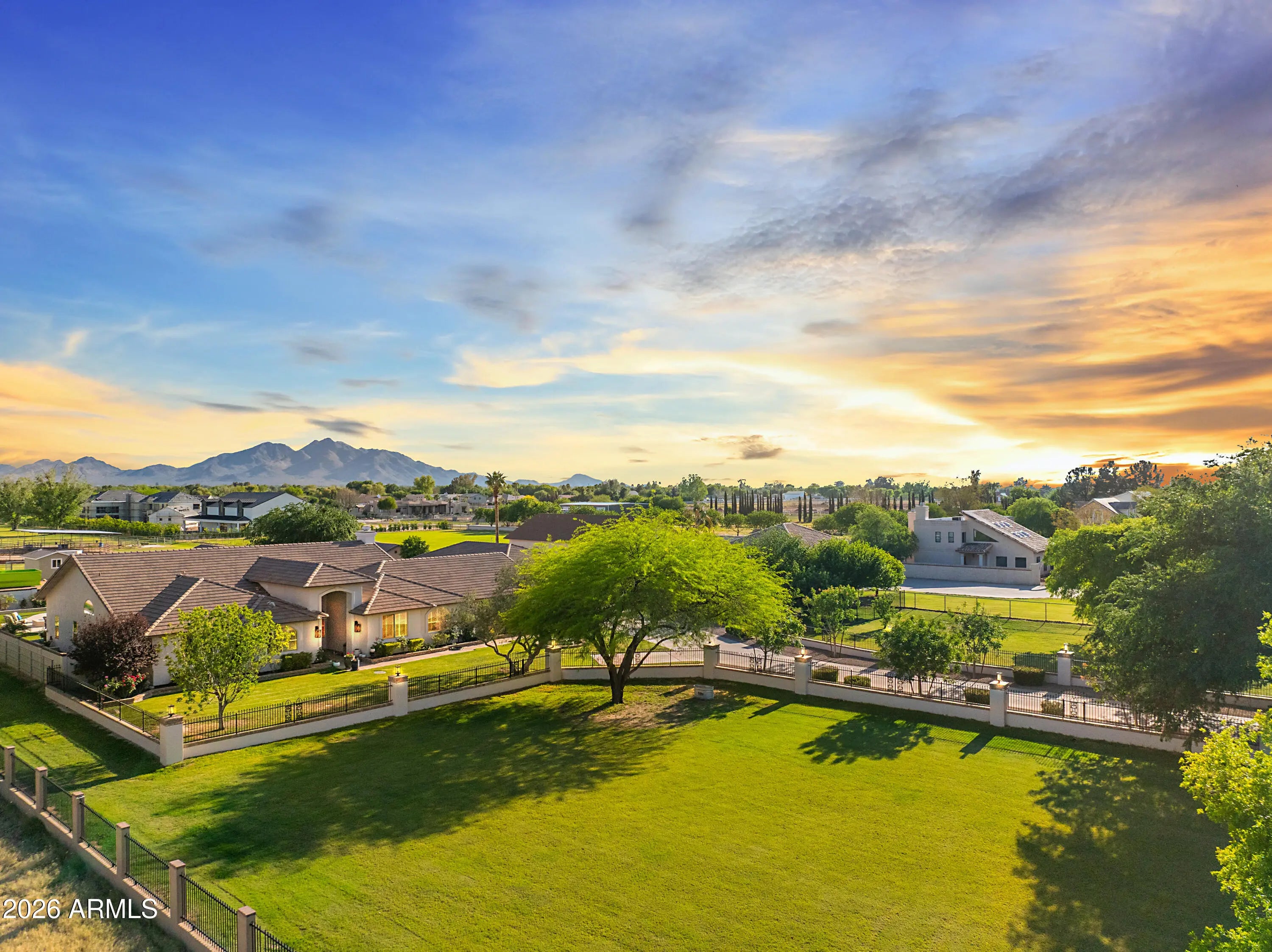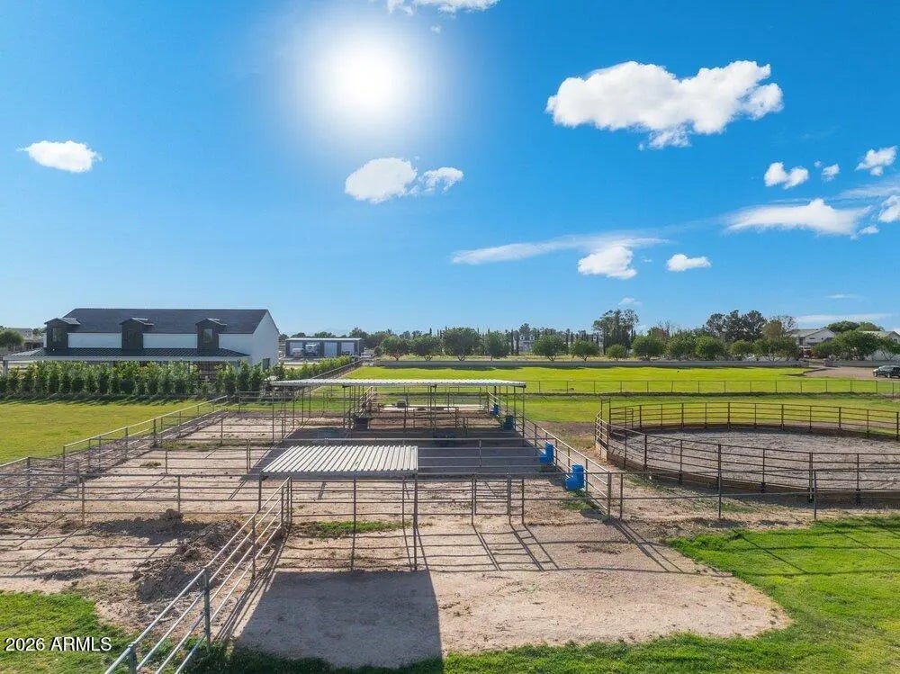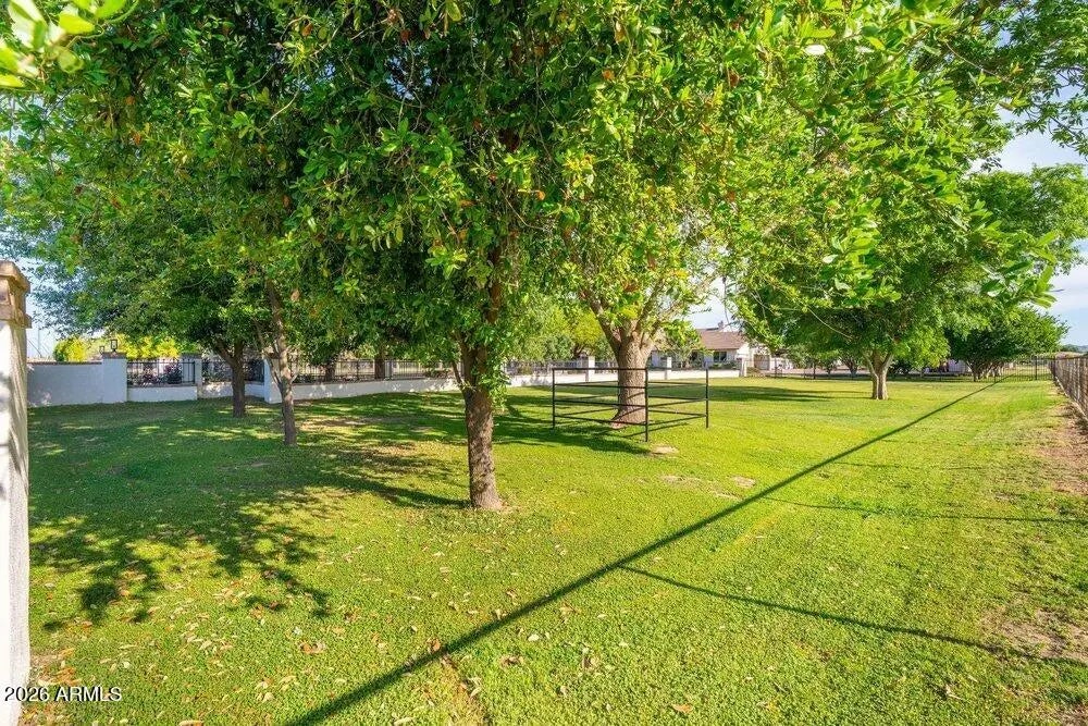 Privately Gated Six-Acre Estate A property of this caliber, scale, and freedom is rarely offered. Privately gated and set on six pristine, flat acres with no HOA, this remarkable estate delivers an unparalleled combination of luxury, privacy, and limitless potential, a true legacy offering for the most discerning buyer. The residence is artfully positioned to capture sweeping mountain views, framed by mature landscaping that creates a tranquil, resort-inspired setting. Refined interior spaces transition seamlessly to outdoor living, where a travertine pool deck invites elegant entertaining, peaceful mornings, and unforgettable evenings beneath open desert skies. Adding exceptional versatility is an approximately 1,100-square-foot climate-controlled shop with garage, thoughtfully designed with a window, closet, and bathroom plumbing already in place allowing for a seamless conversion into a full guest house. This highly adaptable space offers a rare opportunity to create a bespoke guest suite, executive office, wellness retreat, or multigenerational living quarters, customized entirely to your vision. For collectors, enthusiasts, and business owners alike, the estate offers outstanding infrastructure, including a 28' x 42' garage and multiple additional enclosed garage spaces, ideal for luxury vehicles, RVs, workshops, or specialized equipment. The expansive, fully usable acreage is a defining feature, offering extraordinary freedom for barns, stables, trailers, workshops, or business-related use, all while preserving the privacy and serenity of a true estate setting. Throughout, the home reflects enduring quality, thoughtful stewardship, and timeless appeal. This is more than a residence, it is a rare opportunity to own land, privacy, and luxury without compromise. Properties offering this level of scale, flexibility, and freedom are seldom available and even more rarely repeated. Located in the heart of Queen Creek, the estate enjoys a coveted balance of modern conveniences and a genuine small-town, equestrian-friendly lifestyle. Just minutes from the Queen Creek Equestrian Center, scenic riding trails, dining, shopping, and top-rated schools, the location provides everyday accessibility while maintaining a peaceful, rural ambiance. The flat acreage is ideally suited for horses and animals, with abundant space for barns, corrals, and riding areas, making it equally compelling for equestrian enthusiasts or those seeking a refined live-work estate. With no HOA restrictions, this property presents an exceptional opportunity for small business owners, contractors, or entrepreneurs who require land, storage, and flexibility without sacrificing luxury living.