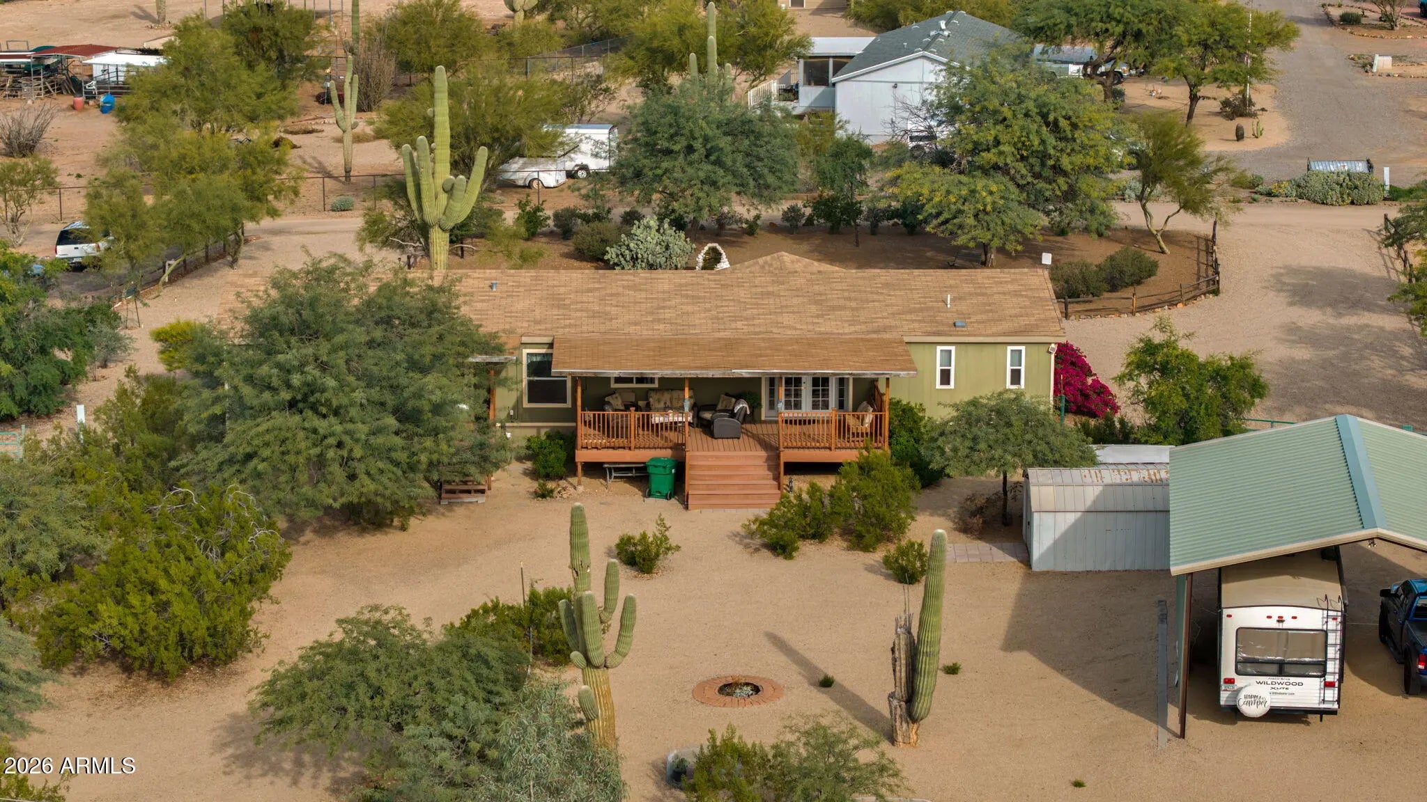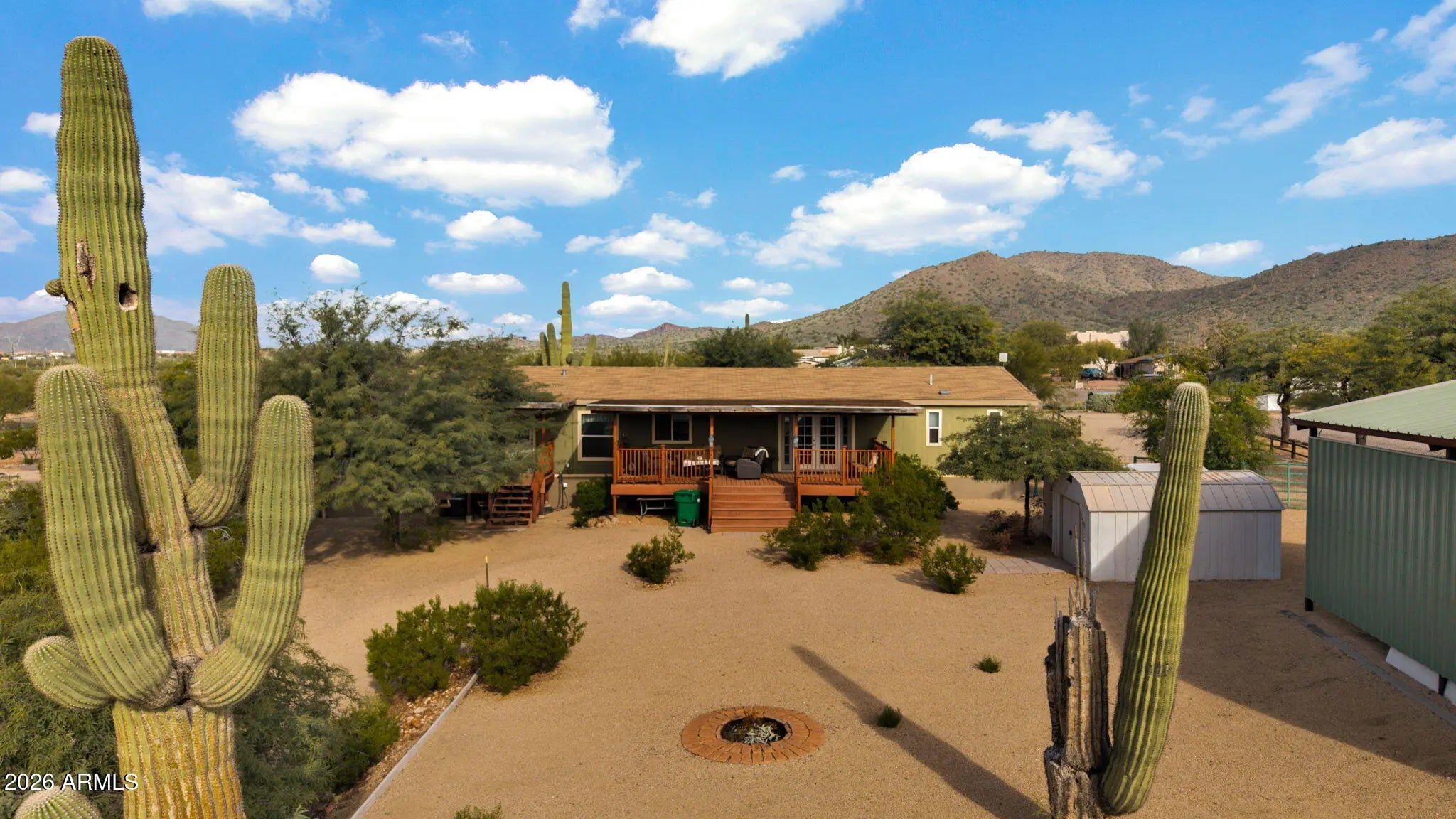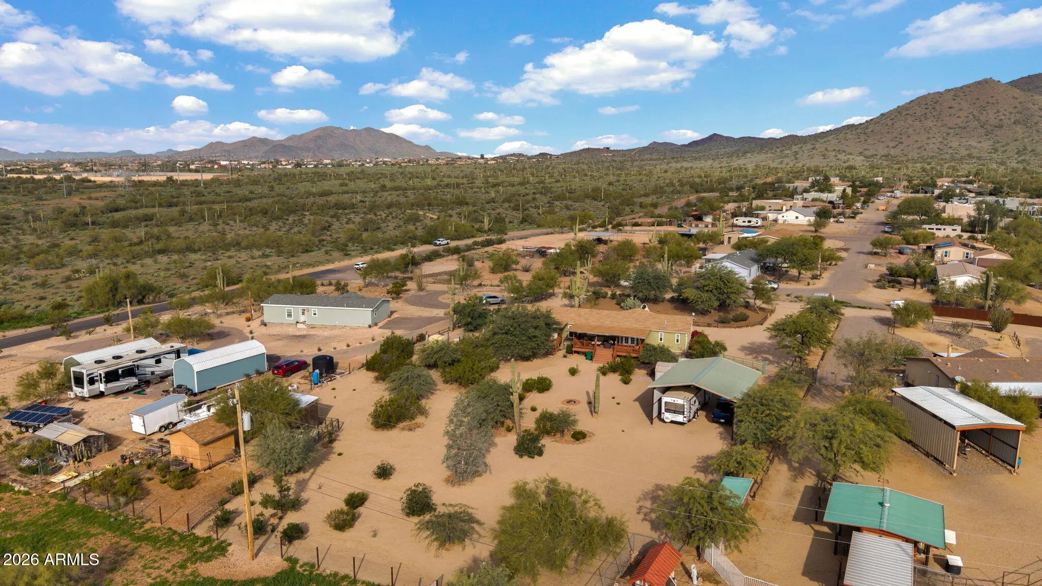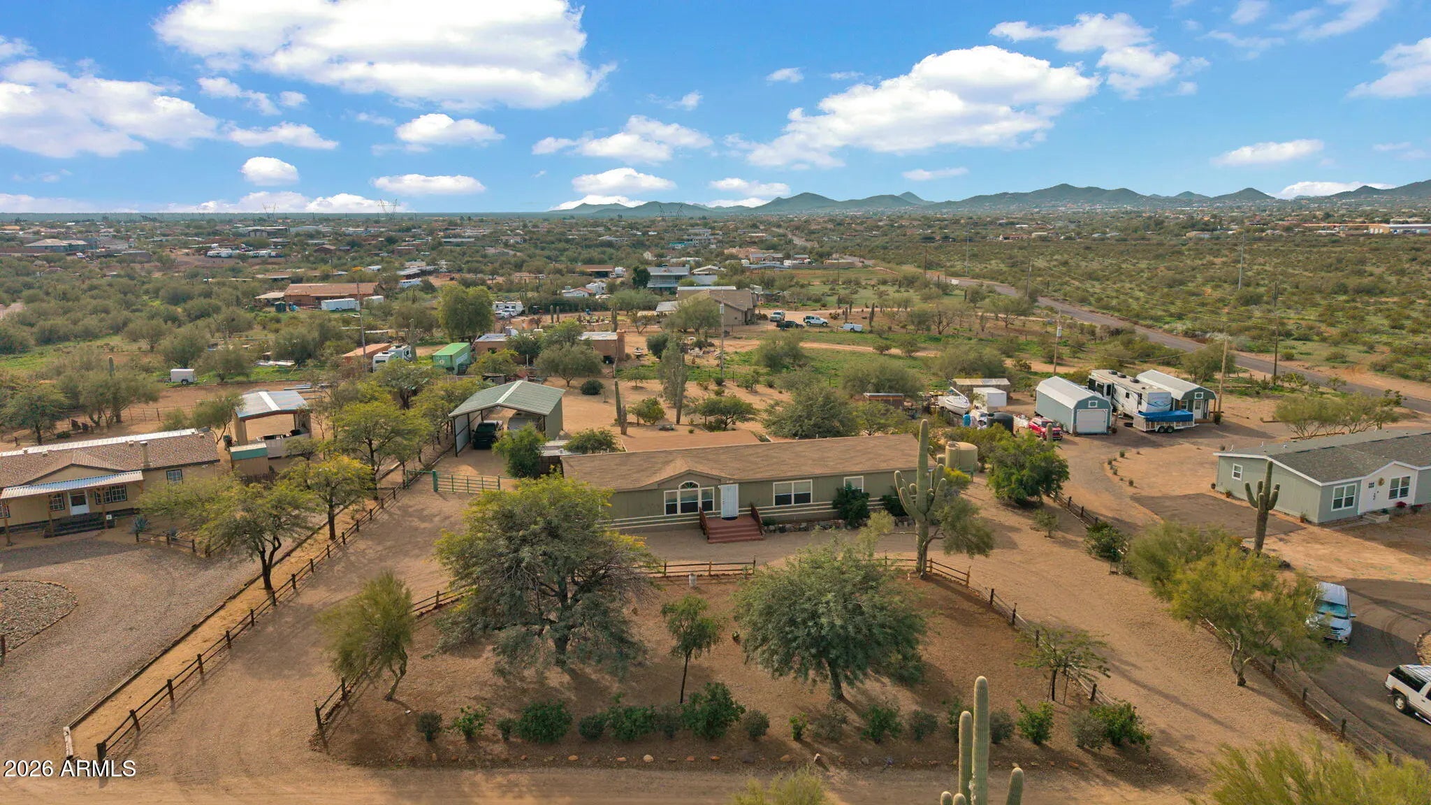 This is front porch sitting Country Living at its finest! Gaze at the nightly stars without city lights, view the mountains and beautiful undisturbed desert. Ride your horse, bike or walk out your driveway onto the preserve for miles and miles of trails. This is a very clean 4-bedroom 2 bath home that sits on little over an acre of very usable land and is ready to move in! Perfect for horses, dogs or whatever outdoor activity you enjoy. Endless possibilities. It has a 32' x 24' covered RV Parking with 30amp power and water. This place would make a perfect year around home or a turnkey snowbird escape. Enjoy the porch front or back and the private road with very little to no traffic!