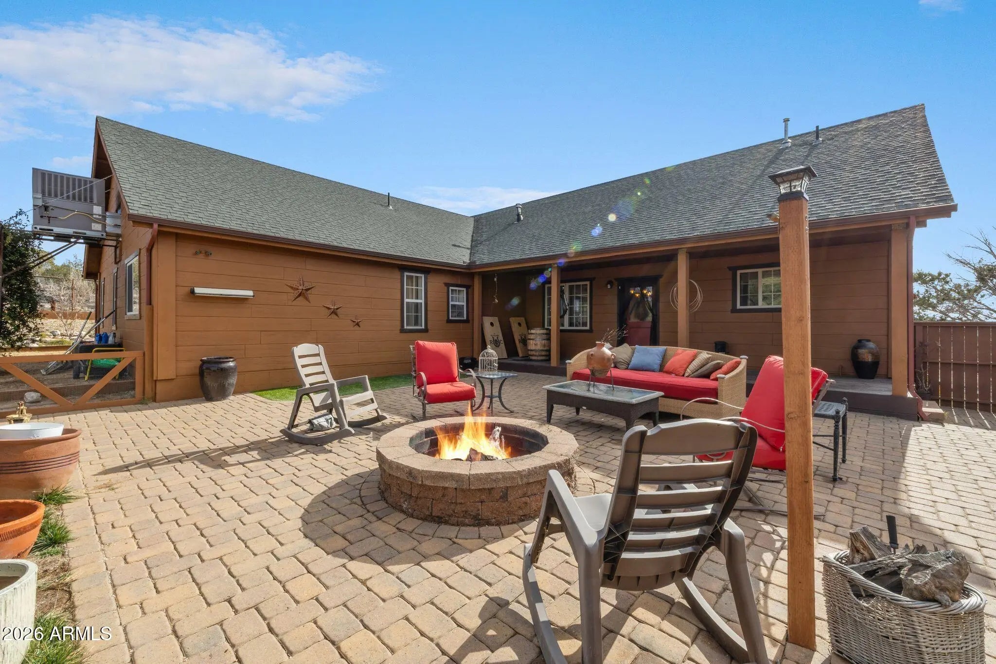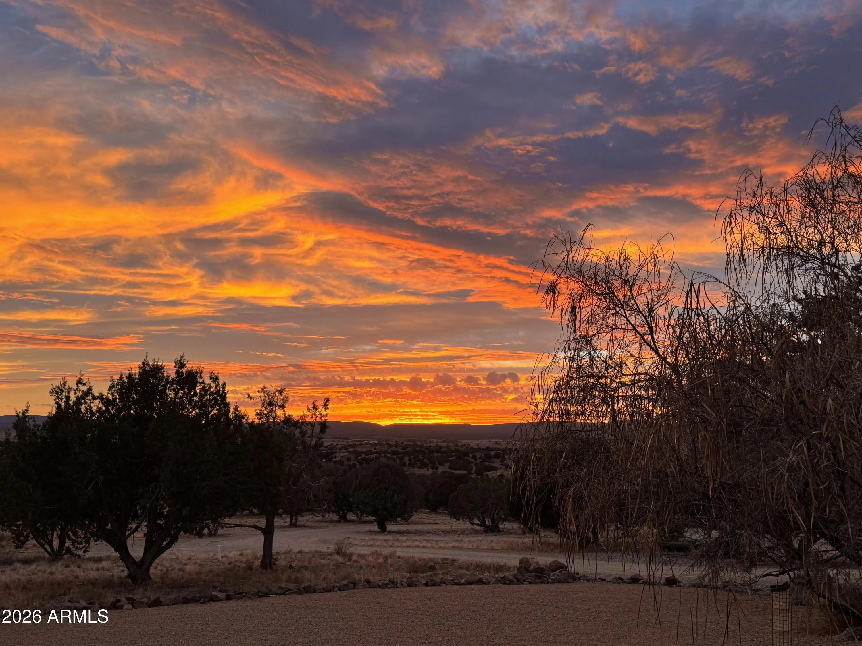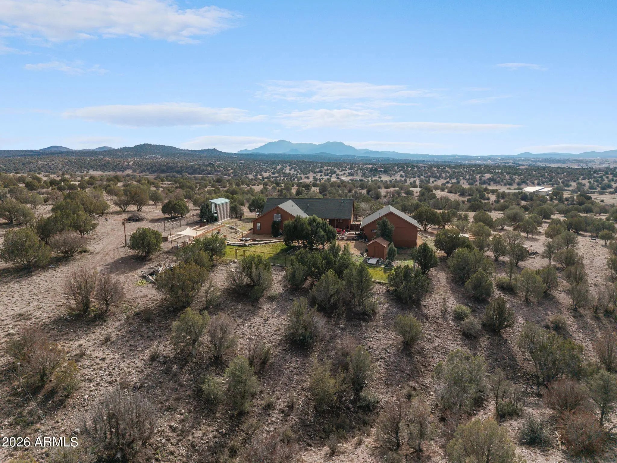 Custom-built 2 bed, 2.5 bath home in desirable Crossroads Ranch with stunning views of Granite Mountain! Offering 2,632 sq.ft. on 10.08 private acres. Thoughtfully designed with quality craftsmanship, this home features a dedicated office space and a spacious great room ideal for comfortable entertaining. The cozy primary bedroom provides a relaxing retreat. Outdoor living is enhanced by a patio with firepit which is perfect for enjoying peaceful evenings and expansive views. Complete with a 3-car garage, this property offers refined country living with privacy, space, and functionality.