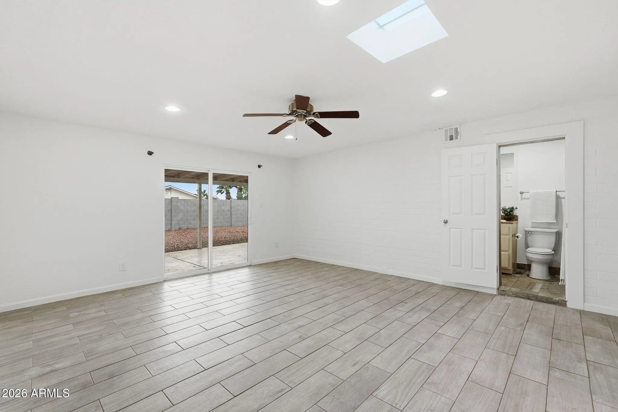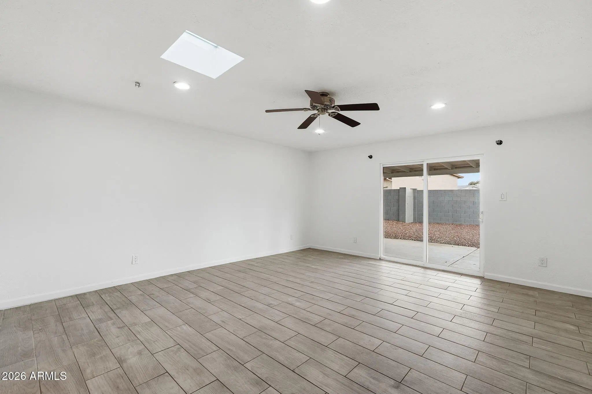 This recently updated 3 bed, 2 bath home features a neutral color palette and wood look flooring that extends throughout both the main living areas and bedrooms. The spacious great room opens effortlessly to the kitchen, creating an ideal layout for entertaining or everyday living. The kitchen is equipped with ample cabinetry, generous counter space, and stainless steel appliances. The primary suite offers a private exit to the backyard and an en-suite bathroom complete with a single-sink vanity and a walk-in tile shower. Step outside to enjoy the covered patio and low-maintenance landscaping, perfect for relaxing and outdoor enjoyment.
