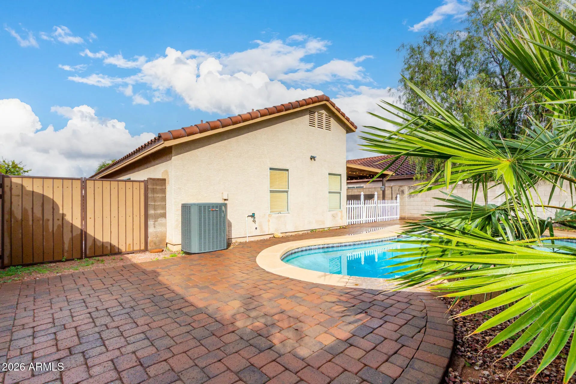 Welcome to this beautifully updated 3bed/2bath + Den home in Parkwood community, offering 1,544sqft of stylish living, plus a backyard built for Arizona fun. Inside, newer gray ceramic tile floors and freshly painted with a neutral color palette create a clean, modern feel throughout. The open-concept layout flows effortlessly, with an inviting living area highlighted by French doors that open to the backyard, bringing in natural light and making indoor-outdoor living easy. The kitchen is both functional and eye-catching, featuring black SS appliances, granite countertops, and a pantry, making it a great space for everyday living. Out back, enjoy a sparkling pool, paved yard, covered patio, and an RV gate, ideal for relaxing weekends and entertaining. Conveniently located near the... 60 freeway and loop 202, with quick access to shopping, dining, and everyday amenities!