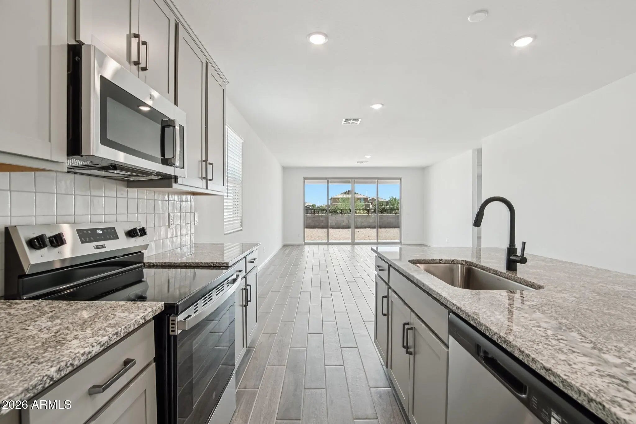 Be the first to live in this brand new single story home in the desirable North Copper Canyon community in Surprise. Offering 2075 sq ft of throughfully designed living space. This 4 bedroom home with a den features an open concept layout with a stunning 12 foot, 4 panel sliding glass door that connects the great room to the covered patio and private backyard with no rear neighbors and beautiful open views. The gourmet kitchen boasts a large island, stainless steel appliances, walk-in pantry, grey 42' cabinets, granite countertops and designer finishes. The spacious primary suite includes a walk-in closet, dual sinks and a walk-in shower. Additional highlights include wood-look plank tile flooring, 8 foot interior doors, a paver driveway, all the appliances included, ceiling fans throughout, a 2 car garage with EV charging outlet and access to community amenities such as walking paths, pool, tennis and basketball courts, all in a prime location close to freeways, shopping and dining. Lessee to verify all information.