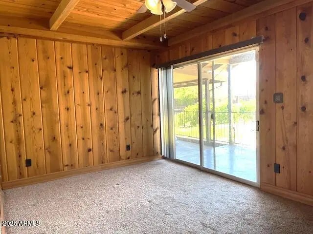 Discover this spacious 3-bedroom, 1.75-bath home featuring knotty pine paneling and newer carpet throughout, this property offers warmth & comfort in every corner. The split bedroom floor plan ensures privacy, while the galley-style kitchen, complete with refrigerator. Enjoy gatherings in the large living room & family room with a cozy fireplace, or step outside to your covered back patio overlooking a private pool. Sports enthusiasts will love the basketball/sport court, & the observation deck above the 2-car carport adds a unique touch. The huge laundry room includes a full size washer/dryer & ample storage makes daily chores a breeze. Close to shopping, restaurants, 101 & 51 freeways for quick access around the valley. (Tenant to verify school/s).