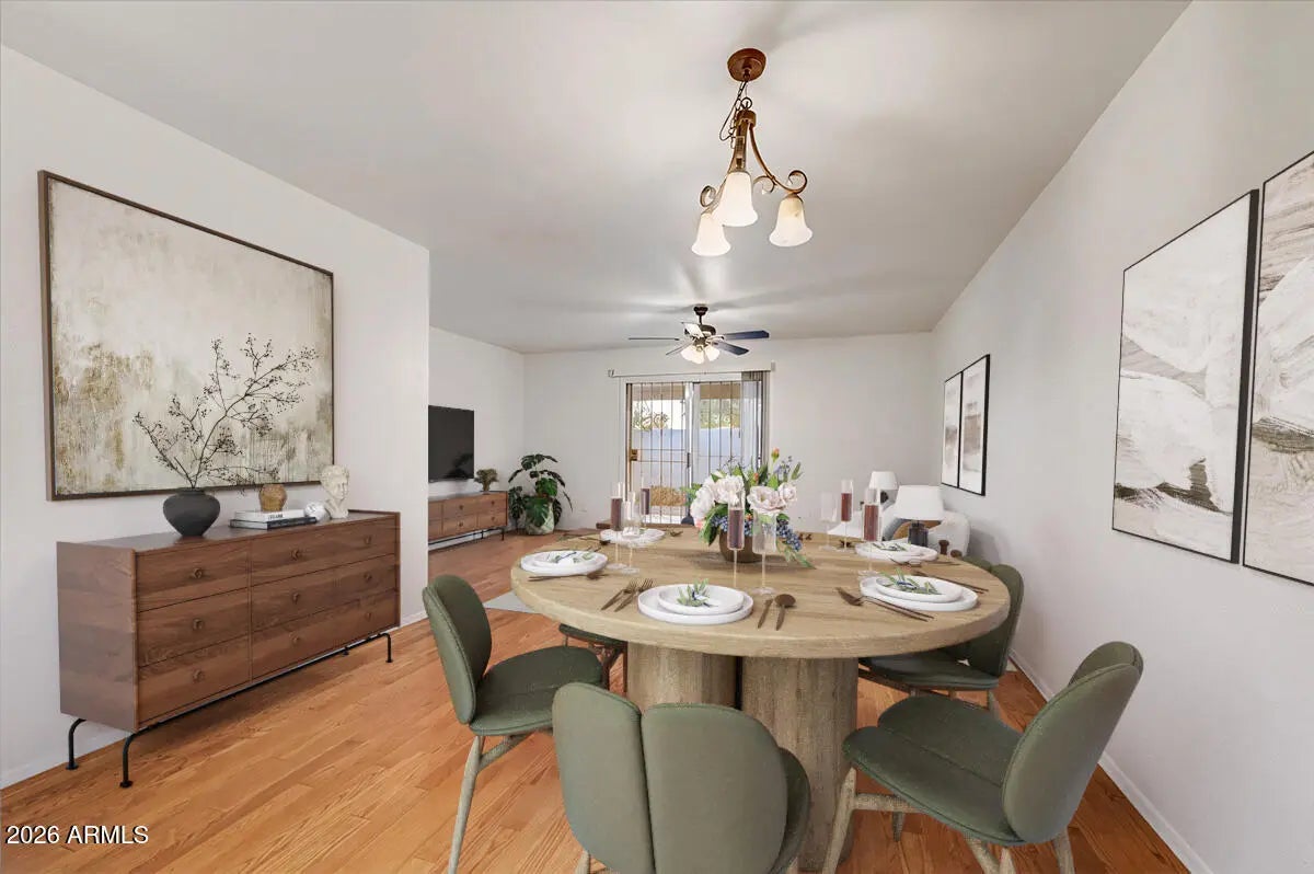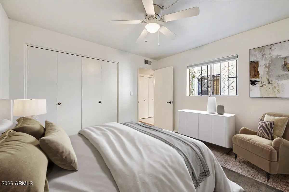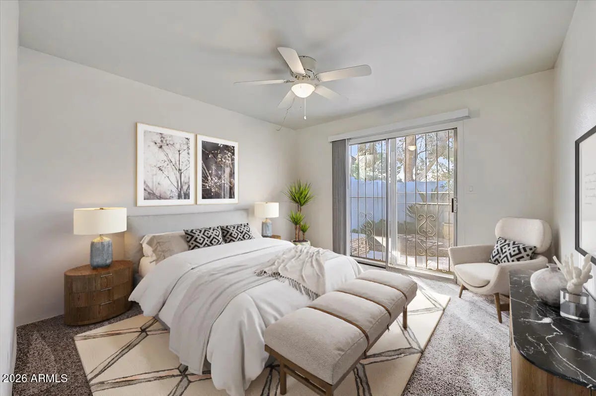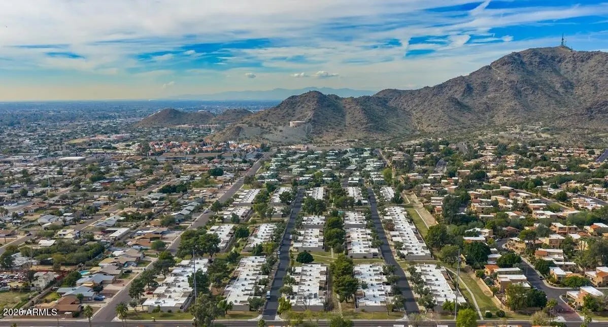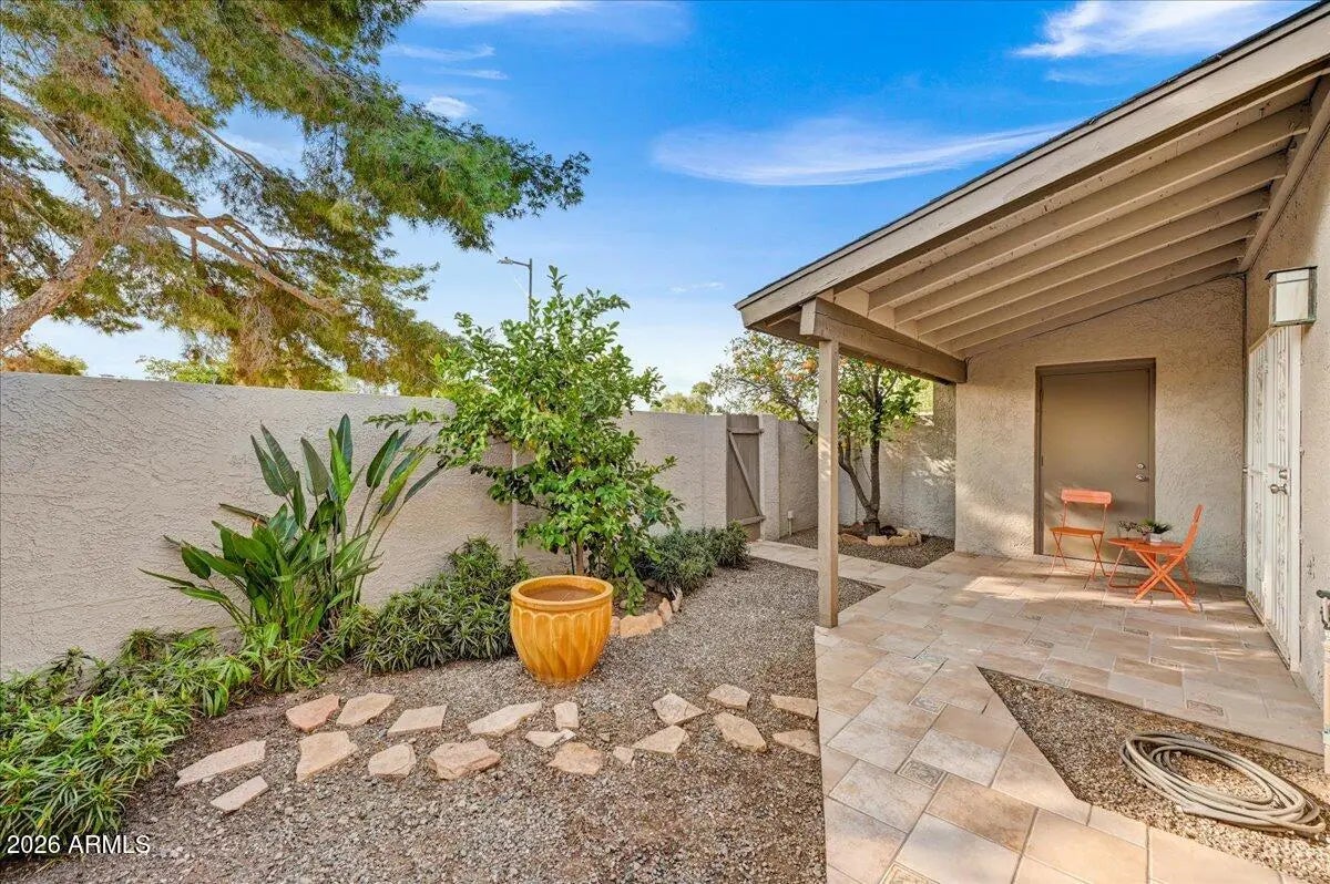 Enjoy easy, low-maintenance living in this charming single-story 2-bed, 2-bath condo in Phoenix! Enjoy fruit trees on your covered patio & step out your private backyard gate to extensive green space & convenient walking path, perfect for enjoying desert living. The community pool is just steps away, offering a resort-style feel right outside your door! Inside, the layout provides comfortable living with a great room, well-appointed bedrooms, fresh interior paint & new quartz counters in kitchen & bathrooms. Plus, updated seamless bath tub & shower walls. Surrounded by beautiful mountain views in every direction, this home offers a serene setting while still being close to city conveniences. A perfect blend of nature, comfort & location; ideal for year-round living or a seasonal retreat!