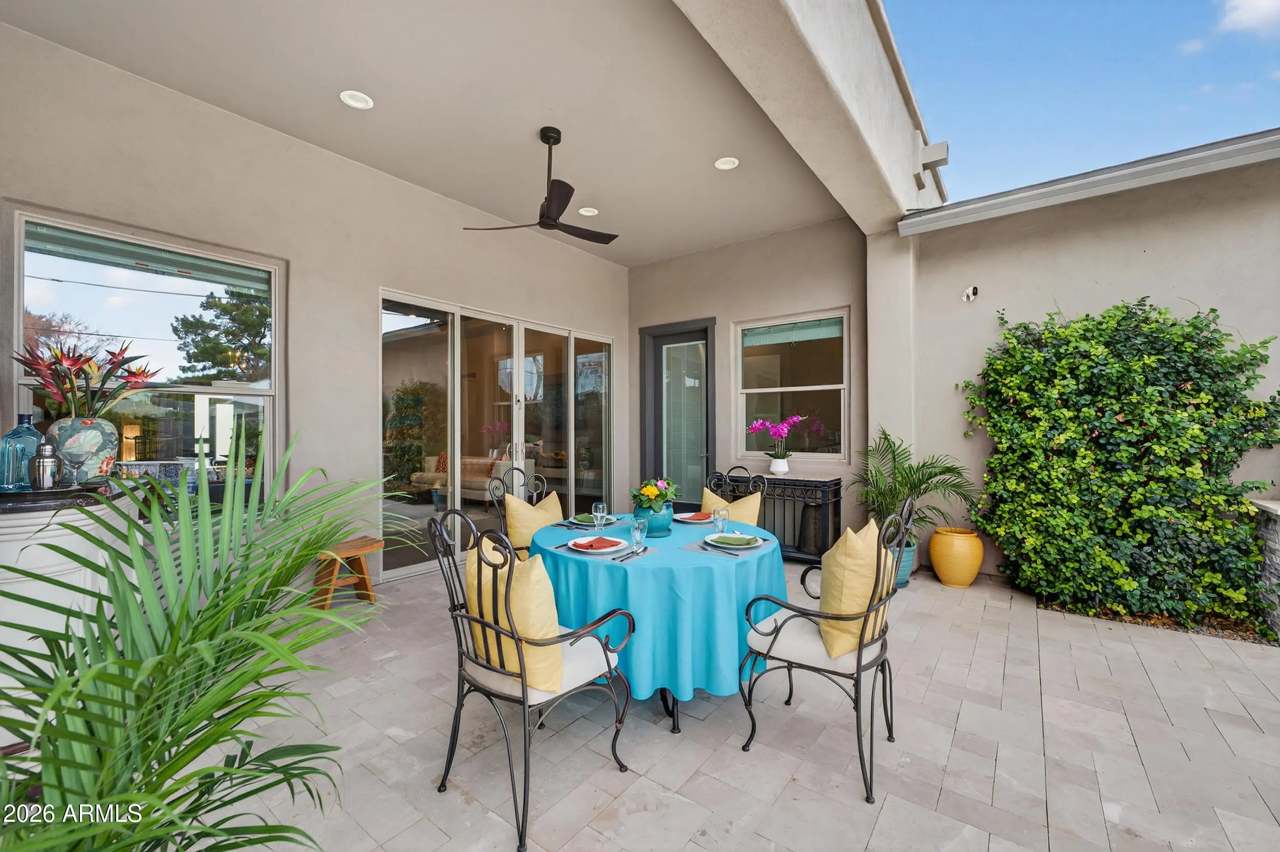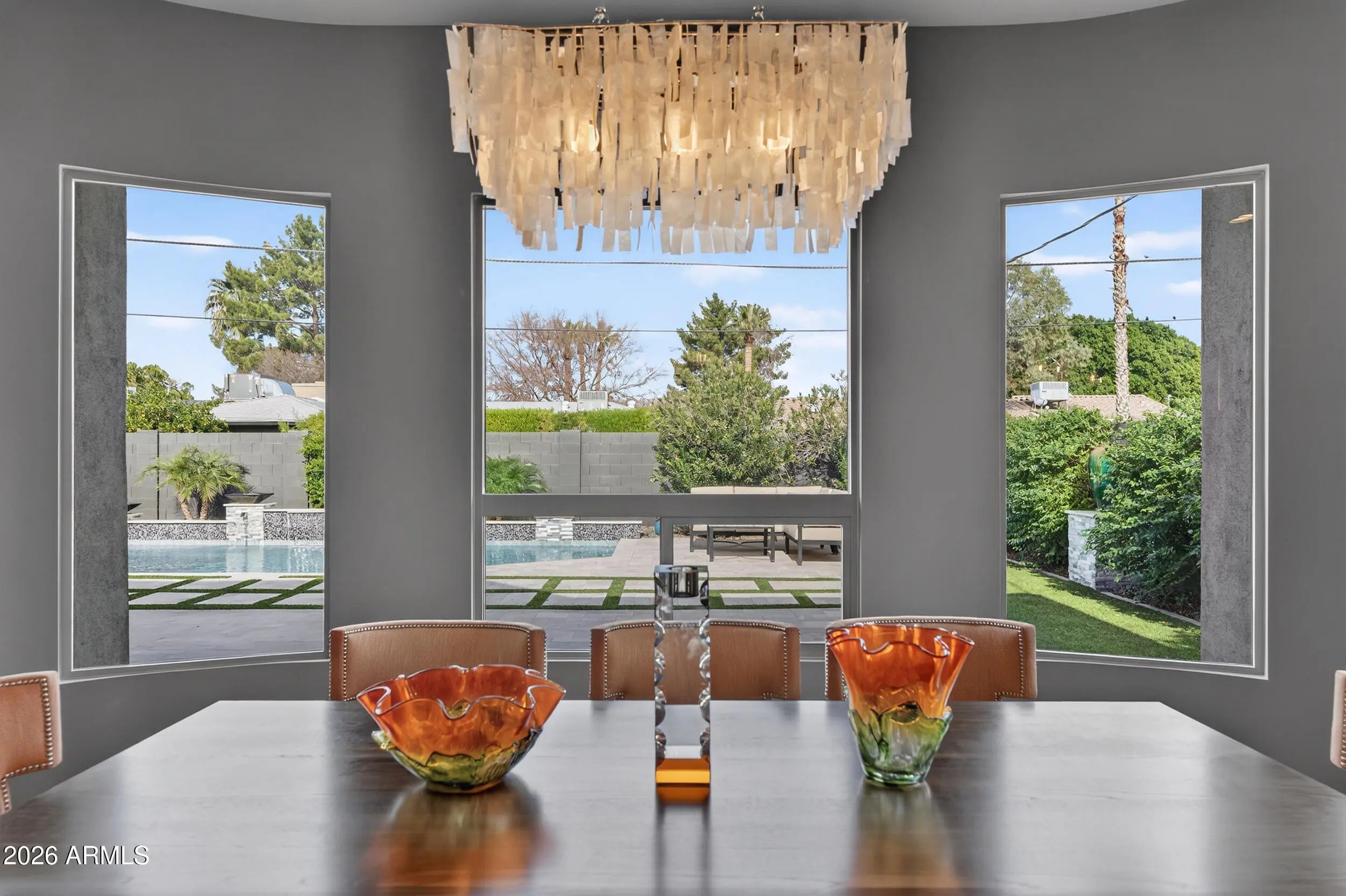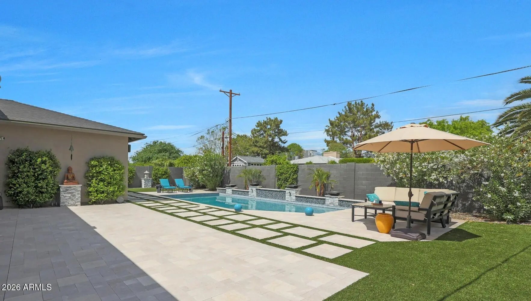 Experience refined, all-season living in this custom-built residence located just south of Arcadia. This home features expansive indoor spaces that flow seamlessly into resort-style outdoor living, creating an exceptional setting for both relaxed living and elevated entertaining. Every detail has been carefully curated to create a tranquil sanctuary, where indoor contemporary elegance blends seamlessly with the beauty of the outdoors. A serene, cohesive color palette flows throughout the home, enhancing its sense of calm, sophistication, and timeless appeal. Perfectly suited for everyday luxury and memorable gatherings, this residence offers a stunning backdrop for your next chapter in life. Inside appreciate the open floor plan, natural light filled rooms, high ceilings and luxury finishes. The gourmet kitchen overlooks the main living and dining areas. Outside, the sparkling heated pool is the focal point w/ waterfall and gas features. A covered patio, travertine decking, greenery, statuary & lighting pull it all together. Perfect for entertaining or solo downtime. Designed for enjoyment 365 days a year. Back inside, a large primary suite w/ access to the backyard. Luxurious en-suite bath w/ dual sinks, separate tub/shower & customized walk in closet. 2 guest bedrooms share a jack/jill bathroom w/ dual sinks & walk in shower. 4th bedroom configured as media room w/ walk in closet. Minutes from Arcadia's dining & shopping. Convenient access to loop 202, SR143 and Sky Harbor.