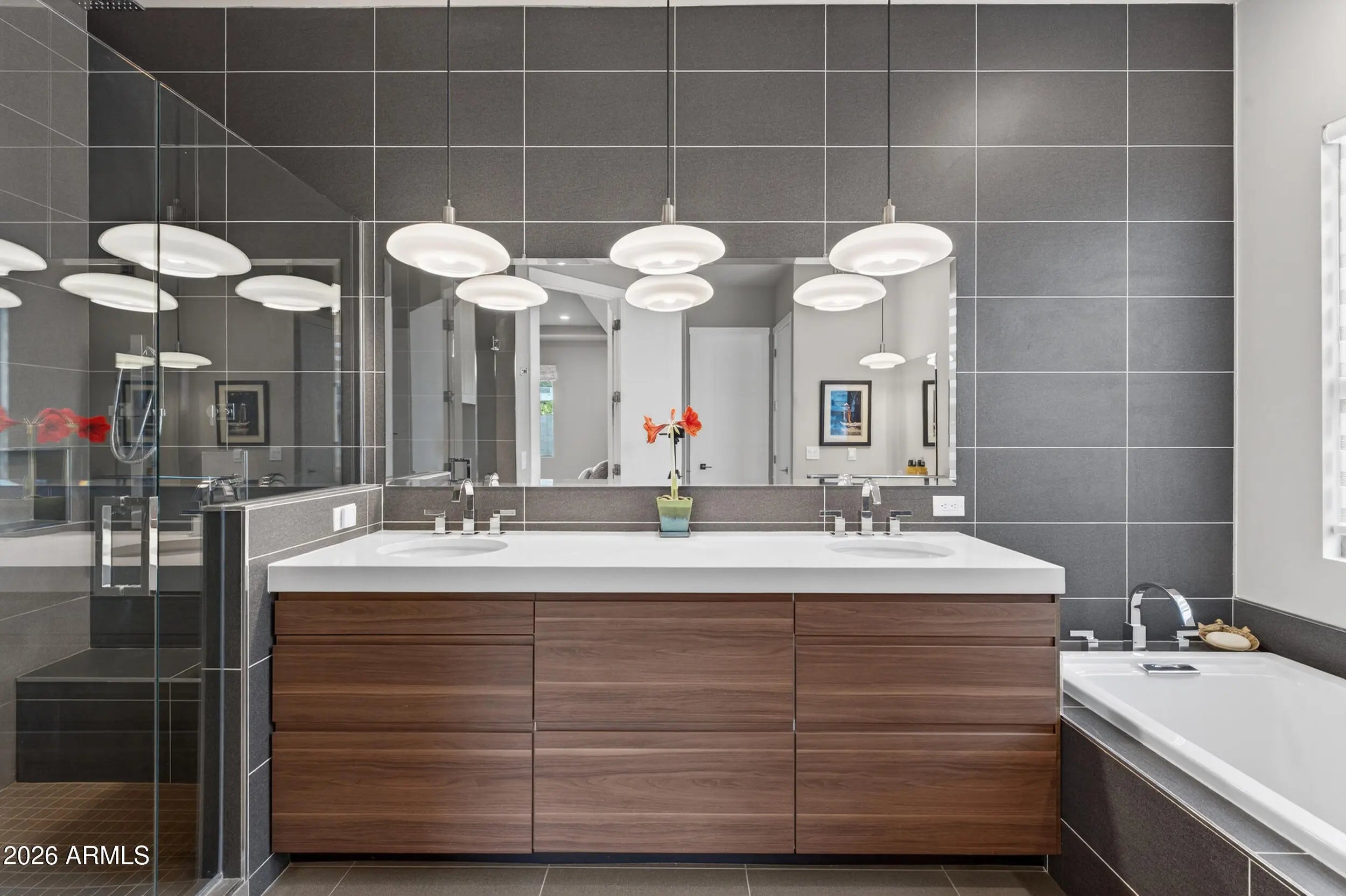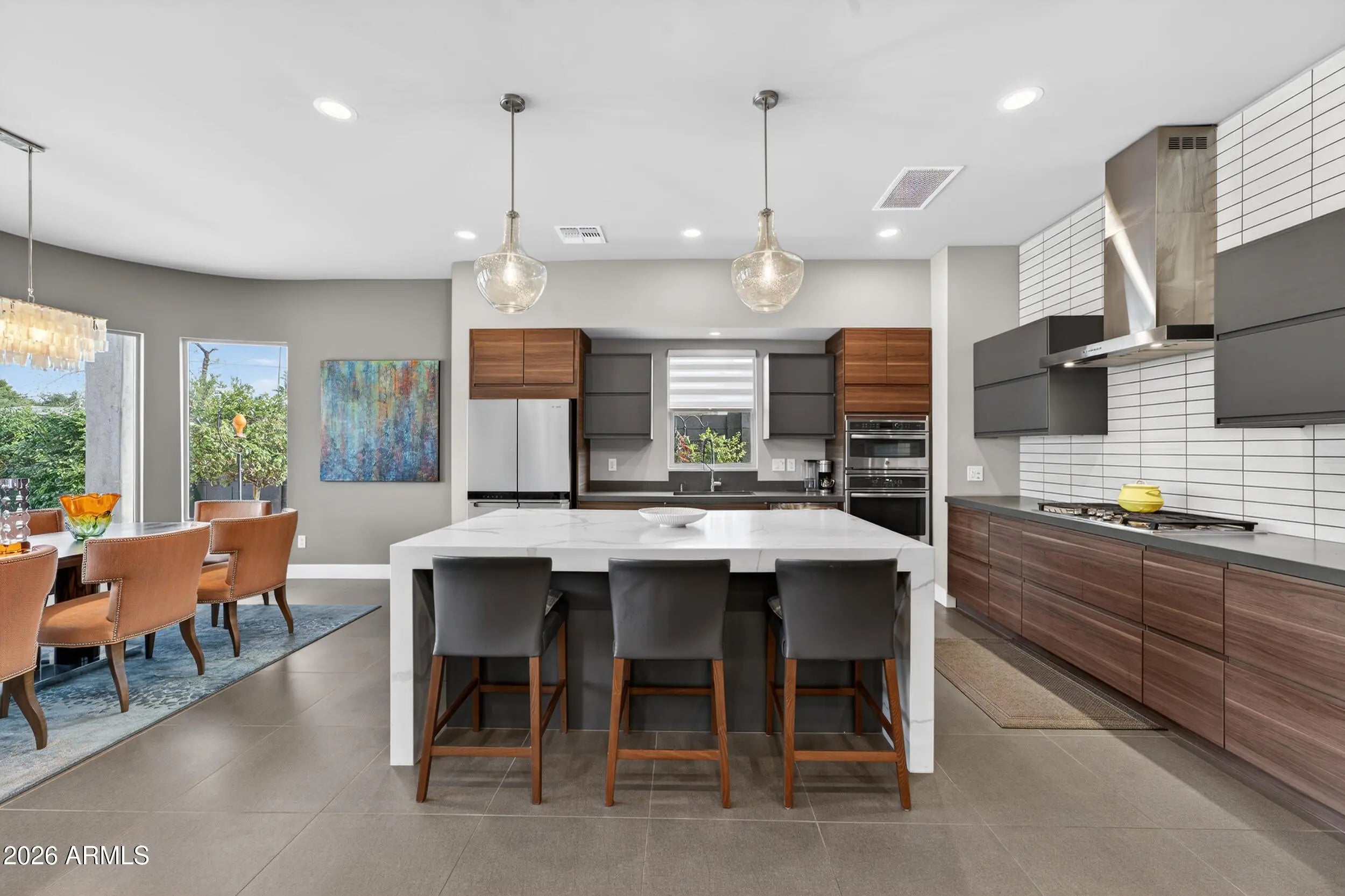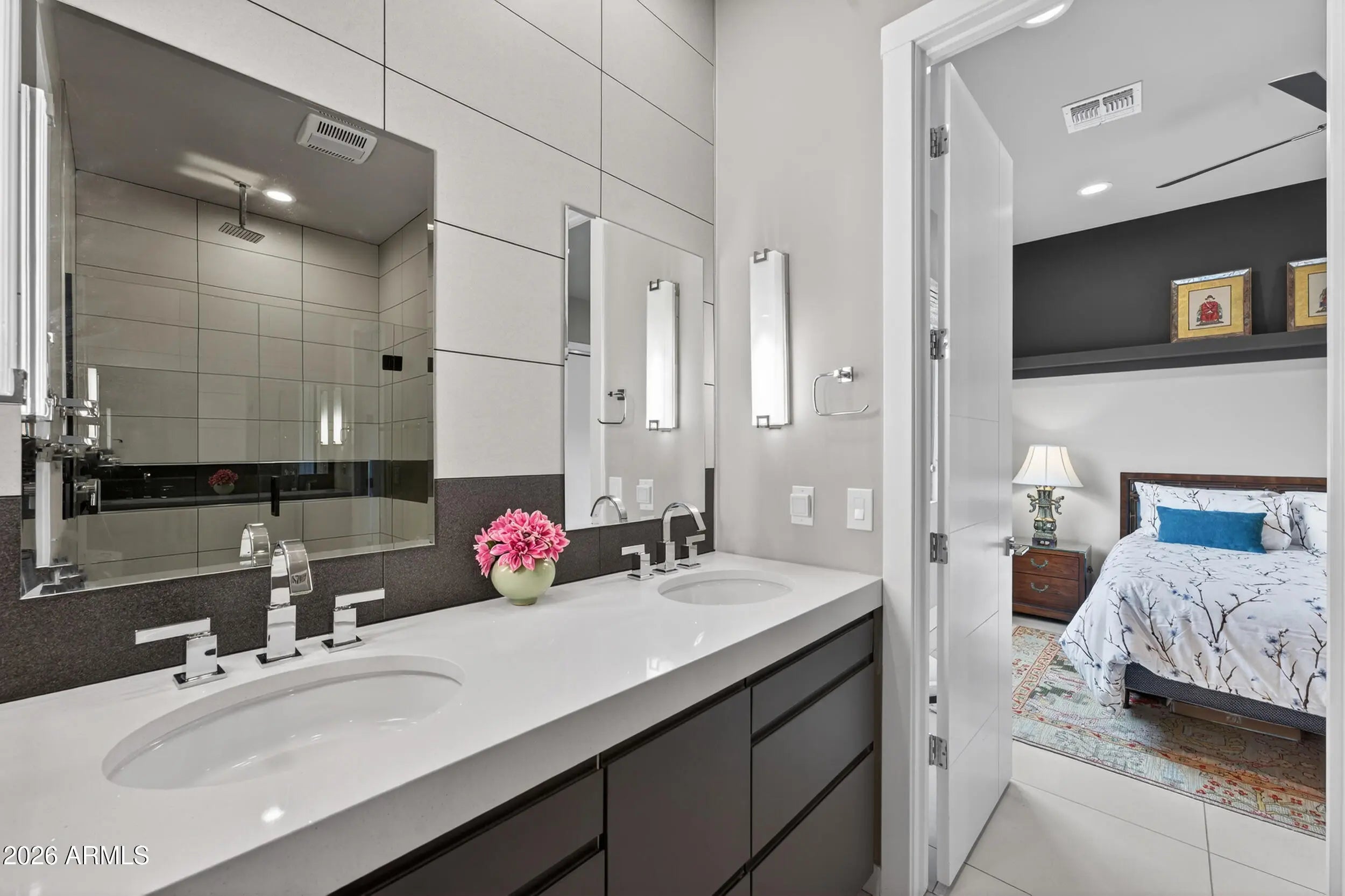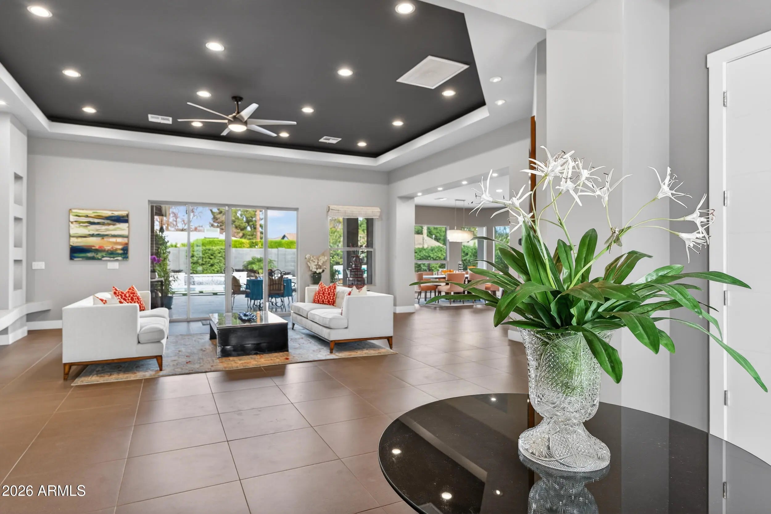 Experience refined, all-season living in this custom-built residence located just south of Arcadia. This home features expansive indoor spaces that flow seamlessly into resort-style outdoor living, creating an exceptional setting for both relaxed living and elevated entertaining. Every detail has been carefully curated to create a tranquil sanctuary, where indoor contemporary elegance blends seamlessly with the beauty of the outdoors. A serene, cohesive color palette flows throughout the home, enhancing its sense of calm, sophistication, and timeless appeal. Perfectly suited for everyday luxury and memorable gatherings, this residence offers a stunning backdrop for your next chapter in life. Inside appreciate the open floor plan, natural light filled rooms, high ceilings and luxury finishes. The gourmet kitchen overlooks the main living and dining areas. Outside, the sparkling heated pool is the focal point w/ waterfall and gas features. A covered patio, travertine decking, greenery, statuary & lighting pull it all together. Perfect for entertaining or solo downtime. Designed for enjoyment 365 days a year. Back inside, a large primary suite w/ access to the backyard. Luxurious en-suite bath w/ dual sinks, separate tub/shower & customized walk in closet. 2 guest bedrooms share a jack/jill bathroom w/ dual sinks & walk in shower. 4th bedroom configured as media room w/ walk in closet. Minutes from Arcadia's dining & shopping. Convenient access to loop 202, SR143 and Sky Harbor.