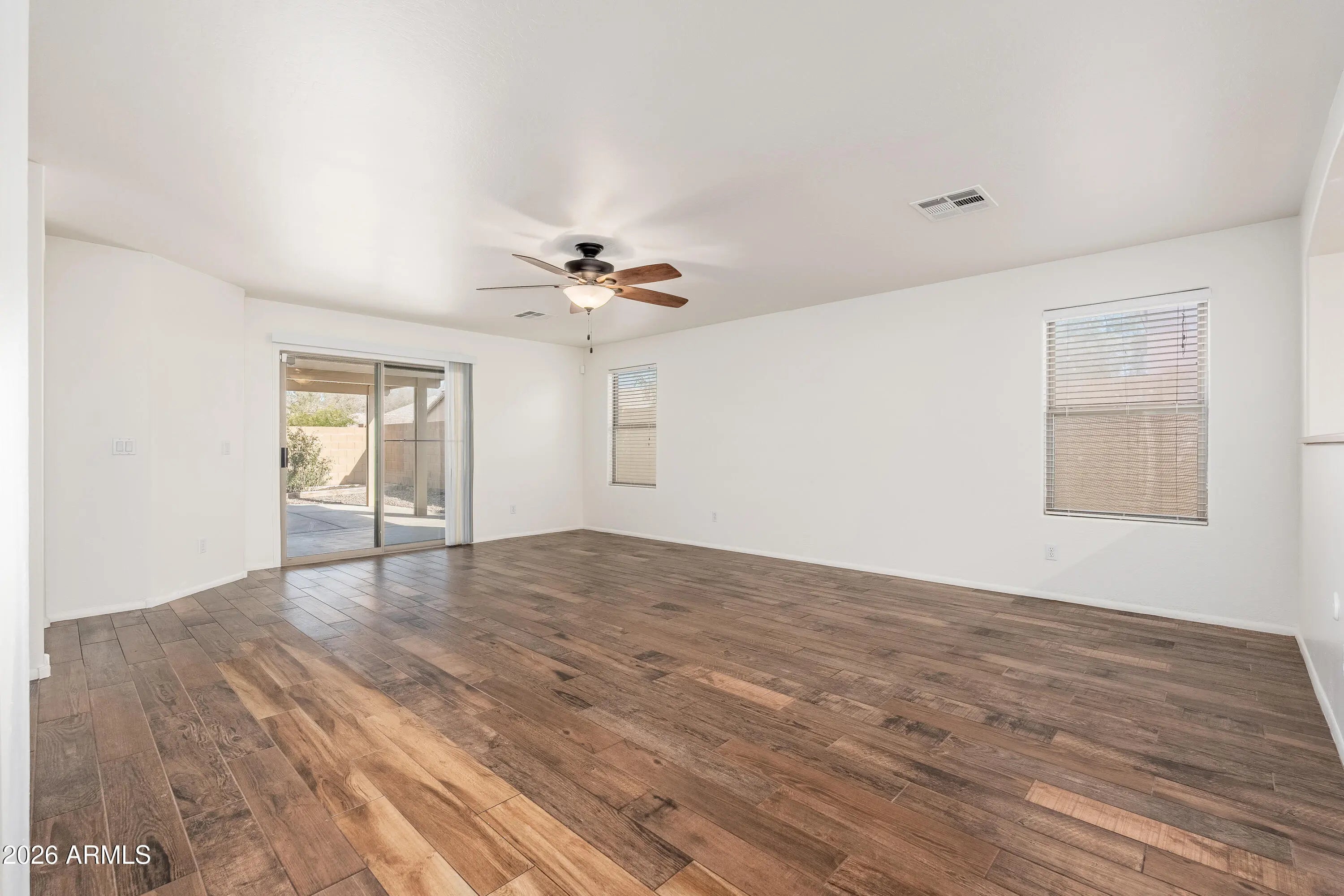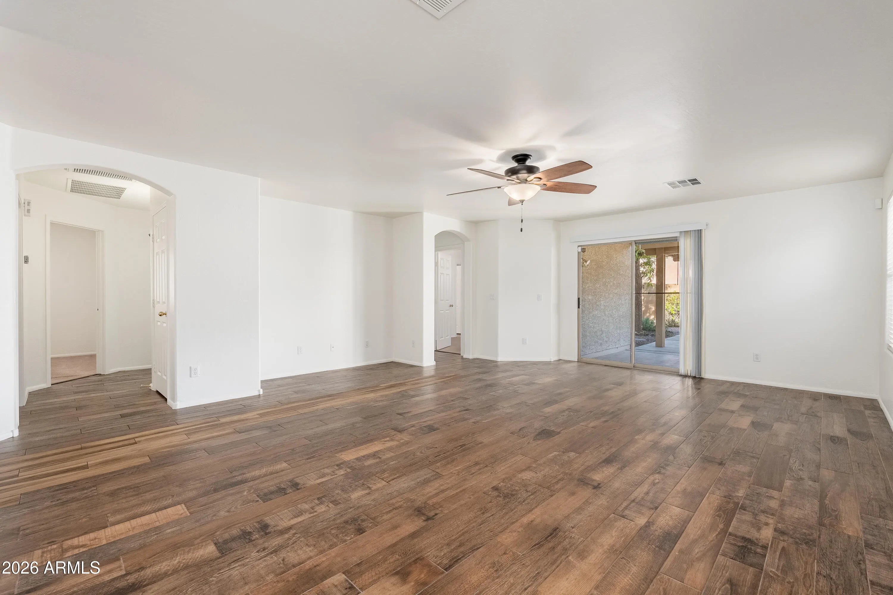 Welcome to Los Arbolitos Ranch! This 3bed/2bath split floor plan home has been freshly painted inside and out; the HVAC was updated in 2018 and has stylish wood plank tile flooring. Enjoy a spacious great room, eat-in kitchen with pantry and walk-in laundry room. Relax under the extended covered patio overlooking a low-maintenance backyard with lush turf. The community offers a greenbelt and playground, along with nearby shopping, dining, schools, and easy Loop 101 and I-10 access!