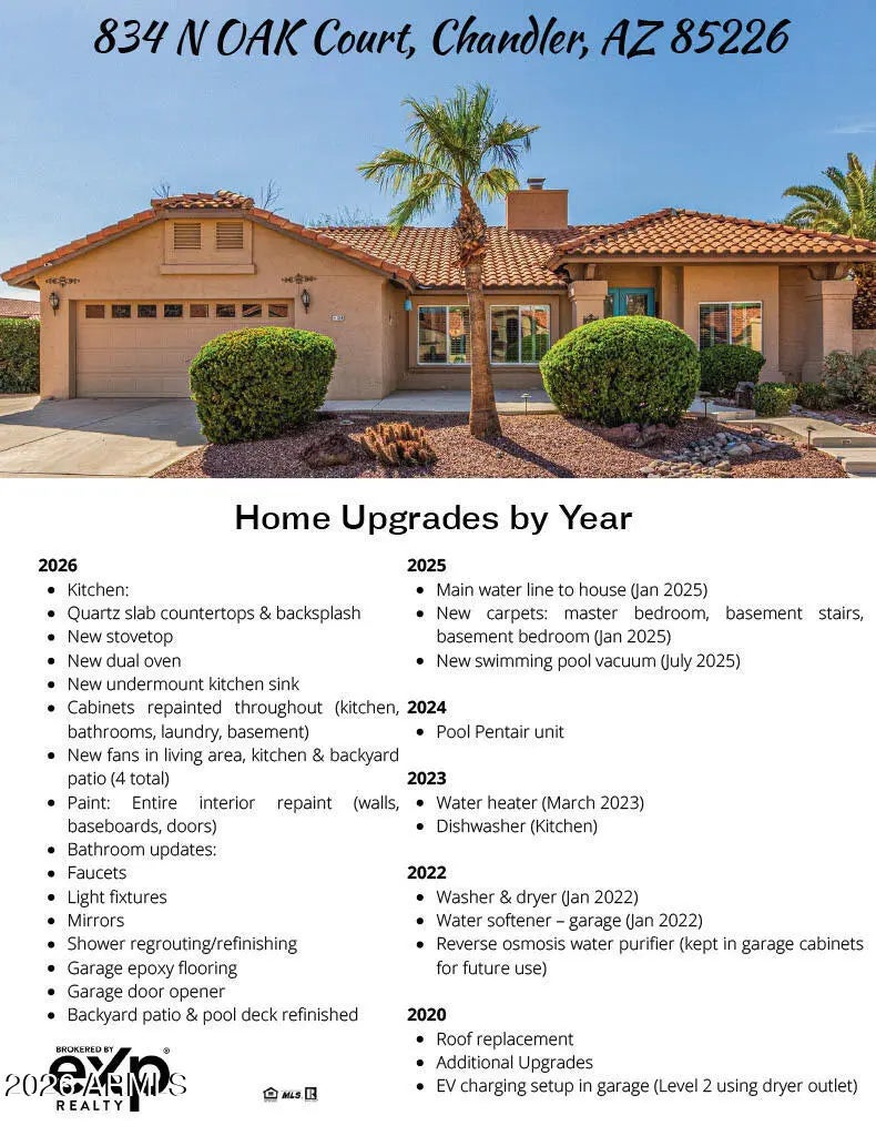 Basement home on almost a 1/4 acre! Please ignore the days on market - the home has been recently remodeled and is now completely different. Please check the Documents tab for all of the new upgrades. This gorgeous gem beautifully combines timeless elegance w/modern style. Nestled on a desirable cul-de-sac, it boasts a 2-car garage and a professionally landscaped front yard for an attractive curb appeal. Custom front double-door entry opens to a welcoming interior! Plantation shutters, tall vaulted ceilings, surround sound, and tile flooring create an appealing ambiance filled w/abundant natural light. You'll love the two-way fireplace that links the inviting living & dining rooms, perfect for relaxation and social gatherings. Airy kitchen displays recessed lighting, ample cabinetry, built-in appliances, quartz slab countertops and backsplash, and a breakfast bar. Romantic main retreat impresses w/plush carpet, outdoor access, an ensuite w/dual sinks, and a walk-in closet 1. Quartz slab countertops and backsplash 2026 2. New stovetop 2026 3. New dual oven 2026 4. New undermount kitchen sink 2026 5. Cabinets repainted throughout (kitchen, bathrooms, laundry, basement) 2026 6. New fans in living area, kitchen and backyard patio 2026 7. Entire interior repaint (walls, baseboards, doors) 2026 8. Bathroom faucets 2026 9. Bathroom light fixtures 2026 10. Bathroom mirrors 2026 11. Shower regrouting/refinish 2026 12. Garage epoxy flooring 2026 13. Garage door opener 2026 14. Backyard patio and pool deck refinished 2026