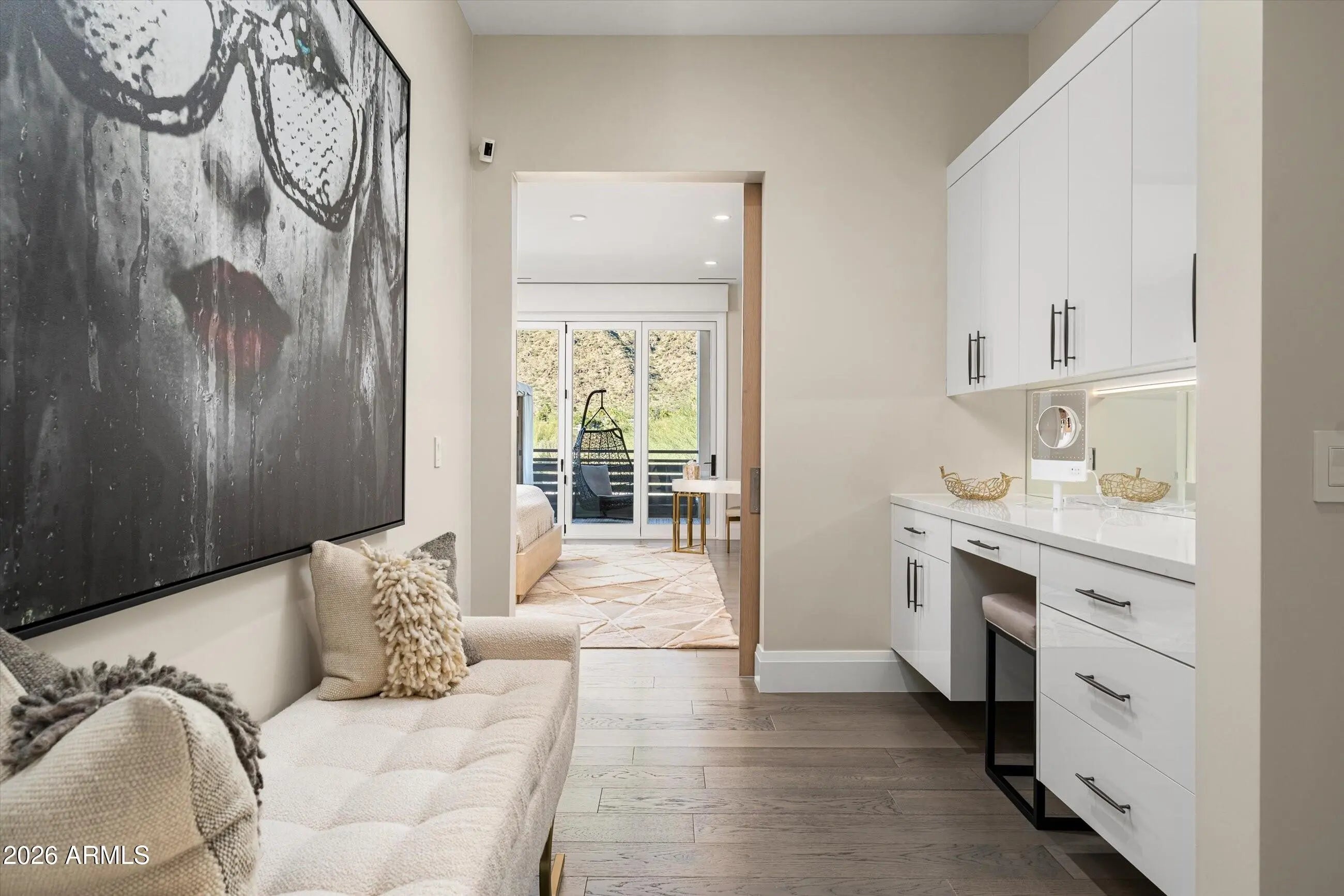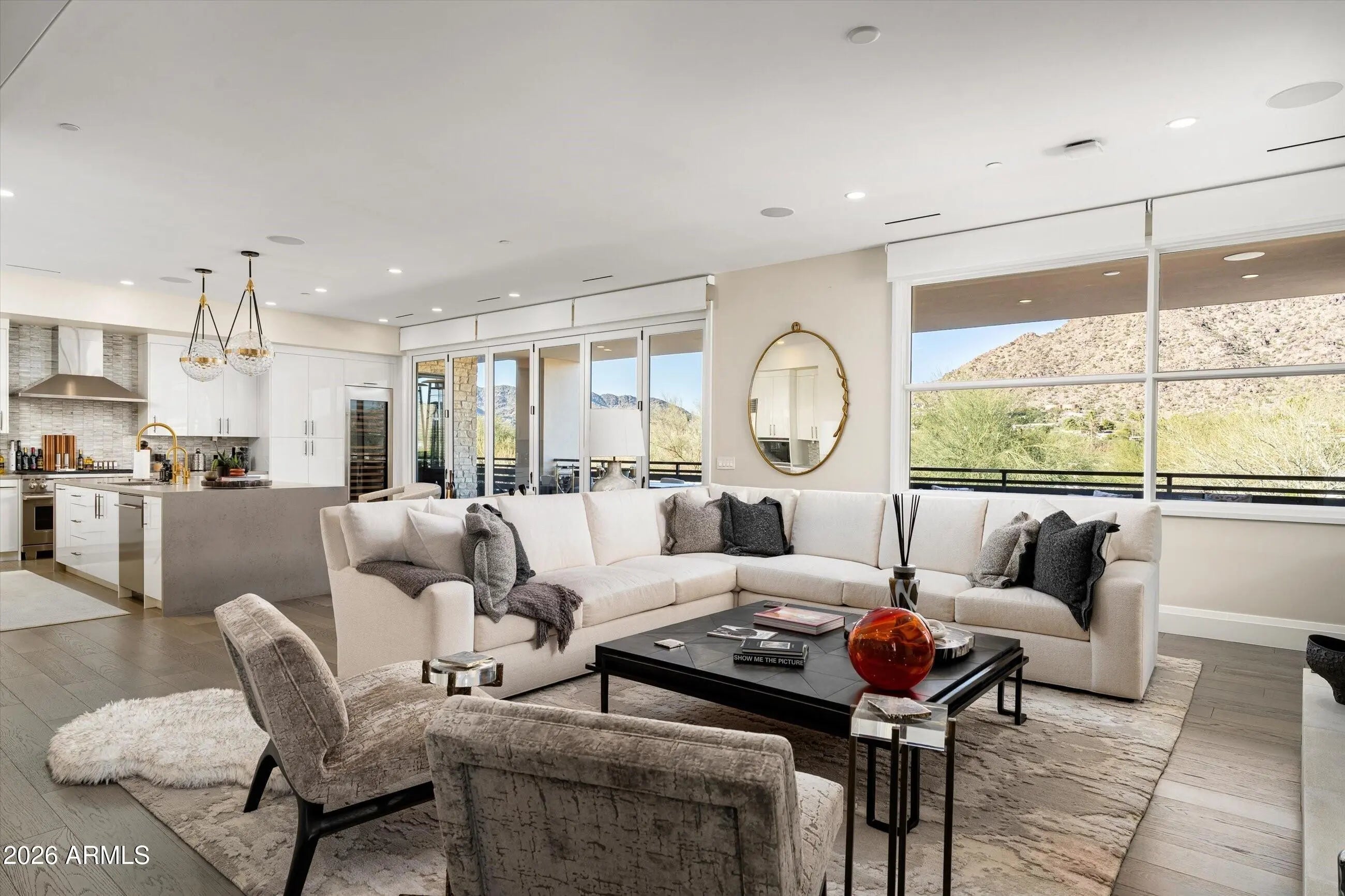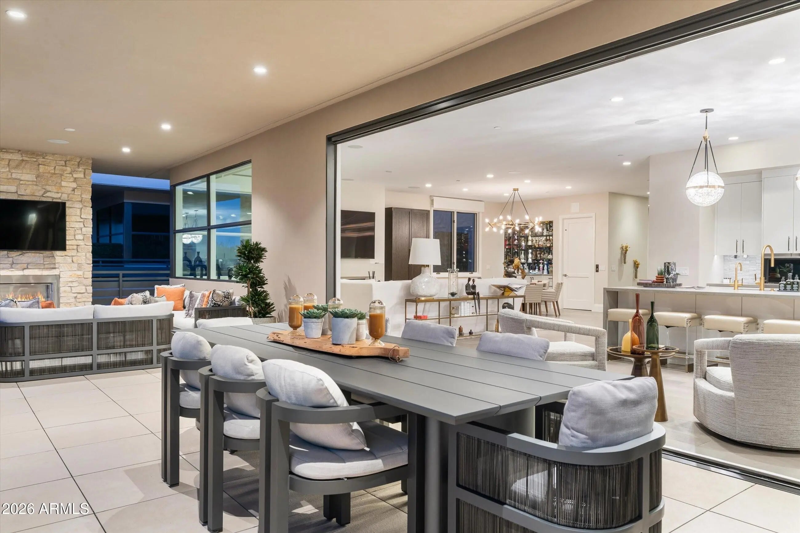 Welcome to this luxury villa located within the exclusive Mountain Shadows Resort community in Paradise Valley. Inside, soaring 10-foot ceilings and rich wood flooring create a refined yet warm atmosphere throughout. The great room is designed for seamless indoor/outdoor living, featuring expansive 9-foot bi-fold doors that open to the outdoors and fill the space with natural light. Both indoor and outdoor gas fireplaces add comfort and ambiance, perfect for entertaining or relaxing year-round. The kitchen is a true showpiece, outfitted with premium designer finishes and top-tier appliances, including a Wolf dual-fuel range, convection microwave, steam oven, a 48-inch Sub-Zero refrigerator, Sub-Zero wine tower, Asko dishwasher, and Zephyr hood. Quartz countertops with a waterfall edge complete the sleek, modern aesthetic. This villa also features Savant home automation, an in-home elevator, motorized shades, and custom wood shutters for ease and convenience. The attached two-car garage includes an epoxy floor, and the home is Energy Star rated for efficiency. Residents enjoy the peace of mind of a 24-hour guard-gated community, along with access to Mountain Shadows Resort and its full suite of amenities, including concierge services, a 4,500-square-foot fitness center with group classes included, a heated resort-style pool, golf, the Sanctuary Spa, tennis, and more.
