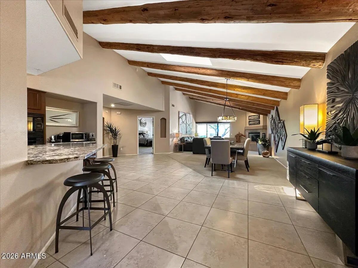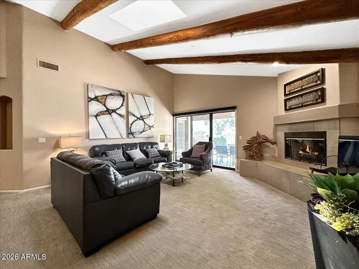 Discover the Amazing Boulder's Villa — your perfect retreat just a short distance from the club and resort amenities. Enjoy world‑class spa services, championship golf, and the full luxury resort experience right at your doorstep. This charming Southwest‑style home welcomes you with stunning exposed beams and a bright, spacious great room featuring a cozy gas fireplace and an open layout that seamlessly connects the living, dining, and kitchen areas. The kitchen offers abundant cabinetry, granite countertops, a breakfast bar, and a gas range—ideal for everyday living or entertaining. The generous primary suite is filled with natural light and includes private access to the backyard. Step outside to your own serene oasis: a large, private yard with mature landscaping and beautiful sunset views. The lowmaintenance lot ensures you can spend more time enjoying the lifestyle this community offers. Whether you're searching for your private dream home or a fantastic investment opportunity in one of Scottsdale's most desirable neighborhoods, this property truly has it all.