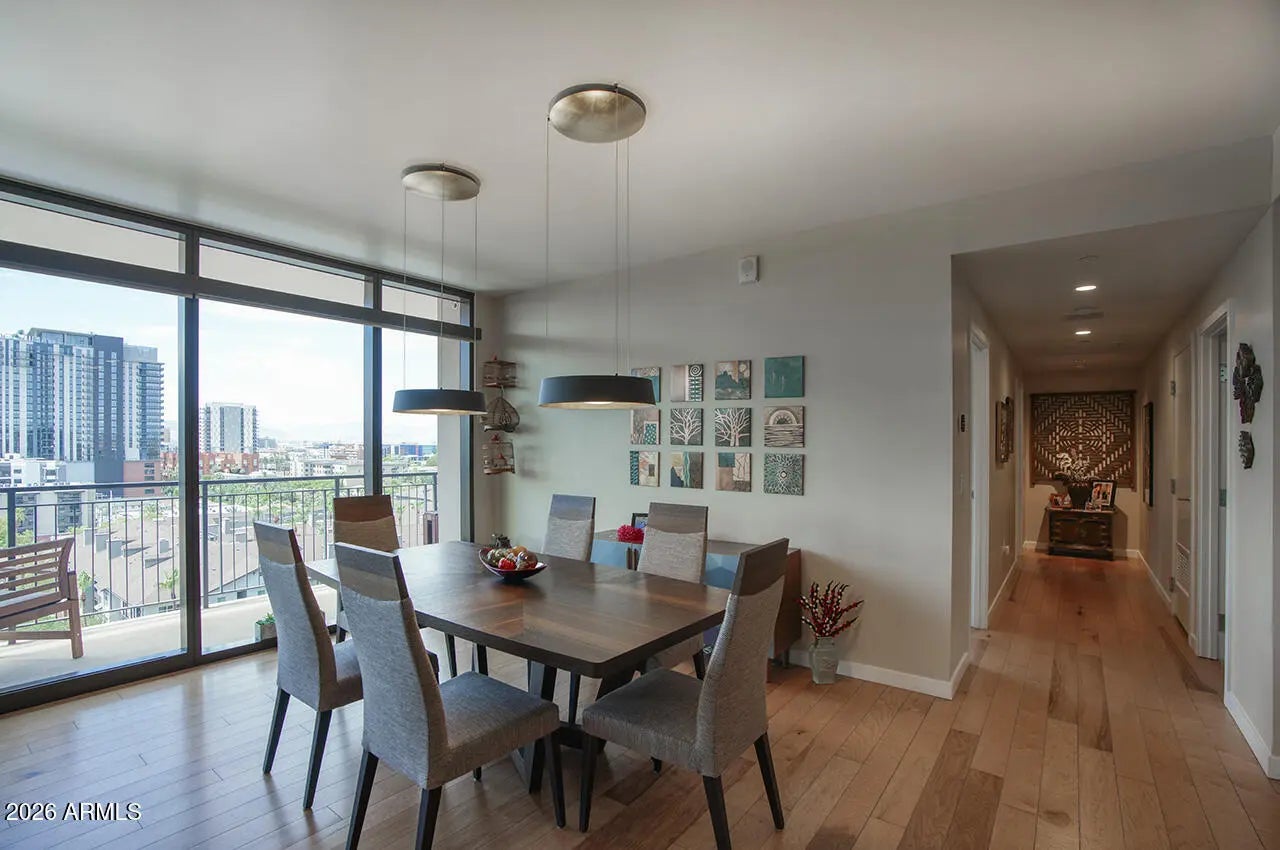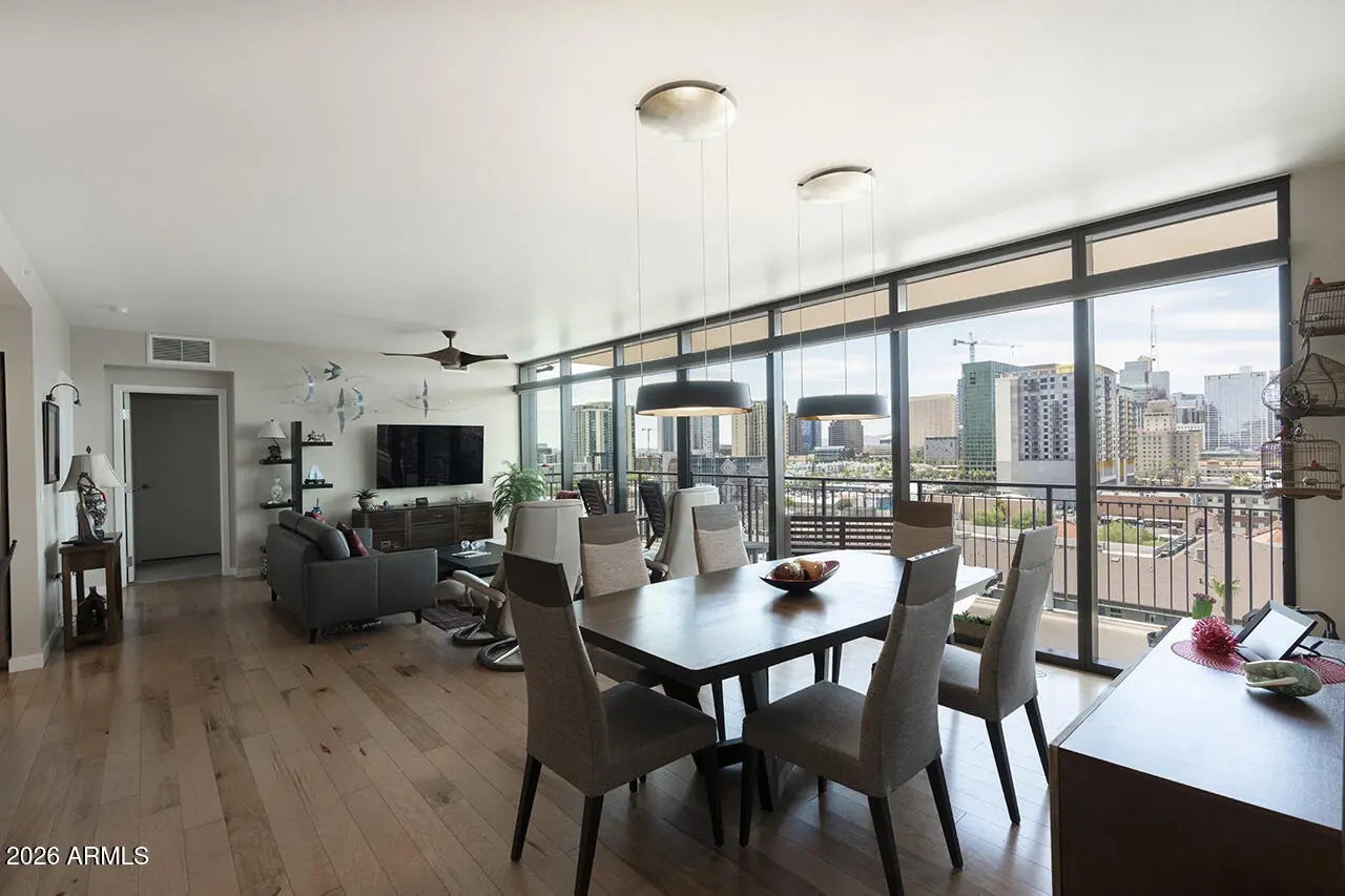 UNICORN ALERT! Come fall head over heels for this stunning urban dwelling! Spectacular views from every room of the vibrant (and growing!) downtown Phoenix skyline! It is almost magical day or night! Imagine watching the 4th of July fireworks or the monsoon storms rolling in, you can capture it all from your dining room chair! Open kitchen with induction stove, wine fridge, wood floors t/o, this is just the perfect floor plan. Split bedrooms with 2 on one side and the primary down its own hallway. The community is top notch and one of the best in the Valley! Pool/Gym/Rooftop/24 hour Staff, it is all here to pamper you! Walk to restaurants, coffee shops, parks, venues, art and more! A perfect place for somebody who loves the energy of urban living!