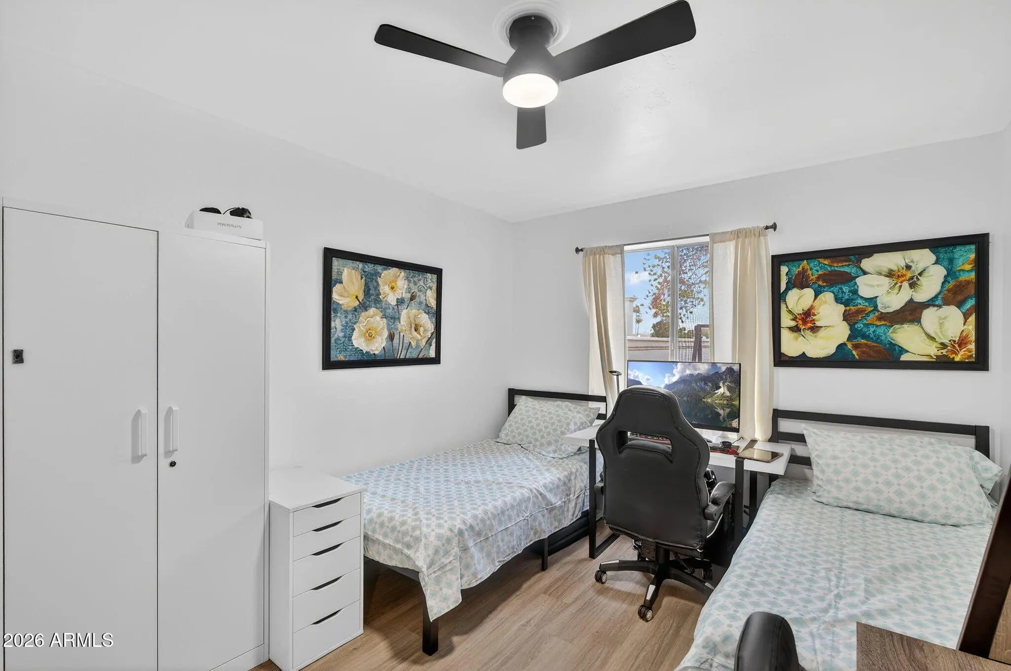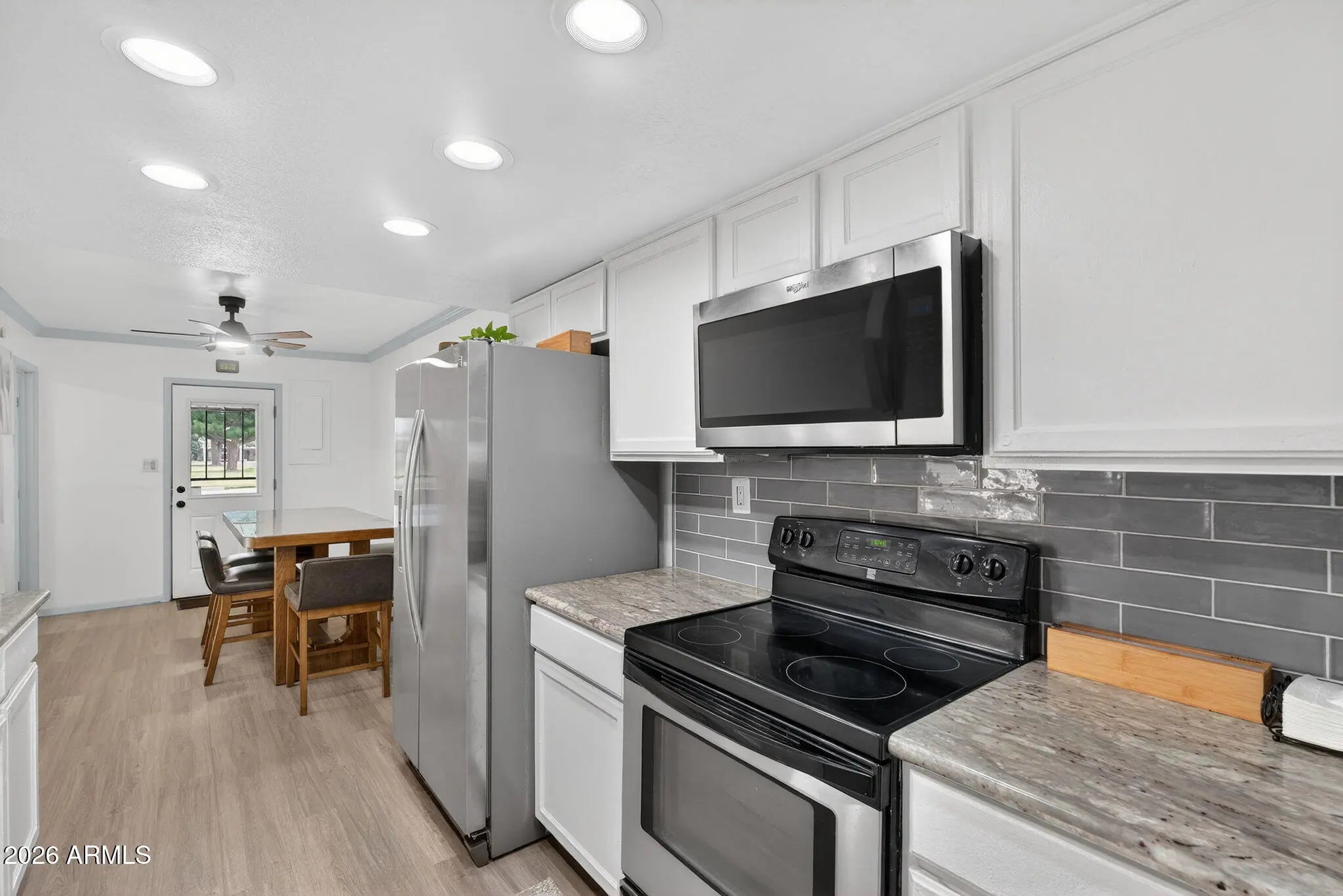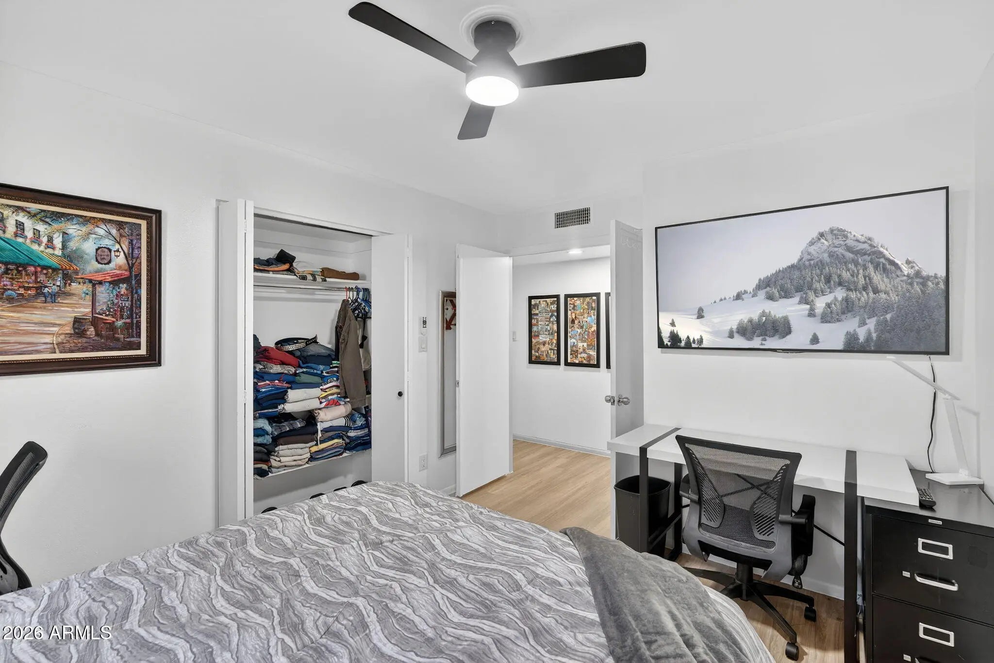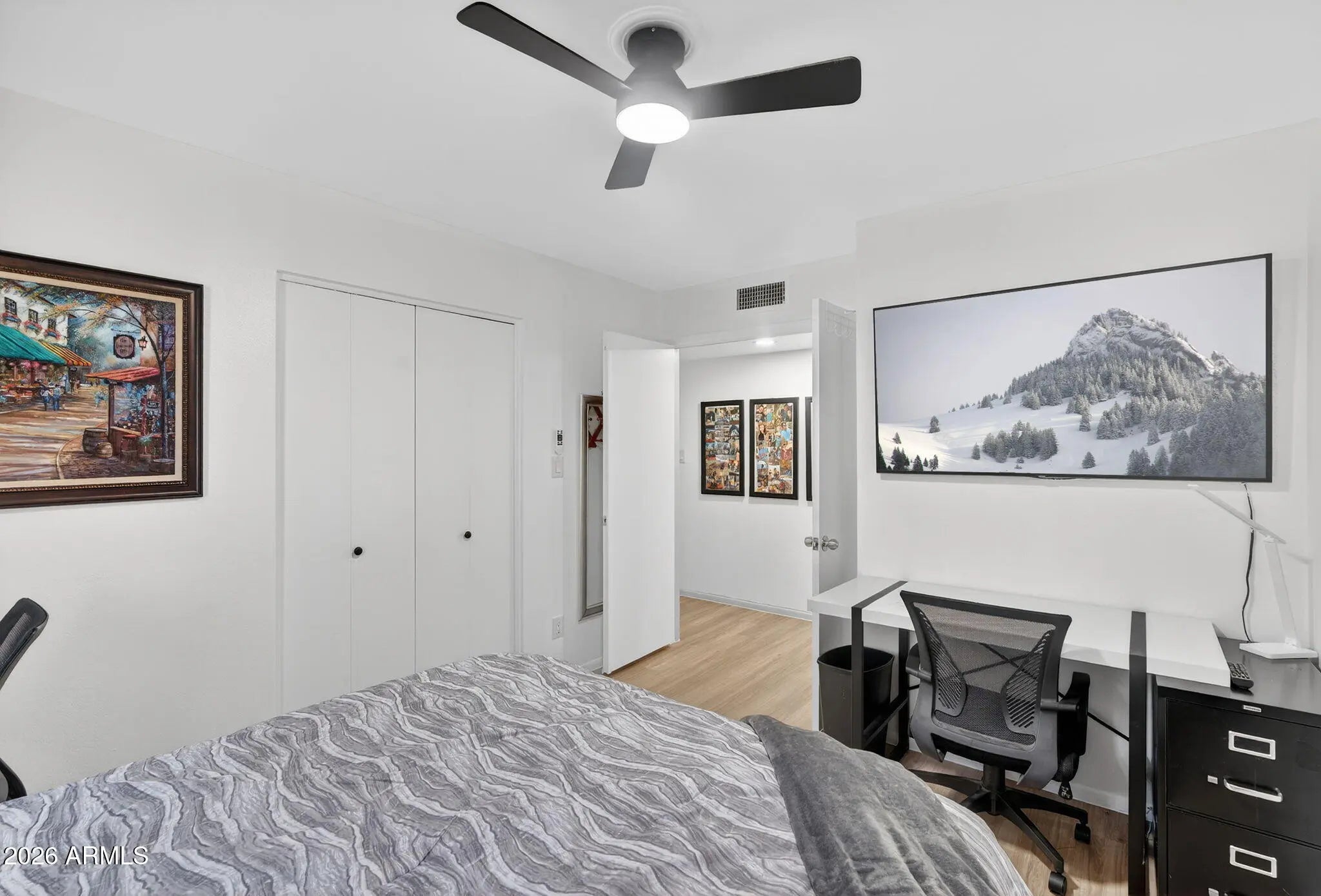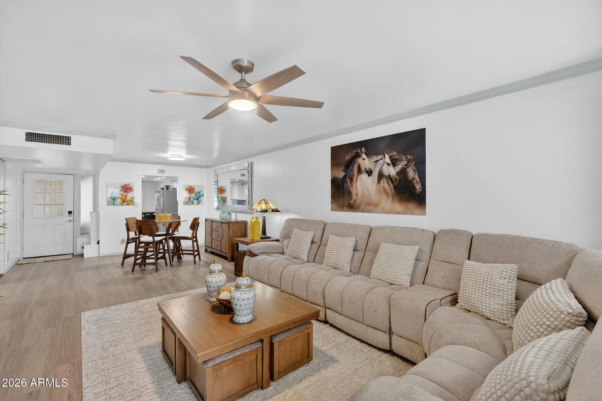 Beautifully remodeled, single-level patio home in a highly desirable community with no homes in front, facing the open greenbelt, community pool, and clubhouse. This home truly lives larger than the square footage and offers a rare combination of updates, functionality, and location. Extensively updated in 2025, the home features brand-new wood-look flooring throughout with no carpet, a fully repainted interior, updated light fixtures and ceiling fans, a remodeled guest bathroom, a new water heater, and a replaced front entry door. The kitchen is bright and functional with granite countertops, ample cabinetry, SS appliances, flowing seamlessly into the main living areas. A new sliding glass door enhance natural light, while the back additions were opened up in 2025 to create a more spacious, open feel. The flexible floor plan includes three generously sized bedrooms plus two additional office or flex spaces. The primary bedroom features its own sitting area, perfect for a reading nook or private workspace. Off the living room, the area leading to the back private patio offers an additional sitting or flex space, ideal for a home office, workout area, or quiet retreat. An oversized storage room off the back provides exceptional extra space rarely found in similar homes. Enjoy low-maintenance living with an HOA that maintains the front yard and cleans the carport, along with access to the community pool and clubhouse across the street. Just minutes from the I-17, shopping and dining! *2.75% FHA Assumable Loan available for qualified buyers*