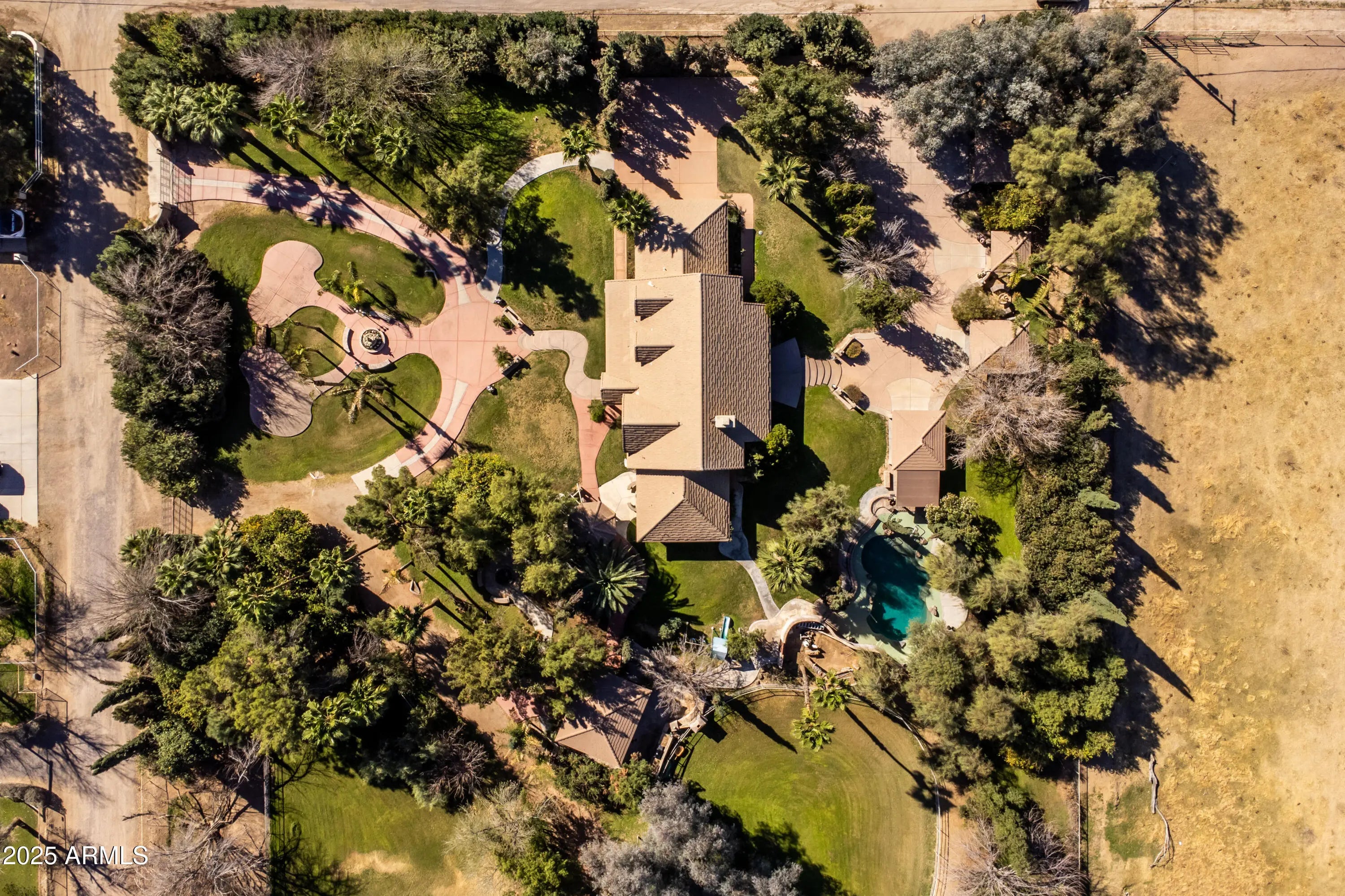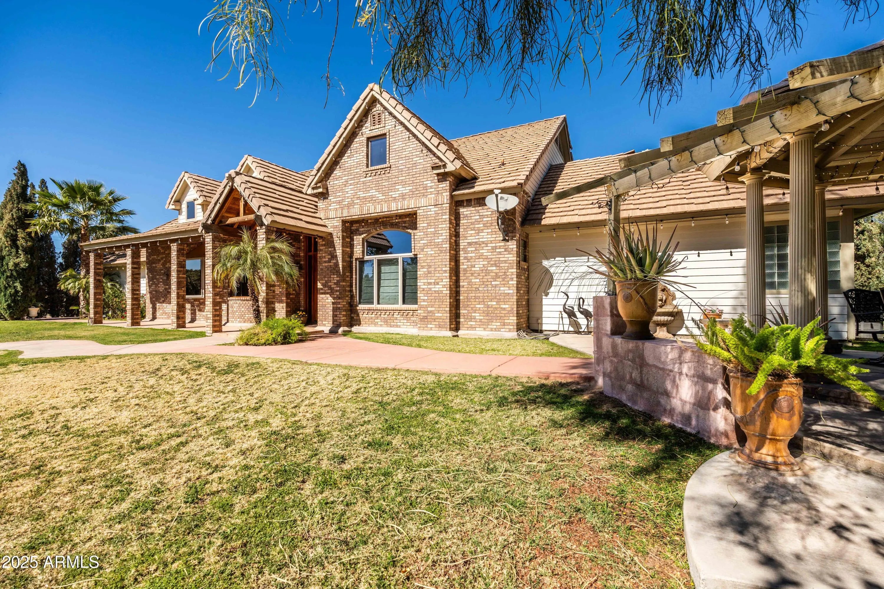 With 3 acres, this property is absolutely beautiful. With 5 gazebos, 4 fountains, a large pool, outdoor fire pit and fireplace, 2 sheds, 5 covered corals/horse stalls and chicken coop, mature queen palms, several fruit trees, plus much more! The home itself features 4 bedrooms and 3 full bathrooms. Anderson windows and solid oak doors. The kitchen includes granite counters, gas appliances that are 2 years old, an island and plenty of cabinets. In addition, 1 new AC unit and the other is only 3 years old. 4 car garage total, with 2 in the front and 2 in the back of the property. This property would make an amazing event space. Imagine hosting a beautiful outdoor wedding under one of the 5 gazebos or a fancy dinner party outside under the Palm Trees and lights. Come and see!