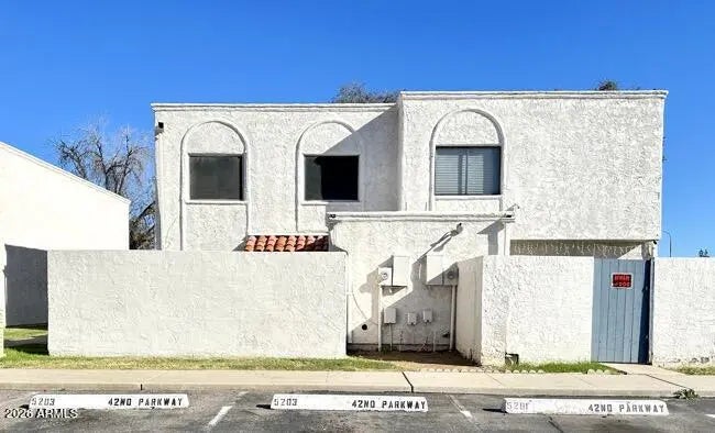 Cozy townhome with a smart two-level layout. Upstairs features 2 bedrooms and 1 full bath, while the main level offers a comfortable living area and kitchen—perfect for everyday living and easy entertaining. Step outside to your own private courtyard, ideal for relaxing or hosting guests. A detached laundry/storage space includes water heater and washer/dryer hookups for added convenience. Whether you're a first-time buyer or an investor, this property checks the boxes. Unit is separately metered for both water and electric. Prime location close to GCU with quick access to I-10, I-17, and US-60. Come see it and make it yours!