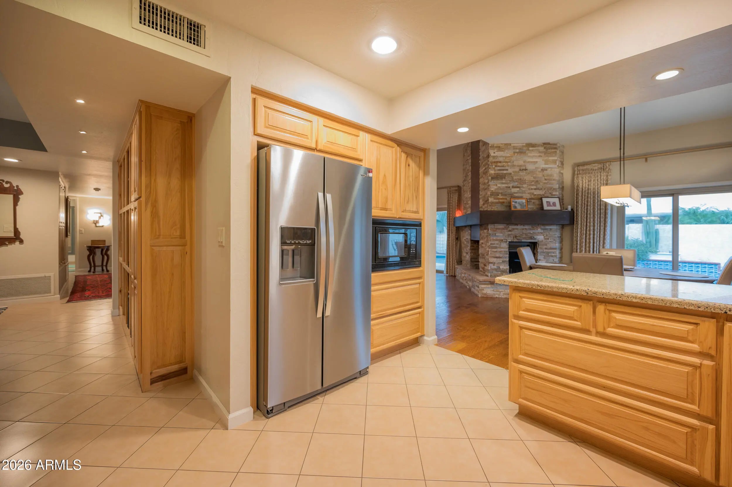 A real McCormick Ranch gem just steps from miles of the fantastic Green Belt! Home features 3 bedrooms & 2 bathrooms, separate breakfast room (or could be a den) 2 car garage on a gorgeous corner lot. Spacious great room has high ceilings, wood beams & 2-sided stone fireplace. Kitchen & bathrooms beautifully updated. Kitchen has stainless steel appliances, stone countertops & newer range & disposal. Breakfast room off kitchen could be a den. Primary suite has walk in closet, sitting area & backyard access. Large sparkling pool & spa in the tranquil backyard perfect for entertaining or relaxing. Lush front courtyard. Enjoy living just steps from desirable Cochise Elementary. Just minutes from the 101 Freeway, dining, shopping, golf and more! NEW ROOF 2026!