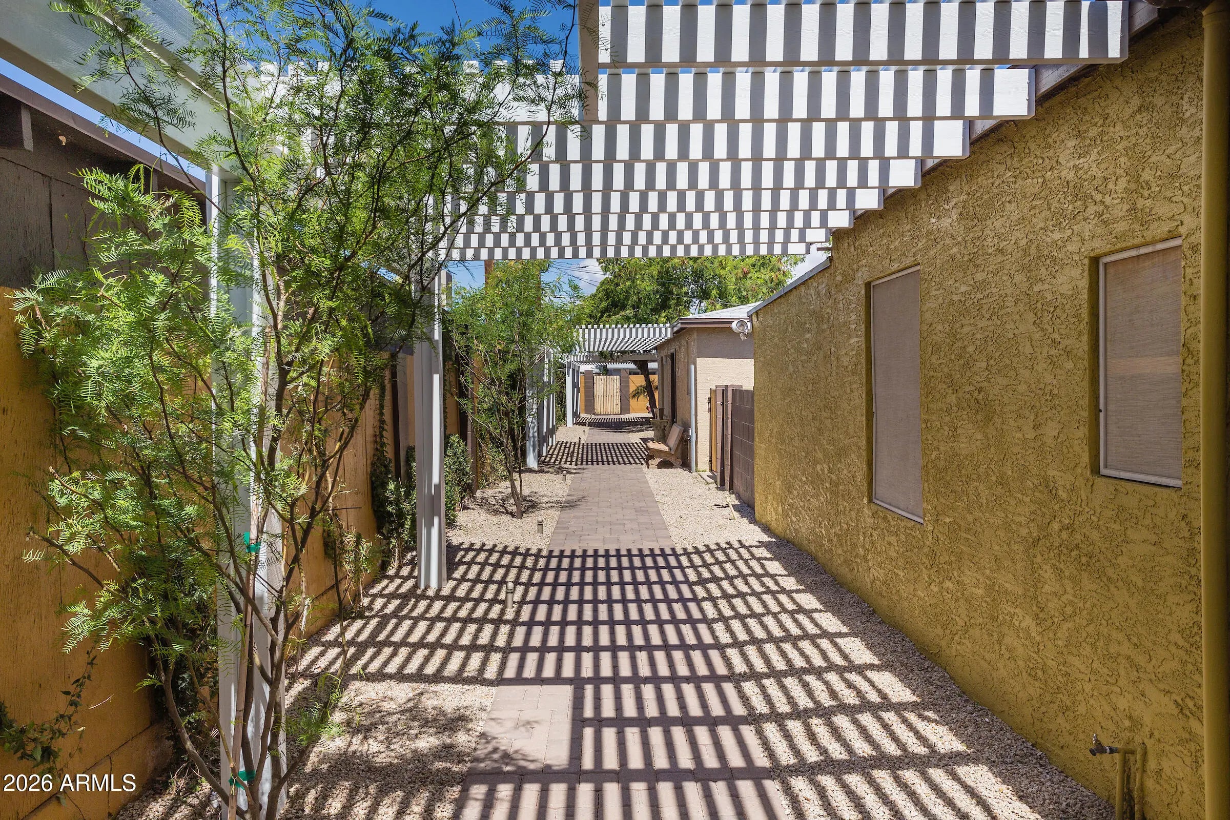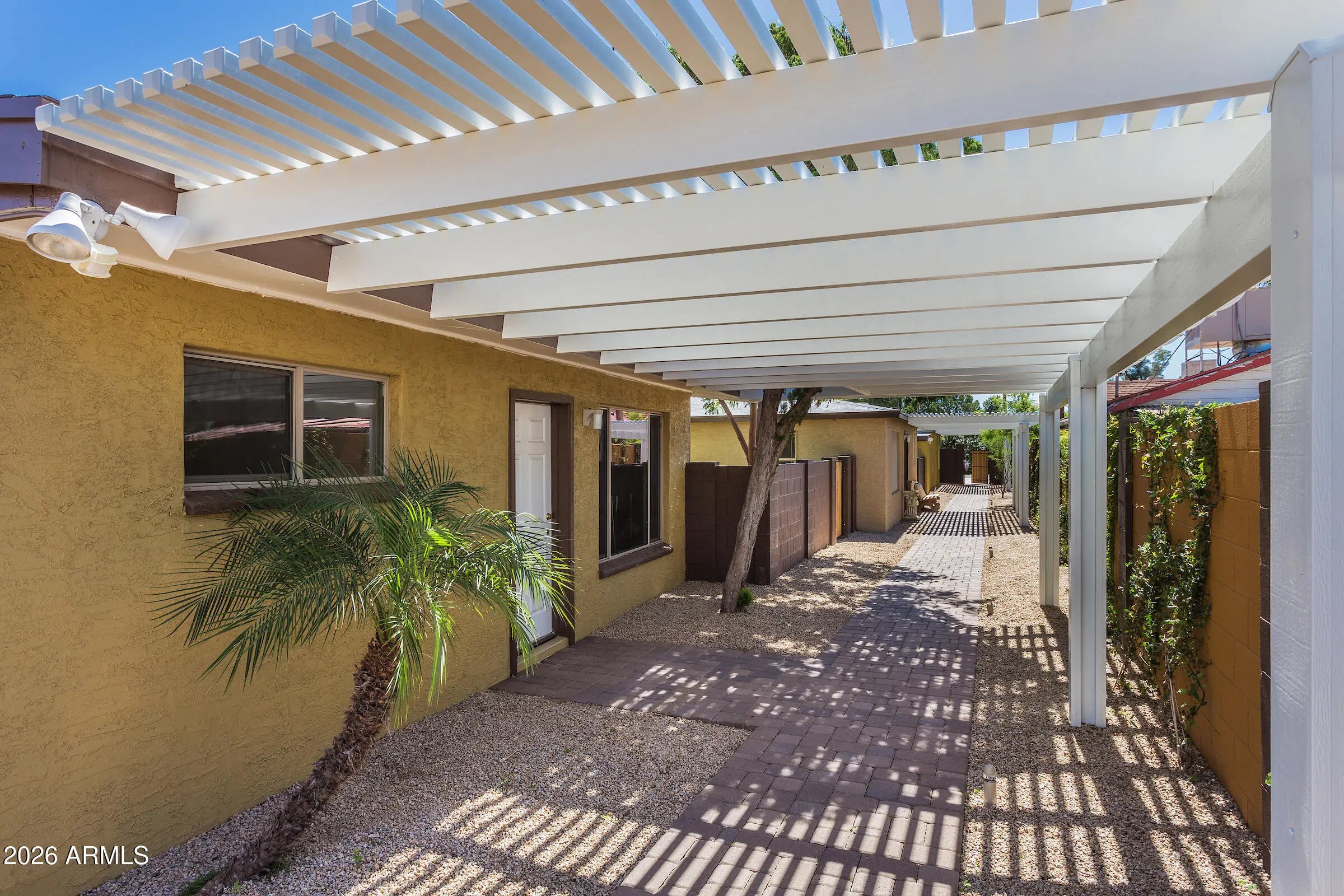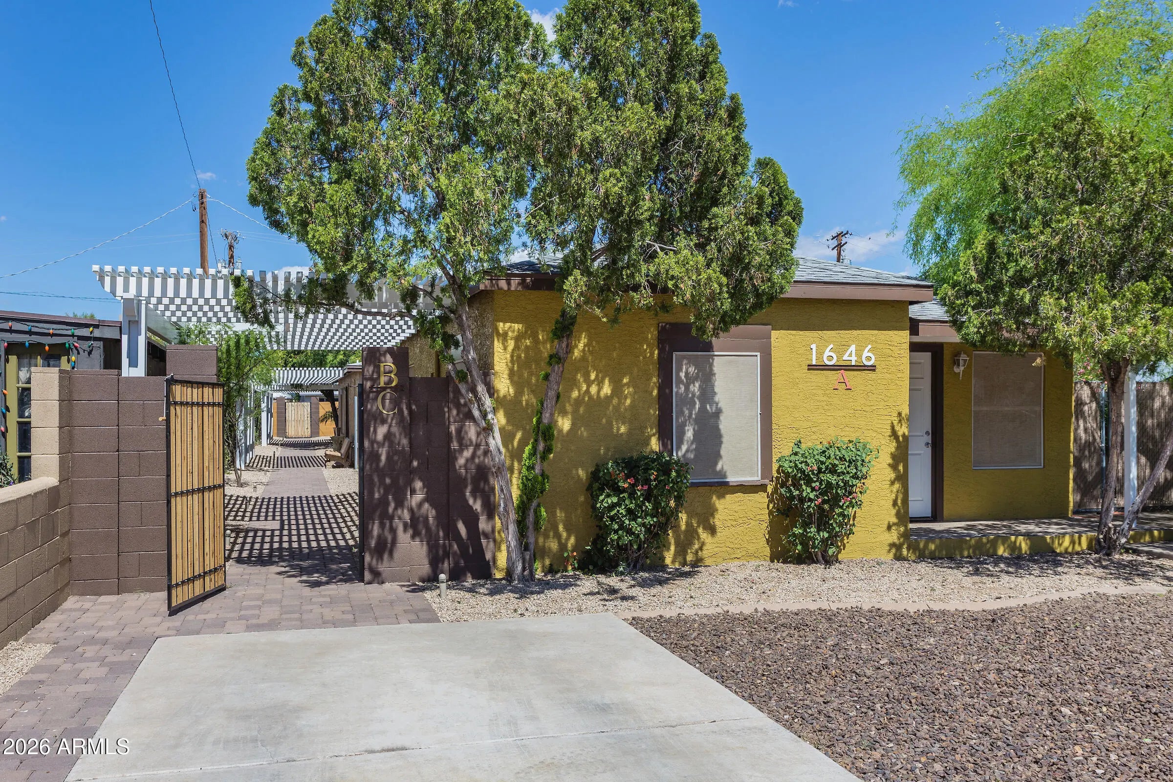 Welcome to Salty Rooster Estates - Unit 1, a beautifully updated residence in a boutique community of just three homes in Central Phoenix. The home features two bedrooms, two bathrooms, plus additional rooms offering flexible space for office, studio, or storage. In addition to the main front door entry, Unit 1 includes a private breezeway, providing a secondary, semi-enclosed area that enhances privacy and functionality. Thoughtfully updated inside and out with updated plumbing and lighting, an updated kitchen with countertops, tile flooring, and refreshed interior finishes. Shared outdoor spaces with shaded pergolas and manicured landscaping create an intimate, oasis-like setting close to shopping, dining, and entertainment.