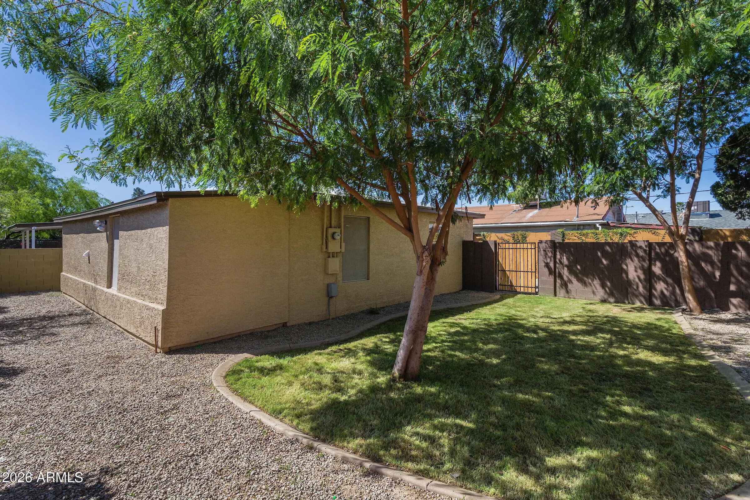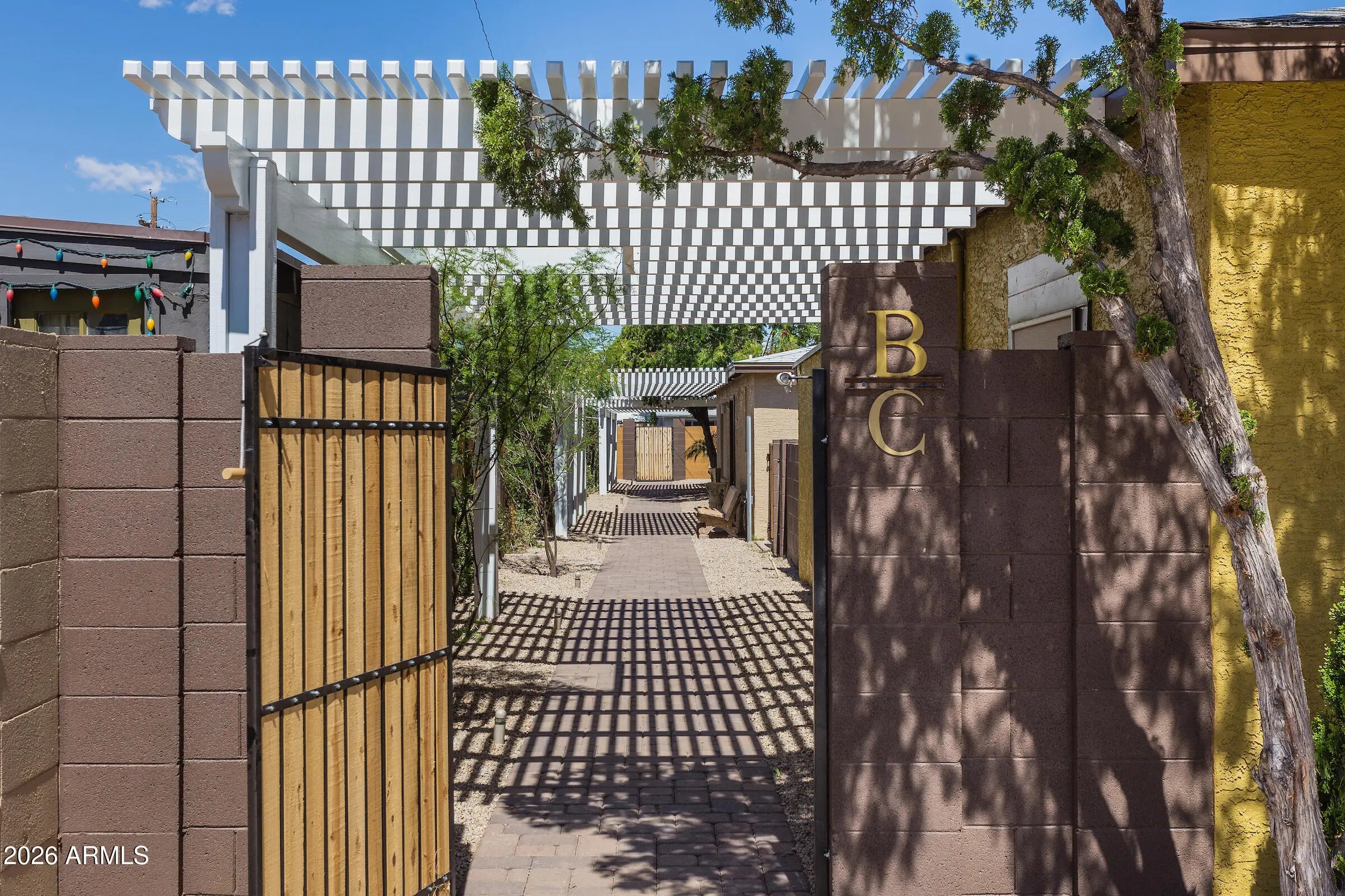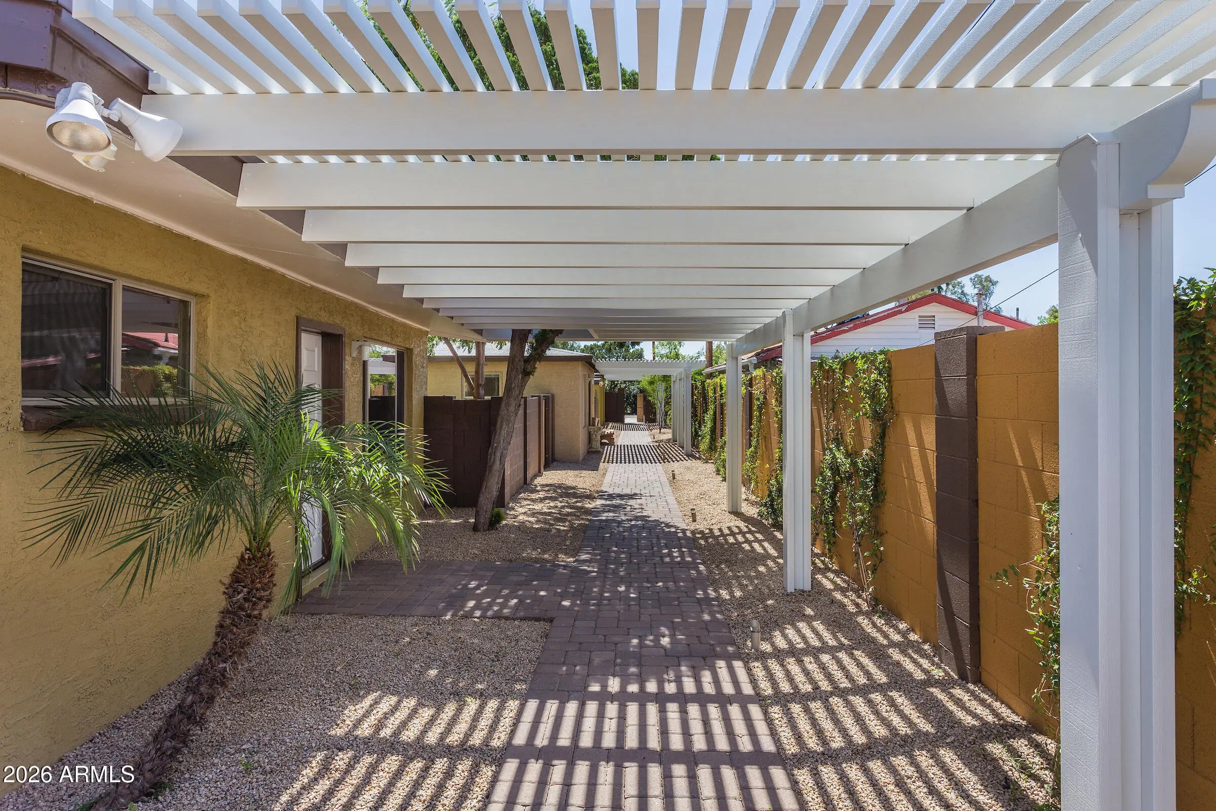 Welcome to Salty Rooster Estates - Unit 1, a beautifully updated residence in a boutique community of just three homes in Central Phoenix. The home features two bedrooms, two bathrooms, plus additional rooms offering flexible space for office, studio, or storage. In addition to the main front door entry, Unit 1 includes a private breezeway, providing a secondary, semi-enclosed area that enhances privacy and functionality. Thoughtfully updated inside and out with updated plumbing and lighting, an updated kitchen with countertops, tile flooring, and refreshed interior finishes. Shared outdoor spaces with shaded pergolas and manicured landscaping create an intimate, oasis-like setting close to shopping, dining, and entertainment.