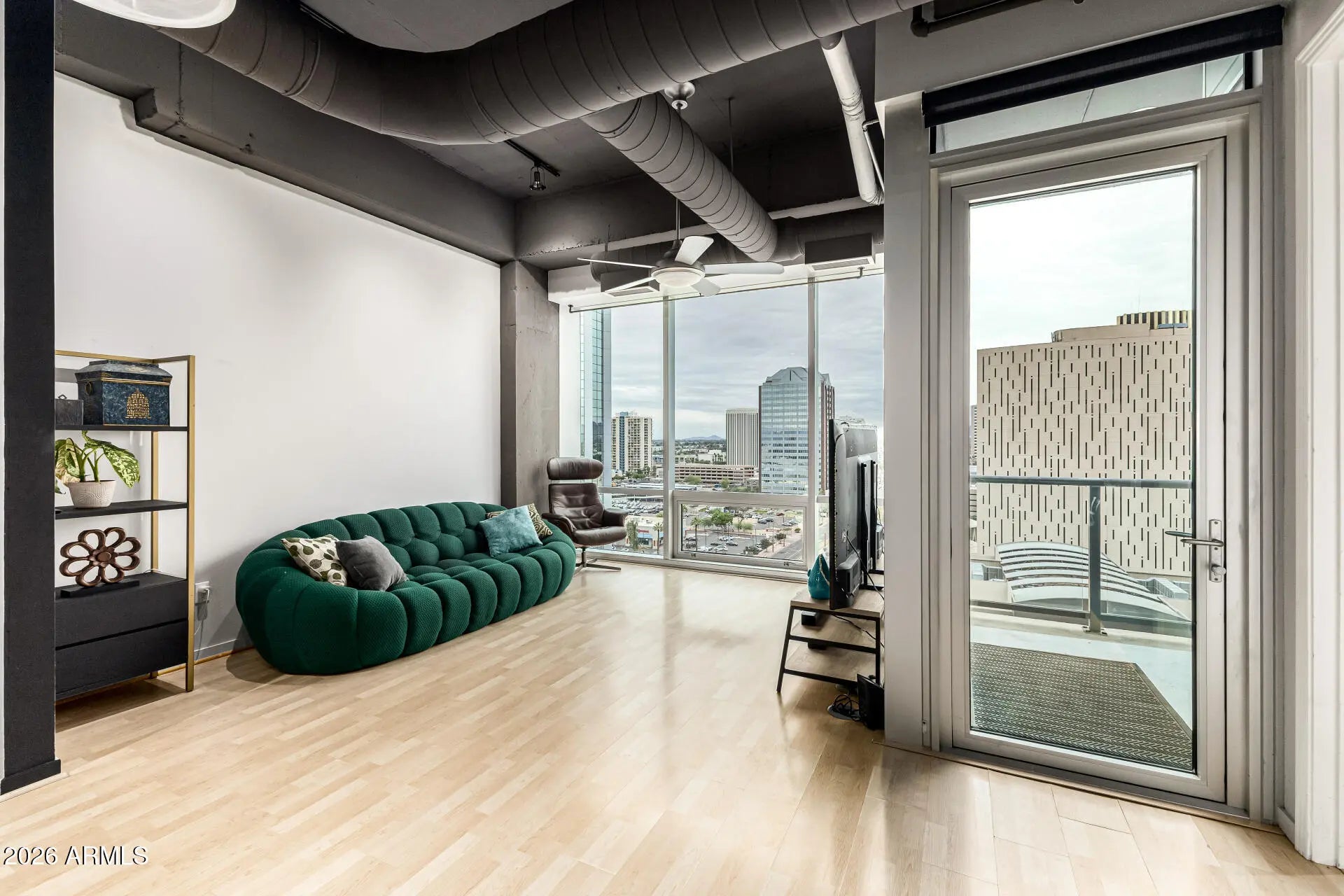 Experience sophisticated high-rise living at ONE LEXINGTON in the heart of Midtown Phoenix. This bright 1-bed, 1-bath residence features expansive floor-to-ceiling windows filling the space with natural light and a private balcony showcasing stunning city and mountain views. This sleek, modern interior boasts granite countertops, stainless steel appliances, and 11'+ concrete loft-style ceilings with exposed ductwork. Enjoy resort-style amenities including 24/7 full concierge, heated saltwater pool and spa, fitness center, club room, dog run/washing station, community BBQs, a fire pit, and secure garage parking with EV charging and storage. HOA includes water, cable, trash, and A/C chiller. Steps from the Light Rail to sporting events, art museums, theaters, downtown dining, Sky Harbor and downtown. Walk to Creighton University and St. Joseph's Medical Center. ONE LEXINGTON offers breathtaking views of the city skyline at its finest!!