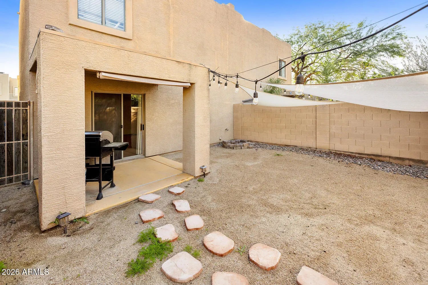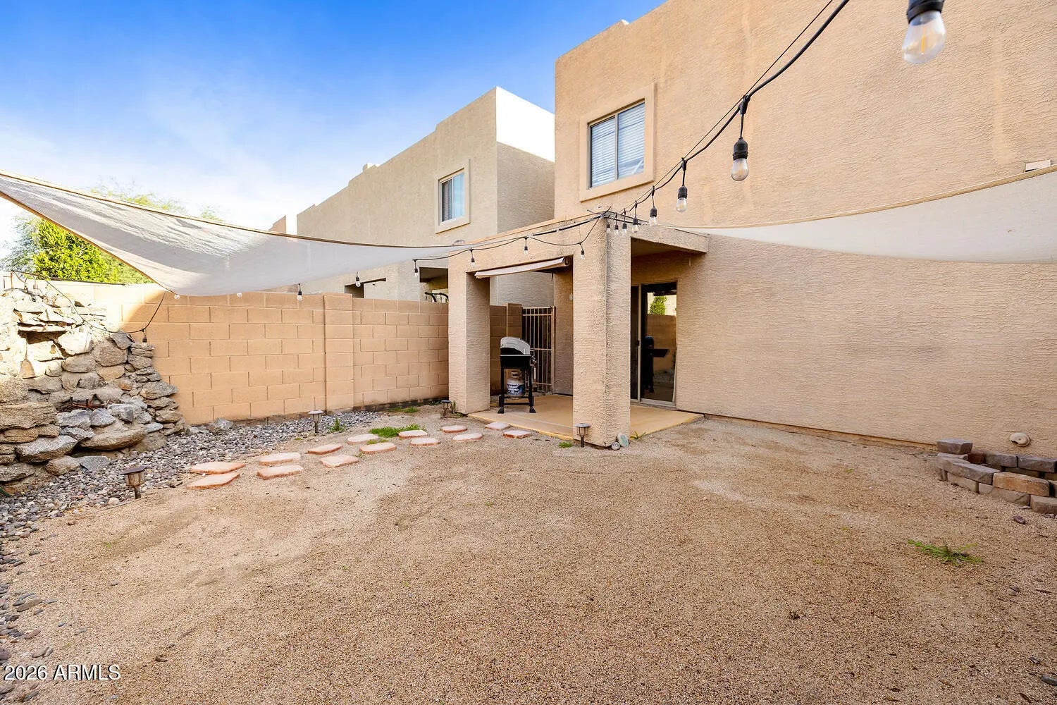 Close to the 51 & the 101 Freeways, restaurants, schools, shopping, Post Office & so much more. Walking distance to Elementary school & Palomino park just east of the community. This spacious 3 bedroom, 2.5 bath home includes a well maintained Kitchen w/granite countertops, stainless steel appliances including a newer refrigerator & dishwasher, Breakfast Bar, open to Great Room updated flooring throughout the downstairs area, Enjoy private low maintenance backyard with covered patio, Water feature(as-is) Plus shade awnings & lights that remain. Upstairs your spacious Owners Suite includes a walk in closet, Full bath with tub/shower, down the hall are bedrooms 2 & 3, hall bath & laundry, Washer & Dryer remain too! Also a 2 car garage too! Stop by today!