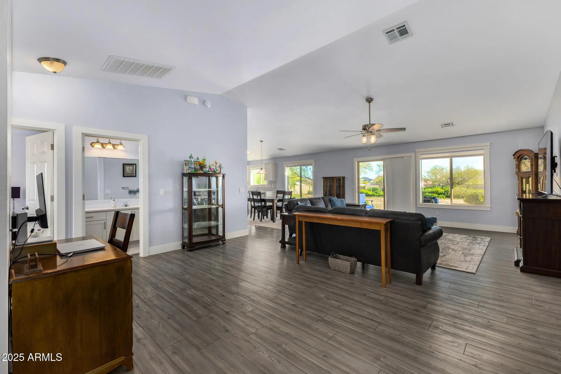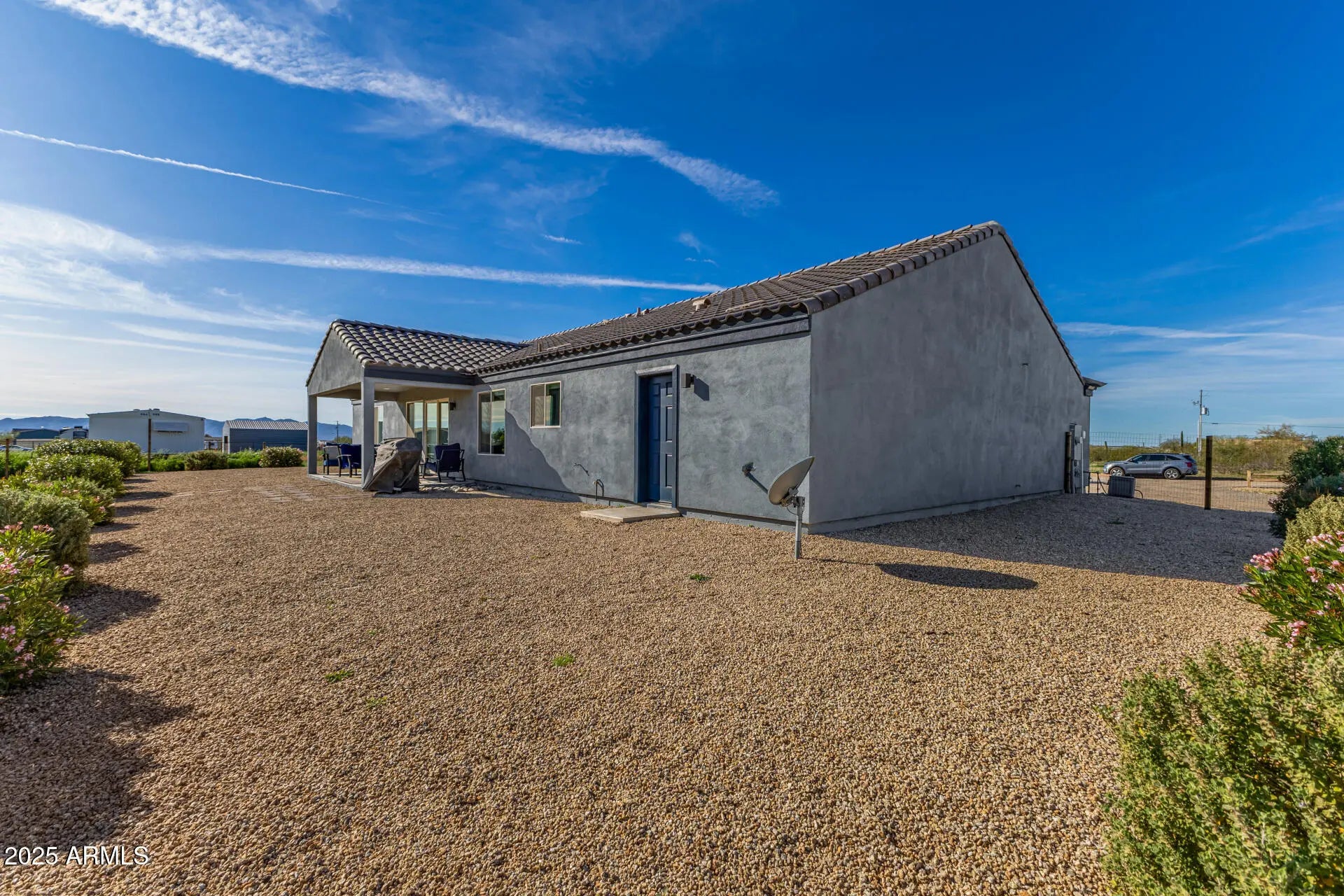 !PRICE REDUCTION! Sweeping desert views, wide open space, and freedom to live the Arizona lifestyle the way you want on your own acre of land! This single-level home offers 3 bedrooms plus a dedicated office, giving you flexibility for working from home, hosting guests, or creating the perfect hobby or fitness space. Vaulted ceilings and abundant natural light create an airy, open feel, while dual-pane windows frame those stunning desert backdrops. The eat-in kitchen is designed for everyday functionality and connection, featuring a center island, walk-in pantry, and a layout that flows effortlessly into the main living areas — ideal for both quiet nights in and entertaining friends. The private primary suite offers a relaxing retreat with dual sinks and generous space to unwind at the end of the day. Let's talk versatility! A 3-car tandem garage, RV gate, and dedicated RV parking provide room for trailers, toys, equipment, or small farm-style use potential. Whether you need storage, workspace, or extra parking, this property delivers options. If you've been waiting for a property that offers views, functionality, and freedom all in one this is it.