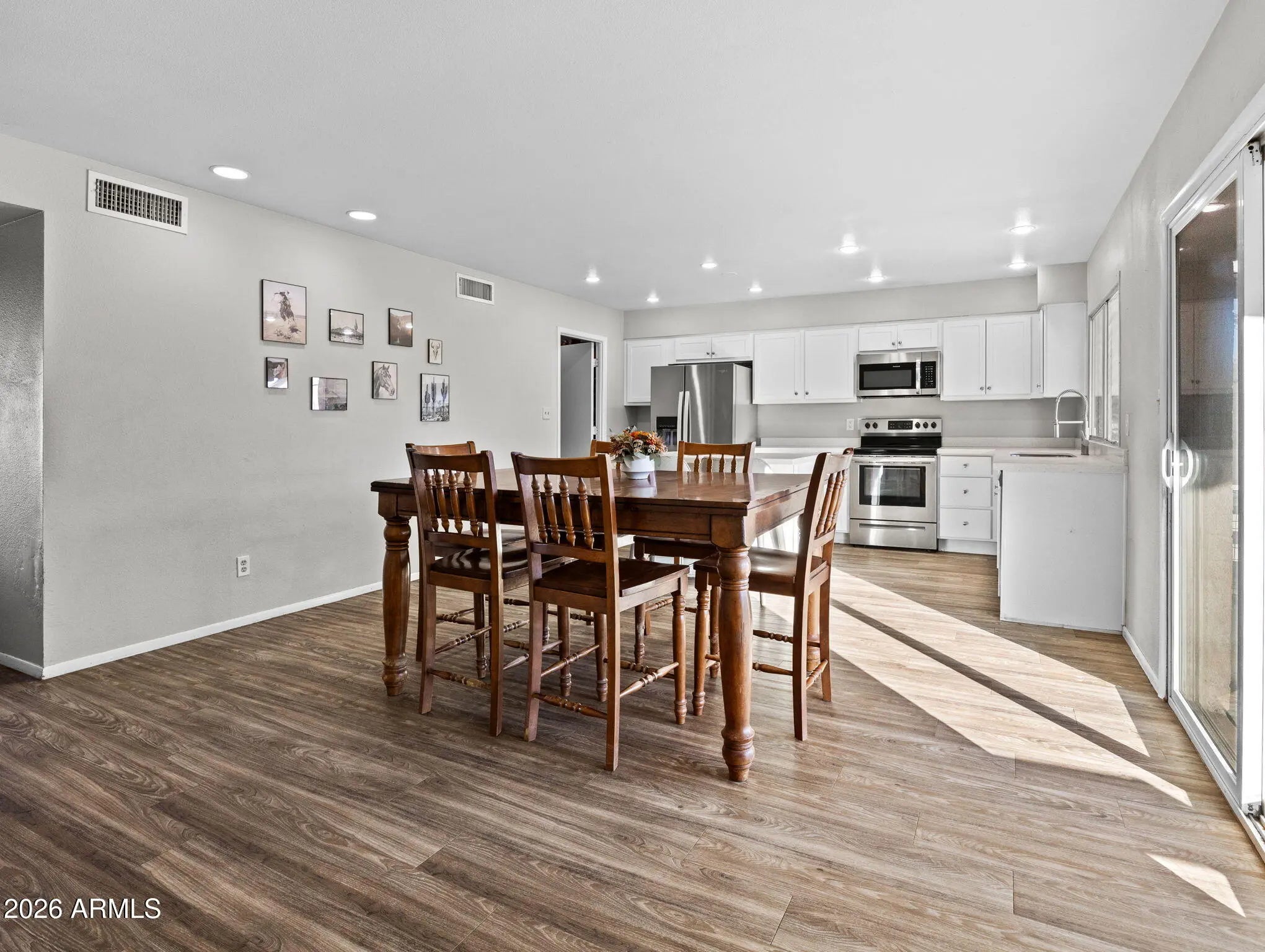 Priced to Sell! No HOA, Beautiful 3 Bedroom, 2 Bath, Single Story Home, Open Kitchen with White Shaker Cabinets, Quartz Countertops, Recessed Lighting, Stainless Steel Appliances, Eat-In Kitchen, Spacious Family Room, Vinyl Wood Plank Flooring, Carpet in Bedrooms, Spacious Master Bedroom, Walk In Closet, 2 Car Garage w/Extra Worksop space, RV Gate access from Backyard, and Large Backyard. Don't miss out on this home!