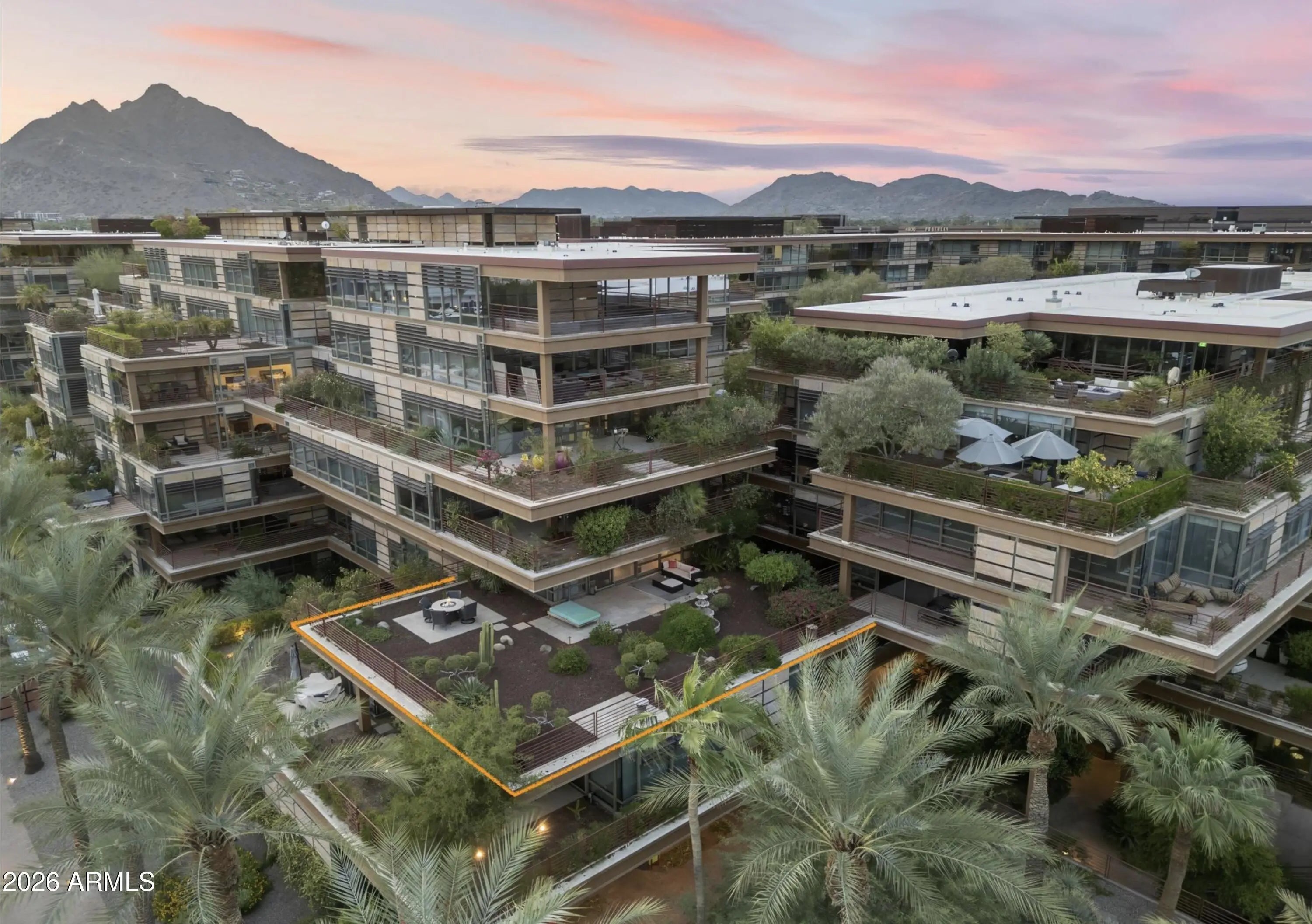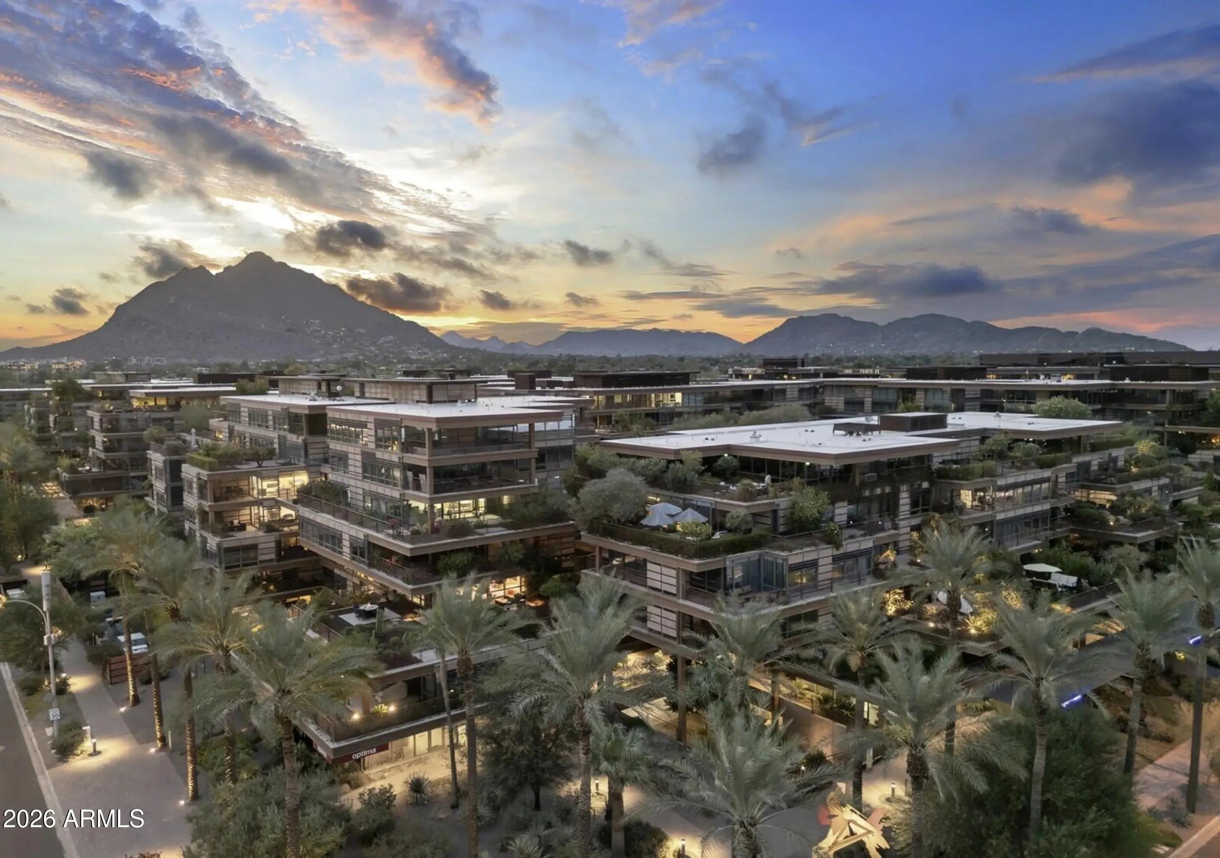 Optima Camelview's Premier Garden Terrace End-Unit Unit 3006. THE BEST BUY at Optima Camelview. This luxurious end-unit residence pairs refined interior finishes with an extended, penthouse-style private garden terrace, one of the largest in the community, capturing unobstructed south/southeast views and a true indoor-outdoor Scottsdale lifestyle. Inside, every detail is thoughtfully curated for sophistication and comfort: sleek white Italian flooring, dramatic triple coffered ceilings, custom cabinetry and fixtures, low-voltage lighting, and a gourmet chef's kitchen designed for both everyday living and effortless entertaining. The primary bathroom is a standout showpiece, delivering spa-level design and craftsmanship. This 3-bedroom home includes 2 parking spaces and a storage unit. Optima Camelview Village is LEED-certified and recognized by the American Institute of Architects as one of the Top 18 Architectural Achievements in Arizona. Residents enjoy a tranquil botanical setting with lush greenery and calming water features, along with exceptional amenities: two outdoor pools, an indoor lap pool, spas, steam rooms and saunas, indoor basketball and racquetball courts, putting green, pickleball, a state-of-the-art fitness center, and full-time concierge services. Perfectly positioned in central Scottsdale, you'll be just a short stroll from Scottsdale Fashion Square, top-tier restaurants and upscale shopping, and within easy reach of the airport. Or take your time exploring the charm and energy of Old Town Scottsdale. Experience Unit 3006 in person, walk the expansive private garden terrace, take in the panoramic views, and feel the elevated Optima lifestyle firsthand.