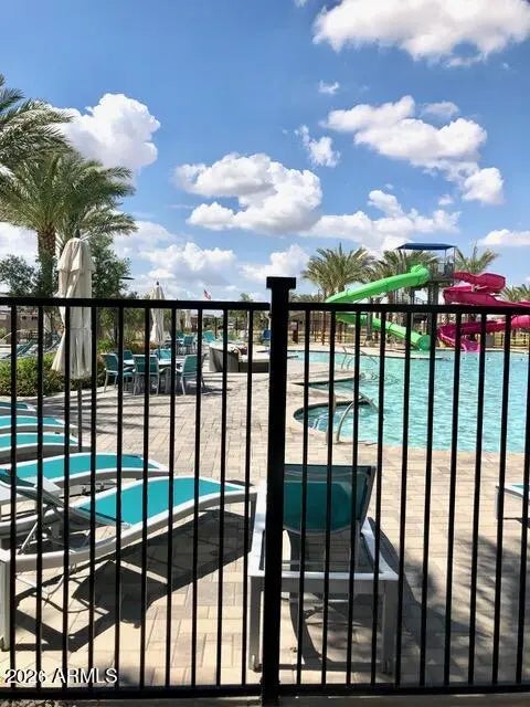 LOCATION, LOCATION, LOCATION!! Don't miss out on this great home in the ''A'' rated Queen Creek school district. Located close to elementary, middle and high school. Split floor plan with many upgrades. Newer refrigerator included, as well as washer/dryer. Vinyl plank flooring in open areas and carpet in bedrooms. Open kitchen and great room for many options. Upgraded kitchen cabinets, quartz countertops and large island. Low maintenance yard with artificial grass. Built-in garage cabinets for ease of storage. Cadence community offers clubhouse, pools, water slides, fitness center, sport courts, playgrounds, trails, and dog park.
