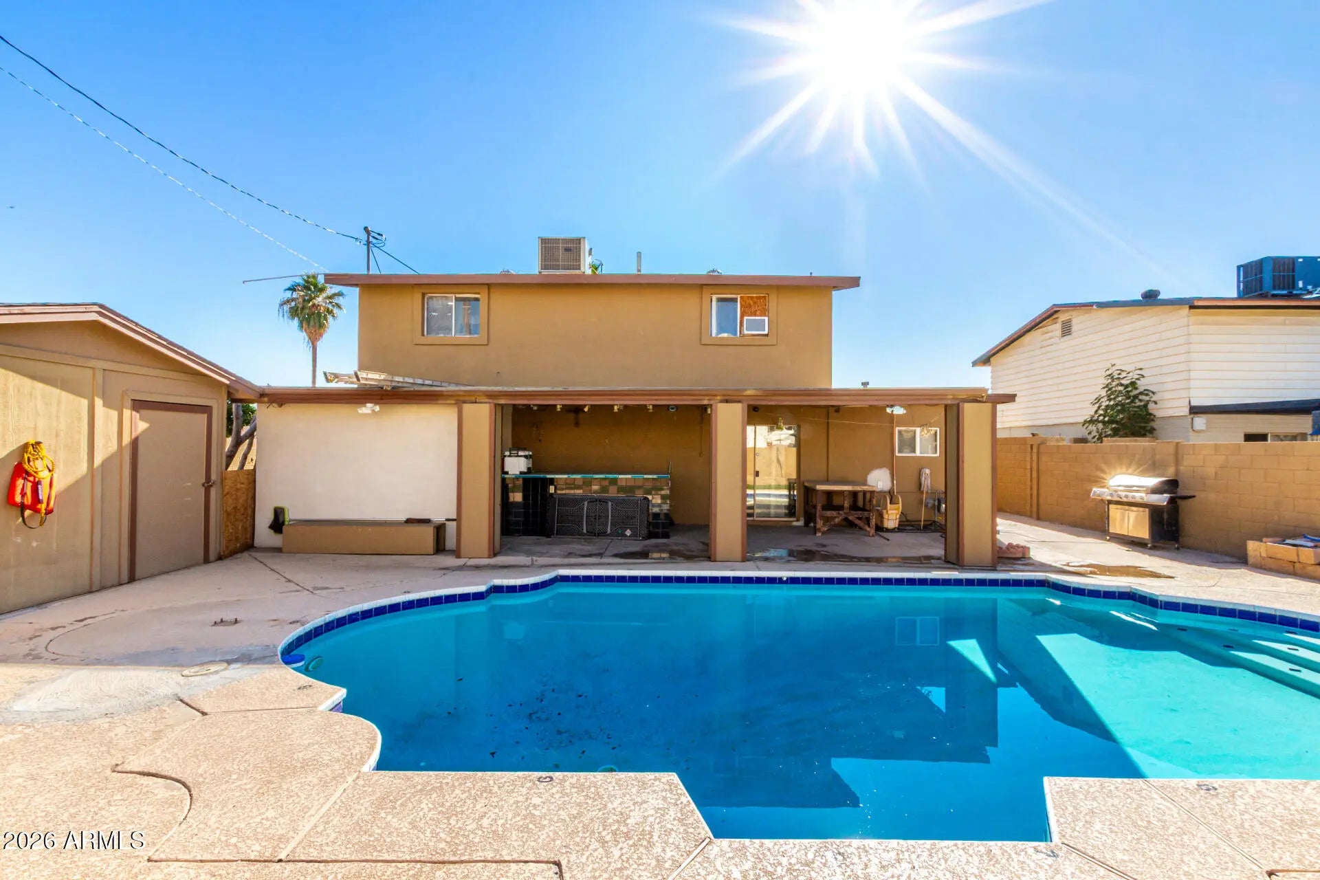 Welcome to this spacious 5-bedroom, 2-bathroom home offering 1,785 sq ft of living space—perfect for a growing family or first-time homebuyer. The seller has upgraded the home into a smart home, featuring smart switches throughout. The first floor has been thoughtfully updated, including the kitchen, primary bedroom, and primary bathroom. Step outside to a private backyard with a sparkling pool and built-in BBQ, ideal for entertaining and enjoying Arizona living. No HOA, providing added flexibility with no restrictions. Seller is offering buyer concessions .
