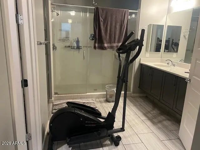 Play-Swim.Welcome to this beautifully upgraded 3-bedroom plus den, 3-bath home in the desirable Barney Farms lake community of Queen Cree. Designed with both style and function in mind, this home features wood-plank style tile flooring throughout and quartz countertops that elevate every space. The kitchen is a standout with upgraded appliances, floating cabinetry, and a large island ideal for gathering, prep, or casual dining. The open living area flows seamlessly to the outdoors through double sliding patio doors, creating an inviting indoor-outdoor feel. Retreat to the spa-like primary bathroom, complete with a large walk-in shower featuring three shower heads and modern floating cabinets. Additional bathrooms continue the sleek, contemporary design. 3-car garage provides ample storage.