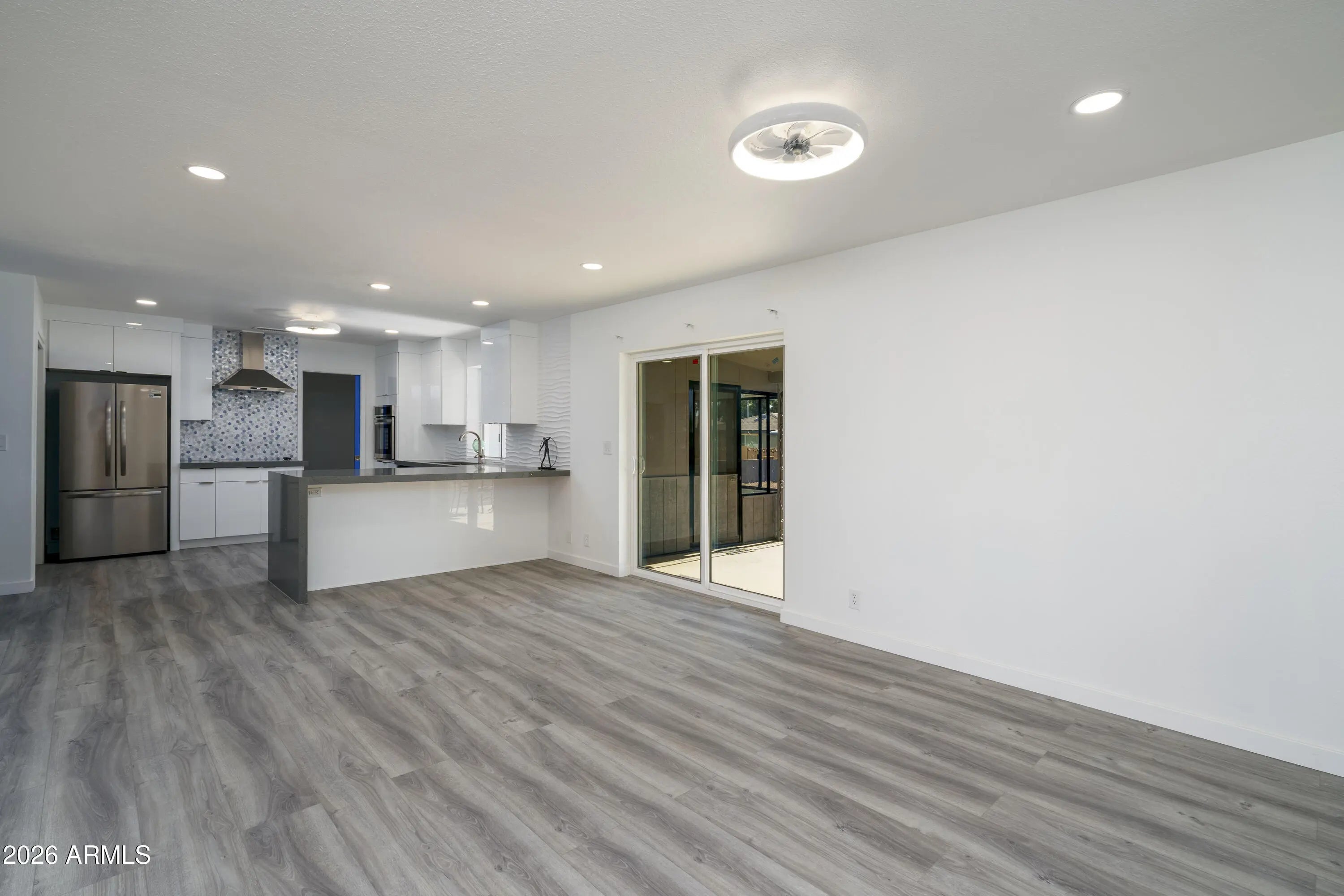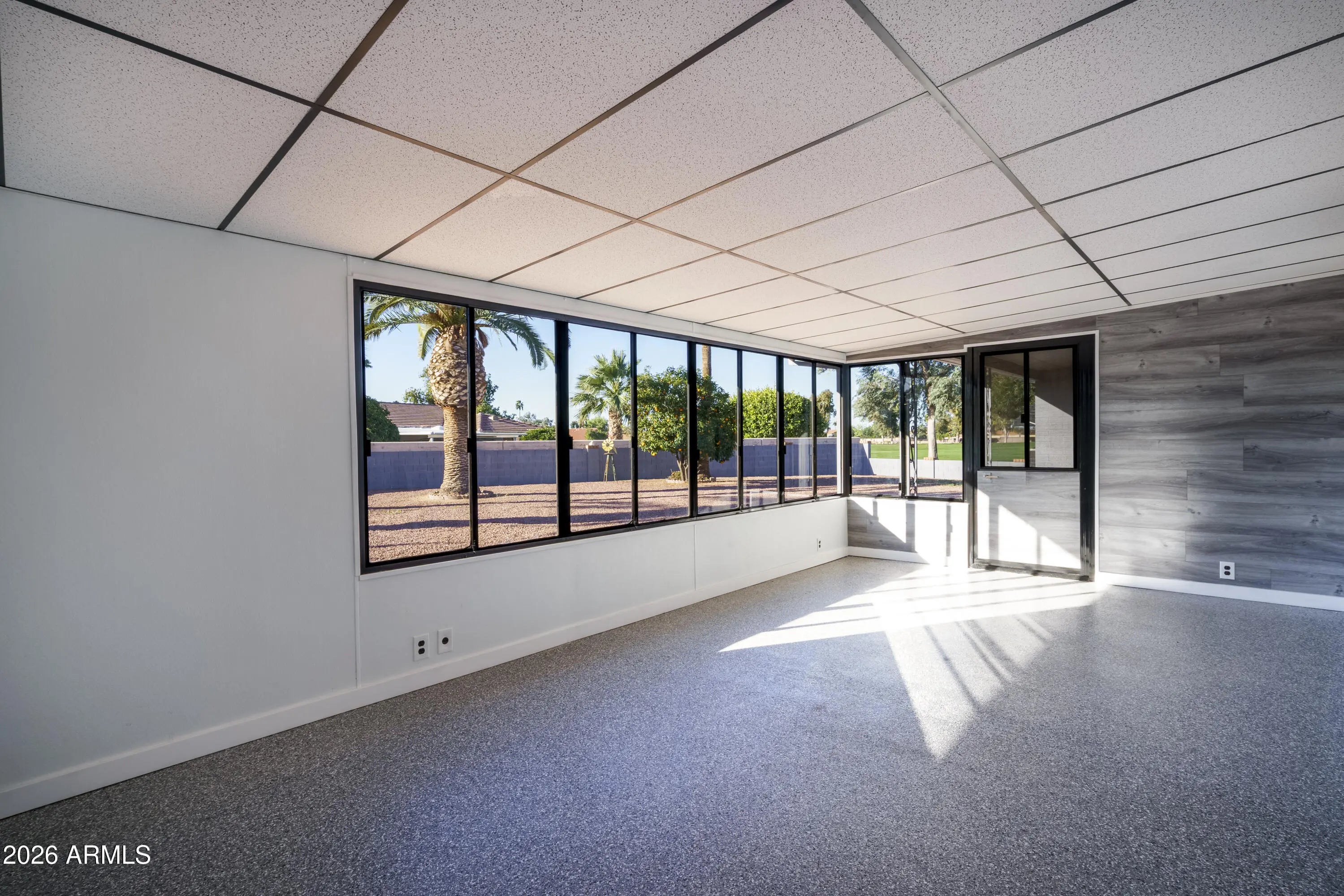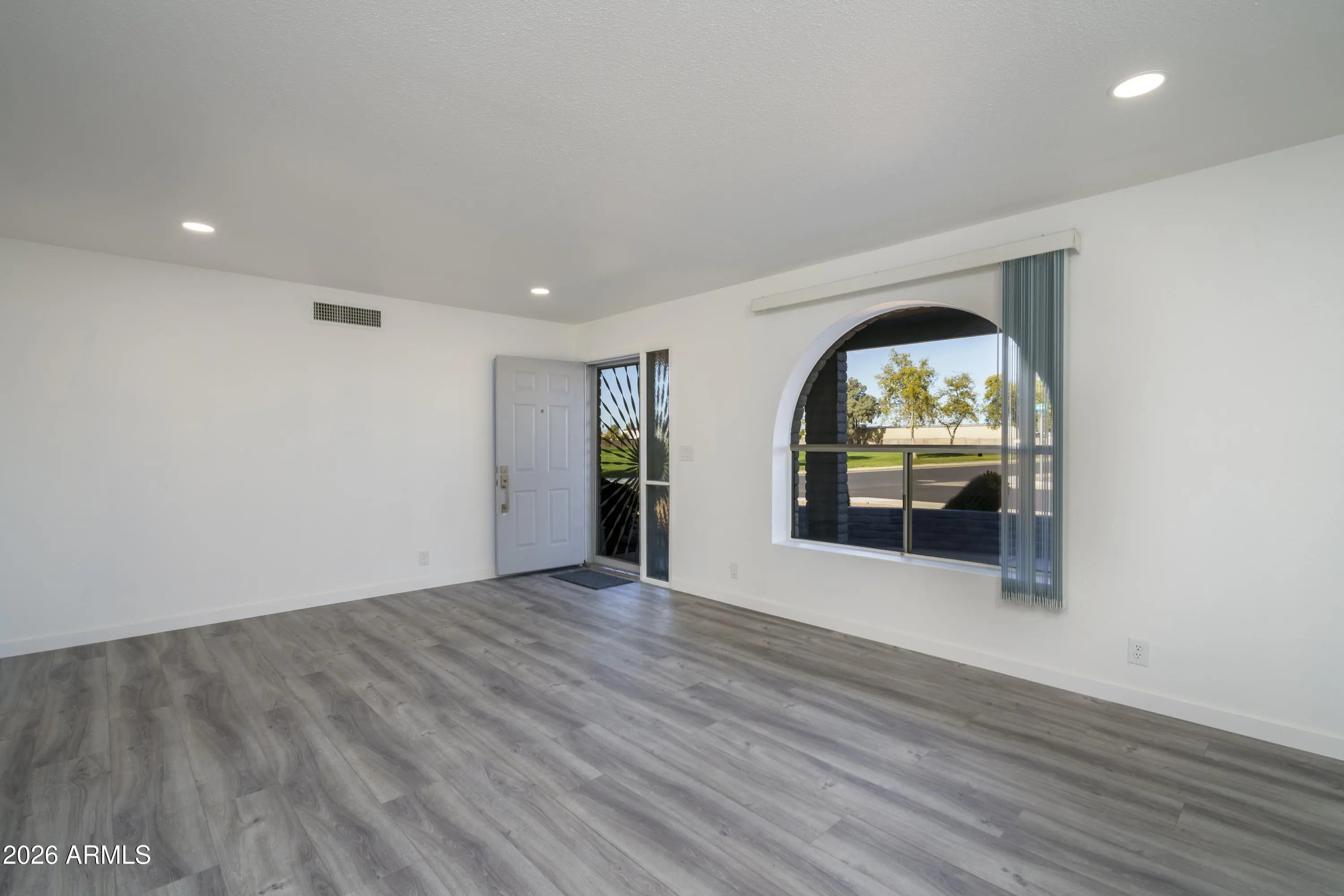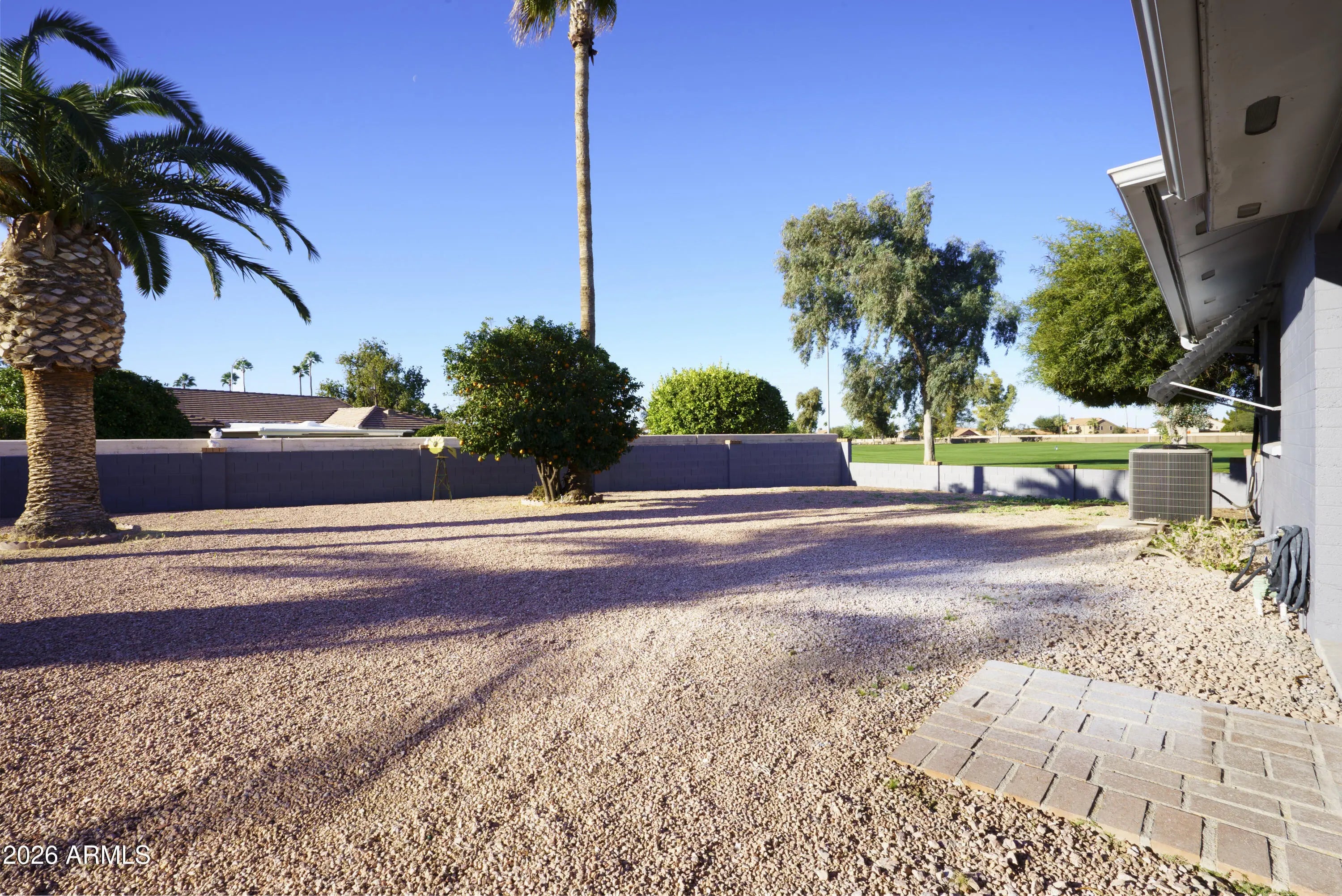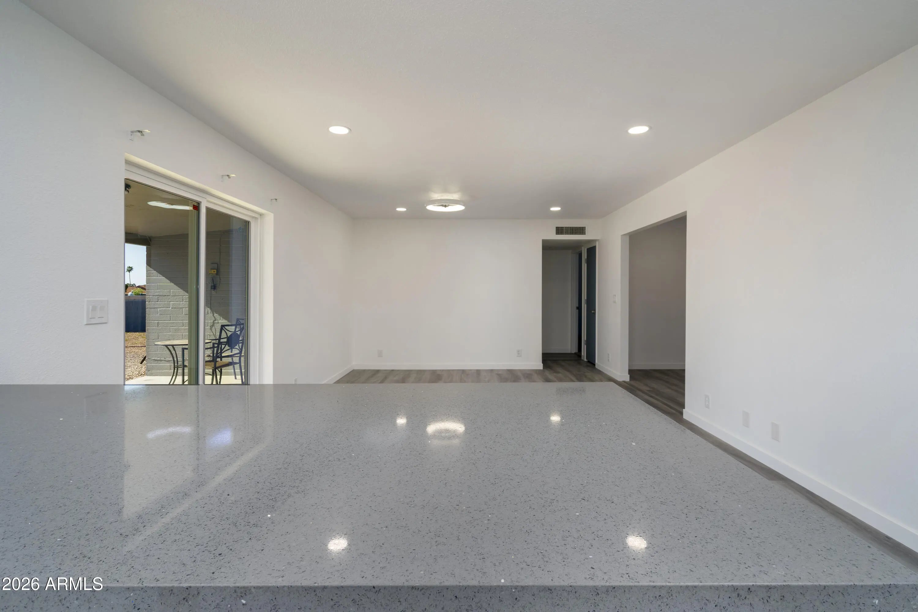 FULLY REMODELED & MOVE-IN READY SHOWSTOPPER! Major upgrades already done for you: newer roof (2019), newer A/C (2019), and fresh interior & exterior paint (2025). This home has been COMPLETELY transformed in 2025—from flooring and baseboards to recessed lighting, ceiling fans, and even updated hot/cold water supply lines...no detail overlooked! Step inside to a bright, inviting front living room with a north-facing window and soft neutral tones that instantly feel like home. The layout flows effortlessly into the spacious family room and designer kitchen—perfect for entertaining. A brand-new sliding door opens to the covered patio, blending indoor and outdoor living. The kitchen steals the spotlight with quartz countertops, sleek European-style soft-close drawers and cabinets. Both bathrooms updated with new toilets/vanities/showers/flooring/paint. Large back yard facing south/southwest towards the golf course driving range...open and peaceful, enjoy activity during the day, glass of wine and sunsets in the evening. Large garage, built-in cabinets, golf cart storage area. Pull into the driveway, unpack, relax and start enjoying the incredible state of Arizona!