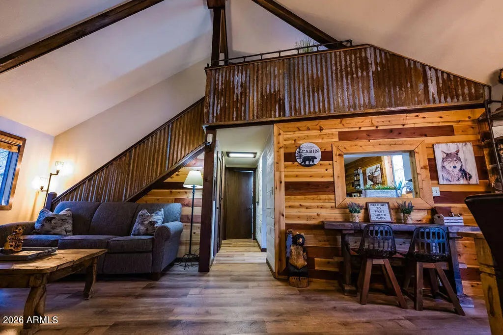Charming cabin retreat in the secluded Beaver Valley Estates community of Payson, with the East Verde River flowing through the neighborhood. This 2-bedroom, 1-bath home features an upstairs loft, rustic yet modern design, and was renovated in 2020 and a new roof in 2024. Well maintained and currently a successful VRBO vacation rental, offering excellent income potential. Enjoy peaceful surroundings, a relaxing deck, and close proximity to Payson's shopping, dining, and outdoor recreation. A rare opportunity for a private getaway or investment property. One of the owners is a licensed real estate agent in the state of Arizona. Furniture is negotiable.