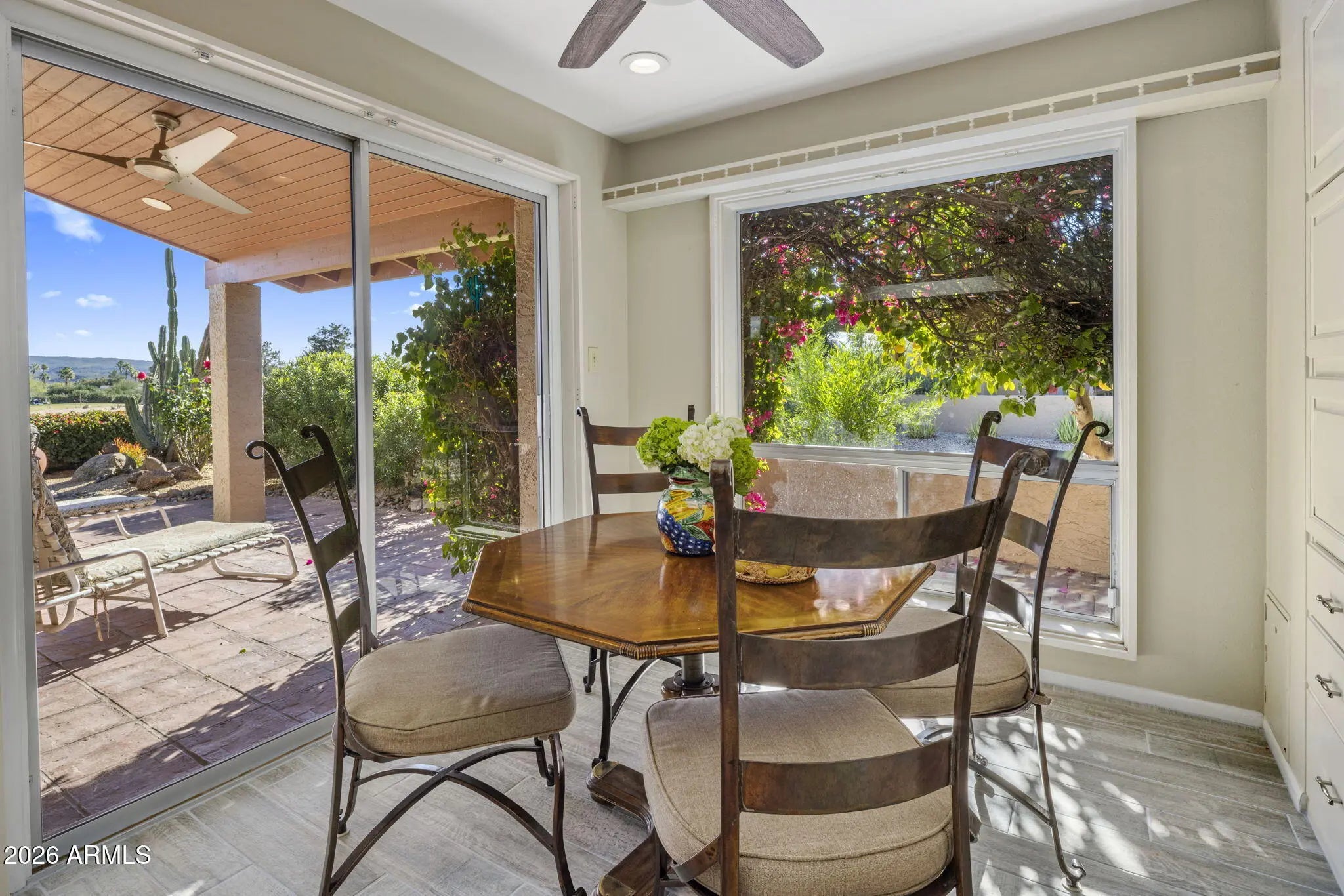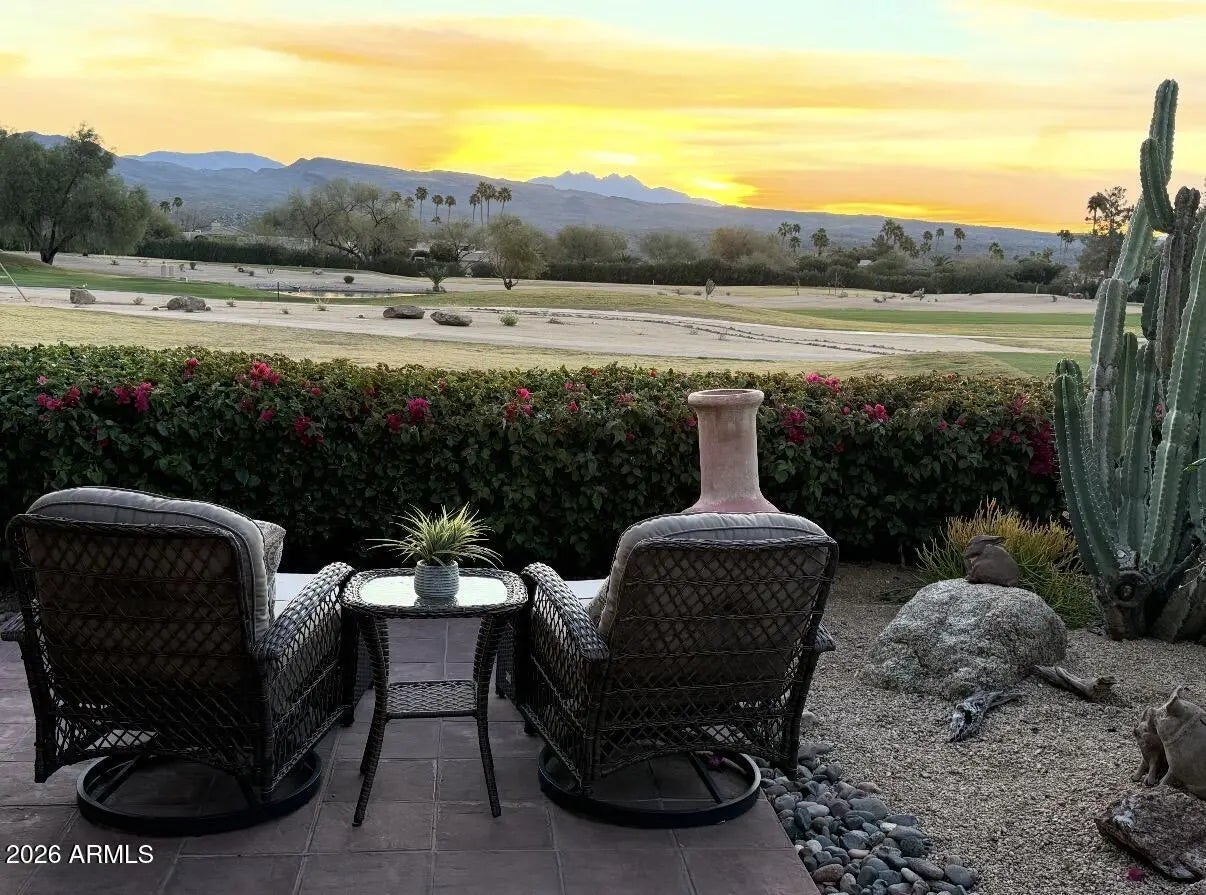 SPECTACULAR FOUR PEAKS VIEWS • PREMIER GOLF COURSE FRONTAGE • EAST-FACING BACKYARD Wake up to sweeping Four Peaks and mountain views in this premier golf course retreat, perfectly situated on the 18th hole of the Quail Course. The coveted east-facing backyard offers ideal morning sun and cool afternoon shade, creating the perfect setting to relax or entertain. Enjoy a spacious patio with built-in hot tub overlooking the fairway and serene desert landscape. Inside, nearly 1,900 sq ft of light-filled living space features 2 spacious bedrooms, 2 baths, and a dedicated office with custom built-ins, desk, and wet bar. A beautiful kitchen anchors the home with ample counter space and an open layout ideal for everyday living and entertaining. Come enjoy all that Rio Verde has to Offer!