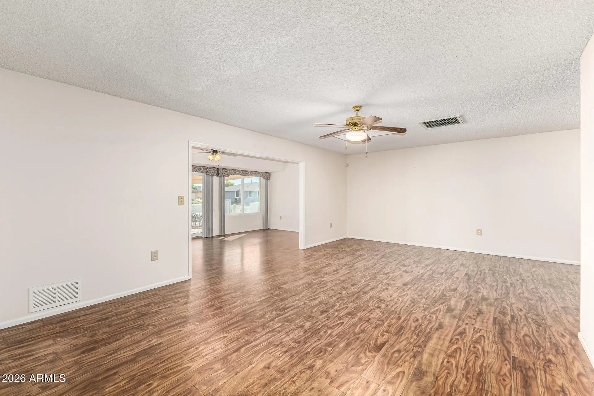 Welcome to relaxed desert living in the heart of Sun City, one of Arizona's most established 55+ communities. This well-maintained home offers a comfortable layout designed for easy living and everyday enjoyment. Natural light fills the main living spaces, creating an inviting atmosphere ideal for quiet mornings or entertaining guests.The kitchen features ample cabinetry, built-in appliances, and a casual dining area perfect for daily routines. The primary suite provides a peaceful retreat with generous closet space and a private bath with a walk-in shower. Step out to a covered patio and enjoy Arizona's sunshine in a low-maintenance outdoor setting. You'll enjoy access to rec centers, golf courses, pools, fitness facilities, and countless social clubs in this golf-cart-friendly community