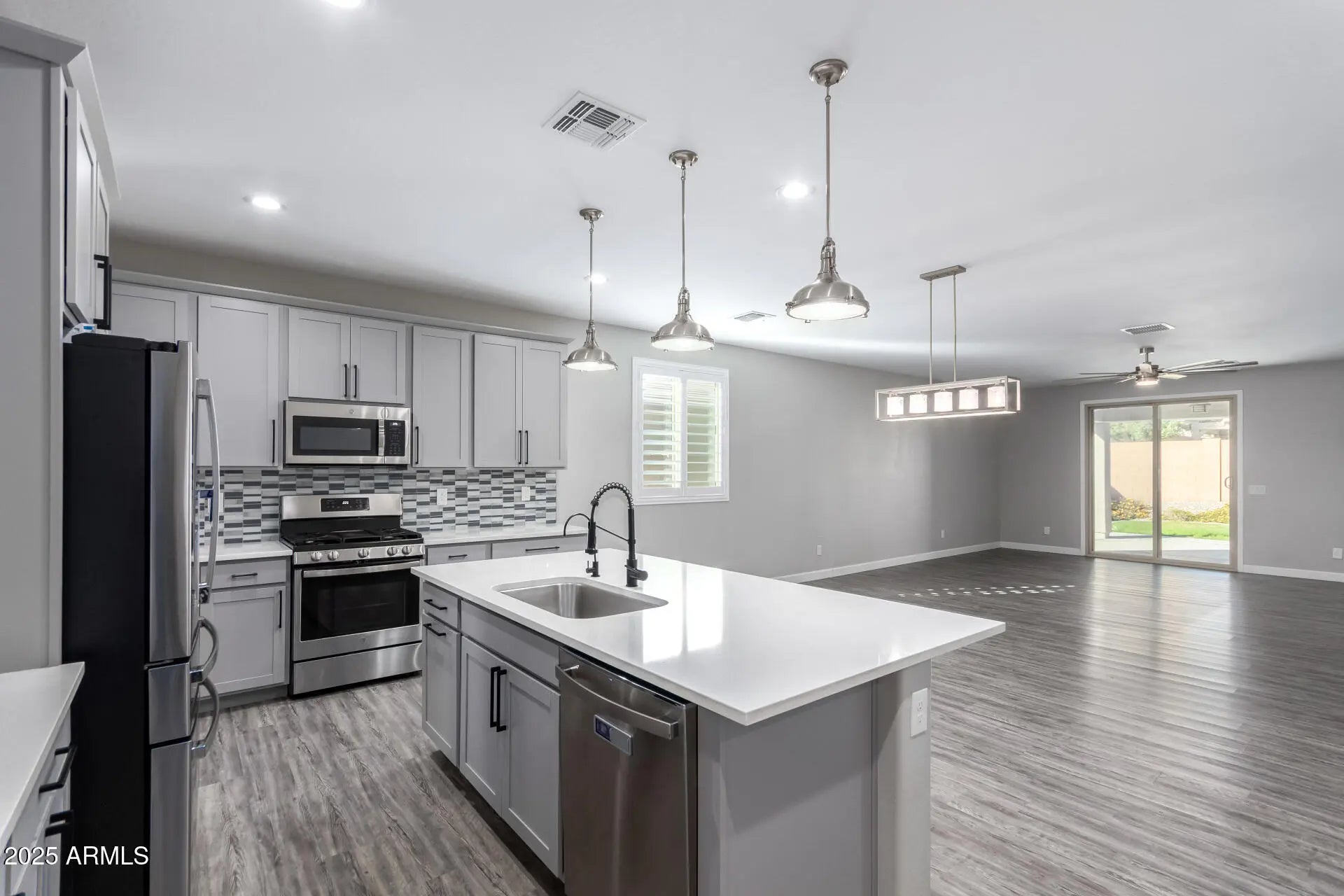 Discover this beautifully designed home offering the perfect blend of comfort, space, and everyday functionality. Featuring 4 bedrooms, 2 bathrooms, and 2,380 square feet of living space, this thoughtfully laid-out residence provides room to grow, gather, and relax. The heart of the home is the open-concept kitchen and living area, ideal for entertaining or unwinding after a long day. The kitchen offers generous counter space, ample cabinetry, and a layout that keeps everyone connected. Natural light fills the main living spaces, creating a warm and welcoming atmosphere throughout. The backyard offers a clean, low-maintenance design with a spacious grassy area, attractive landscaping, and a large patio perfect for outdoor living and entertaining.