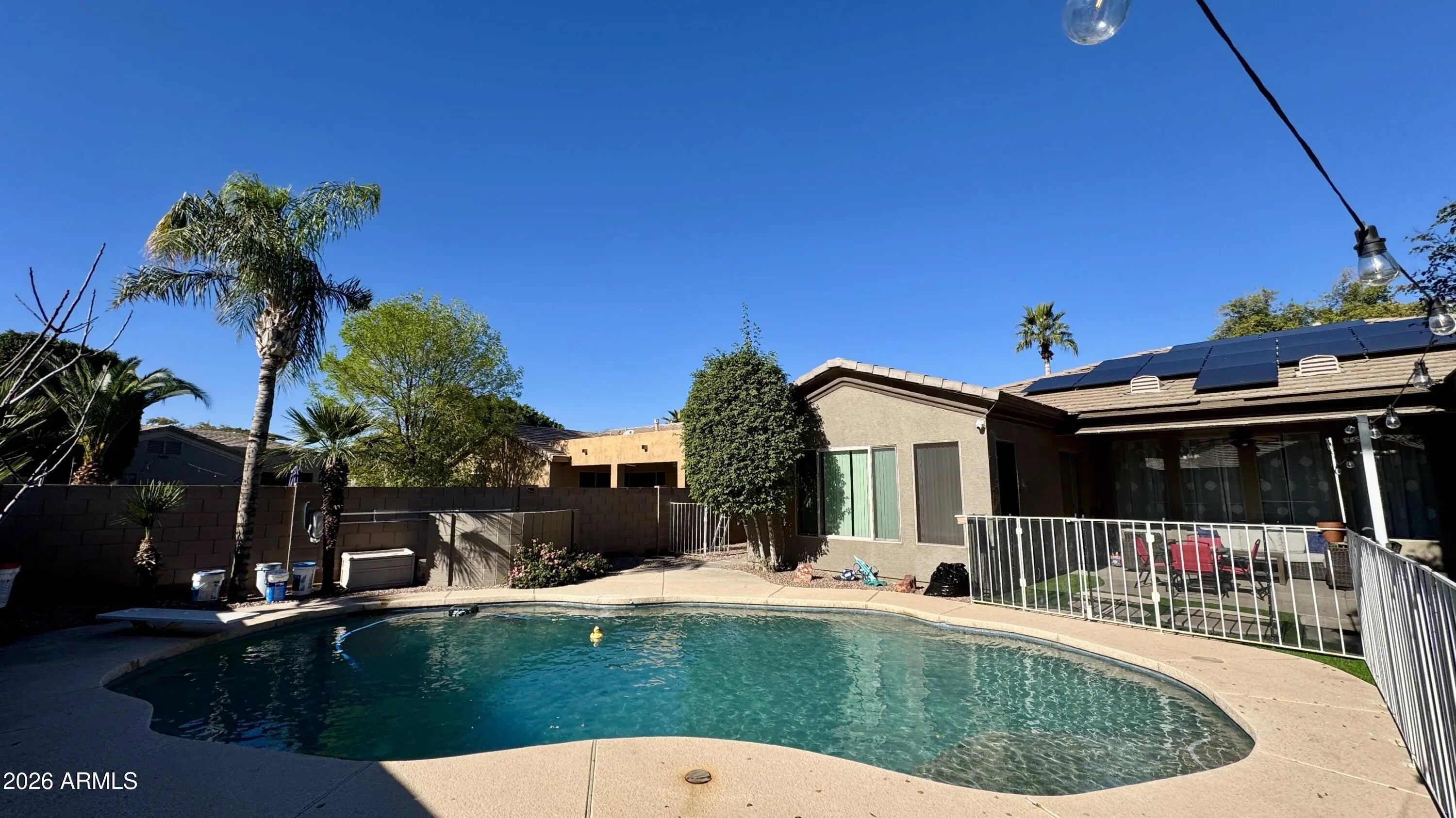 Gorgeous 5-bedroom, 3-bath home situated in one of the most desirable neighborhoods. This spacious property offers formal living and dining rooms, 10-foot ceilings, granite countertops, 42'' solid wood cabinets, stainless-steel appliances, and thoughtfully upgraded finishes throughout. The custom bathrooms feature marble mosaic and ceramic tile with upgraded fixtures, faucets, and lighting. The home includes custom tile flooring through out the house, carpet in bedrooms, dual-panel Low-E windows, a newer A/C system with all new ductwork, new water heater, disposal, water softener throughout the house & RO system Energy-efficient solar panels provide added savings. Additional highlights include a 3-car garage with fully insulated doors, walls, and ceiling, newer roof underlayment. Beautiful semi-custom 5-bedroom, 3-bath home situated in one of the most desirable neighborhoods. This spacious property offers formal living and dining rooms, 10-foot ceilings, granite countertops, 42" solid wood cabinets, stainless-steel appliances, and thoughtfully upgraded finishes throughout. The custom bathrooms feature marble mosaic and ceramic tile with upgraded fixtures, faucets, and lighting. The home includes custom tile flooring through out the house, carpet in bedrooms, dual-pane Low-E windows, a newer A/C system with all new ductwork, new water heater, disposal, and water softener and RO system Energy-efficient solar panels provide added savings. Additional highlights include a 3-car garage with fully insulated doors, walls, and ceiling, newer roof underlayment at the front and rear, and abundant storage. The backyard is designed for enjoyment with a large custom diving pool, newer Pentair pump and filter, RV gate, extra driveway slabs, and a full PVC irrigation system with new timer and valves. Pool service, mature landscaping, and pest control are maintained by the landlord, ensuring easy maintenance living. Conveniently located within walking distance to highly rated schools, parks, and greenbelts, this exceptional home offers comfort, efficiency, and location.