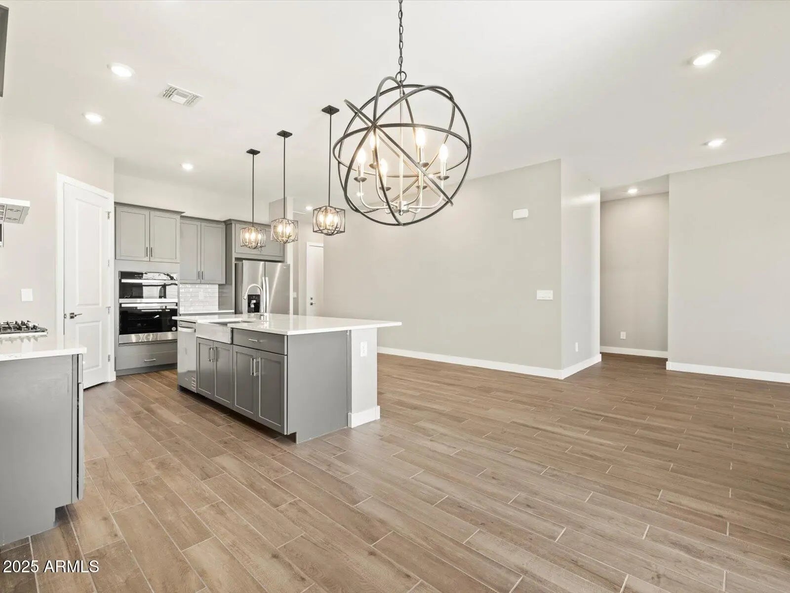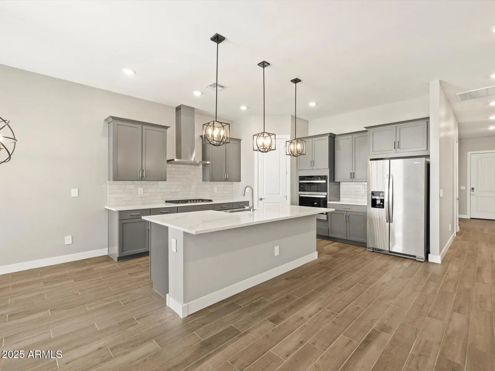 The Arlo boasts a thoughtfully designed single-story layout with 4 spacious bedrooms, 2.5 modern bathrooms. Its open floorplan seamlessly connects the living, dining, and kitchen areas—ideal for entertaining guests or enjoying everyday moments with family. Whether you're hosting a gathering or savoring a quiet evening in, The Arlo offers the perfect blend of style, space, and functionality. This home has a GOURMET kitchen with a cooktop and separate wall oven, Boulder cabinets, quartz kitchen counter, tile backsplash, gray/brown wood-look tile floor, and carpet in the bedrooms! INCLUDED-washer, dryer, window blinds, refrigerator and MORE! EXCLUSIVE community amenities right at your doorstep! Built with innovative, energy-efficient features!