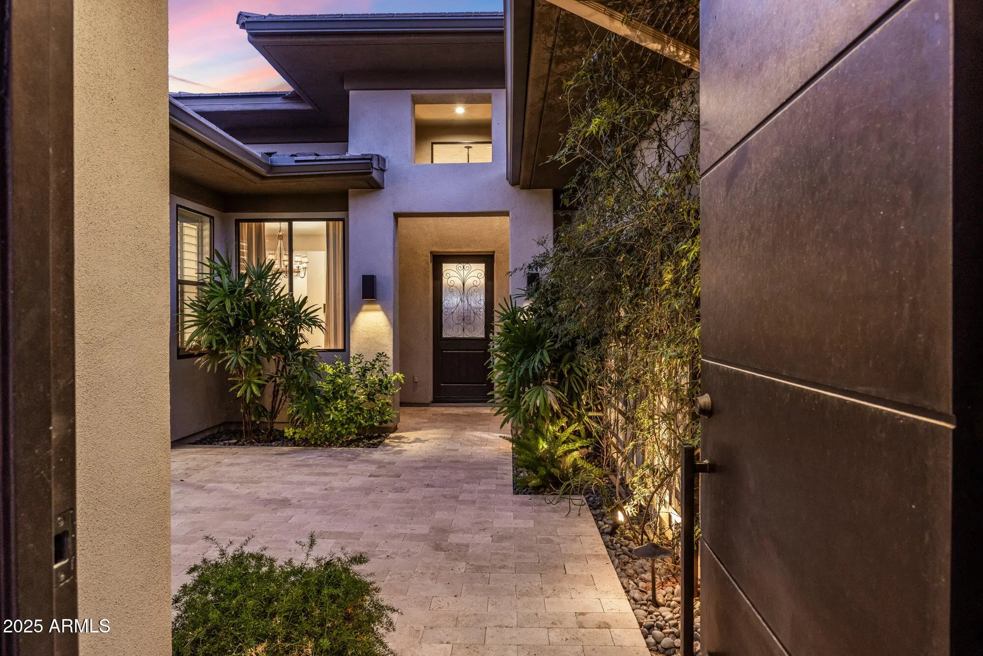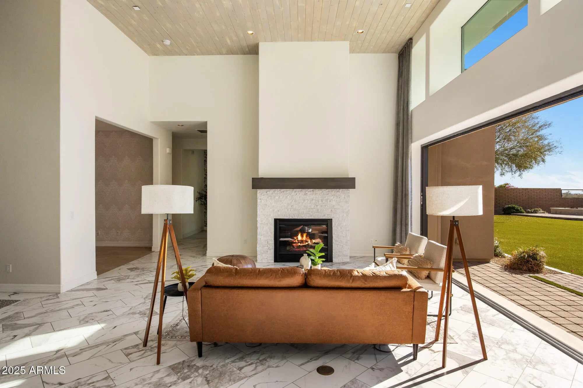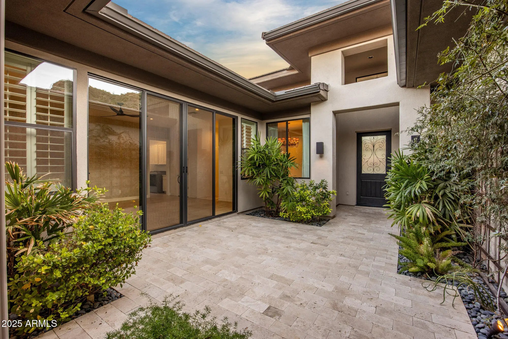AMAZING spacious private backyard with room to add a pool or more! Experience elevated desert living in this stunning MOVE-IN READY contemporary residence tucked behind the gates of prestigious Adero Canyon. This 3-bedroom, 3.5-bath Parker model by Toll Brothers is framed by dramatic mountain silhouettes and vibrant desert landscaping, capturing the essence of refined Sonoran luxury with its breathtaking indoor/outdoor connection. A modern stone exterior and gated front courtyard create a private, tranquil welcome before entering light-filled interiors defined by soaring ceilings, expansive windows, sleek architectural lines, and effortless livability. The great room centers around a striking stone fireplace and opens seamlessly to the impressive outdoor living spaces. Designed for both grand entertaining and everyday serenity, the resort-style backyard offers multiple destinations: a spacious covered patio, elegant pergola with full stone fireplace, soothing water feature, fire pit lounge, and manicured turfall backing to unobstructed canyon views for unmatched privacy and natural beauty. Every room is thoughtfully positioned to maximize natural light and panoramic scenery, elevating the home's sense of calm and sophistication. Timeless finishes and meticulous detailing create a truly move-in-ready opportunity within one of the area's most coveted luxury enclaves. Walking distance from The Adero Club (memberships available), the Adero Trailhead, world-class hiking, dining, and conveniencesincluding Mayo Clinic and BASIS Schoolthis exceptional property blends privacy, modern elegance, and a true desert-resort lifestyle.