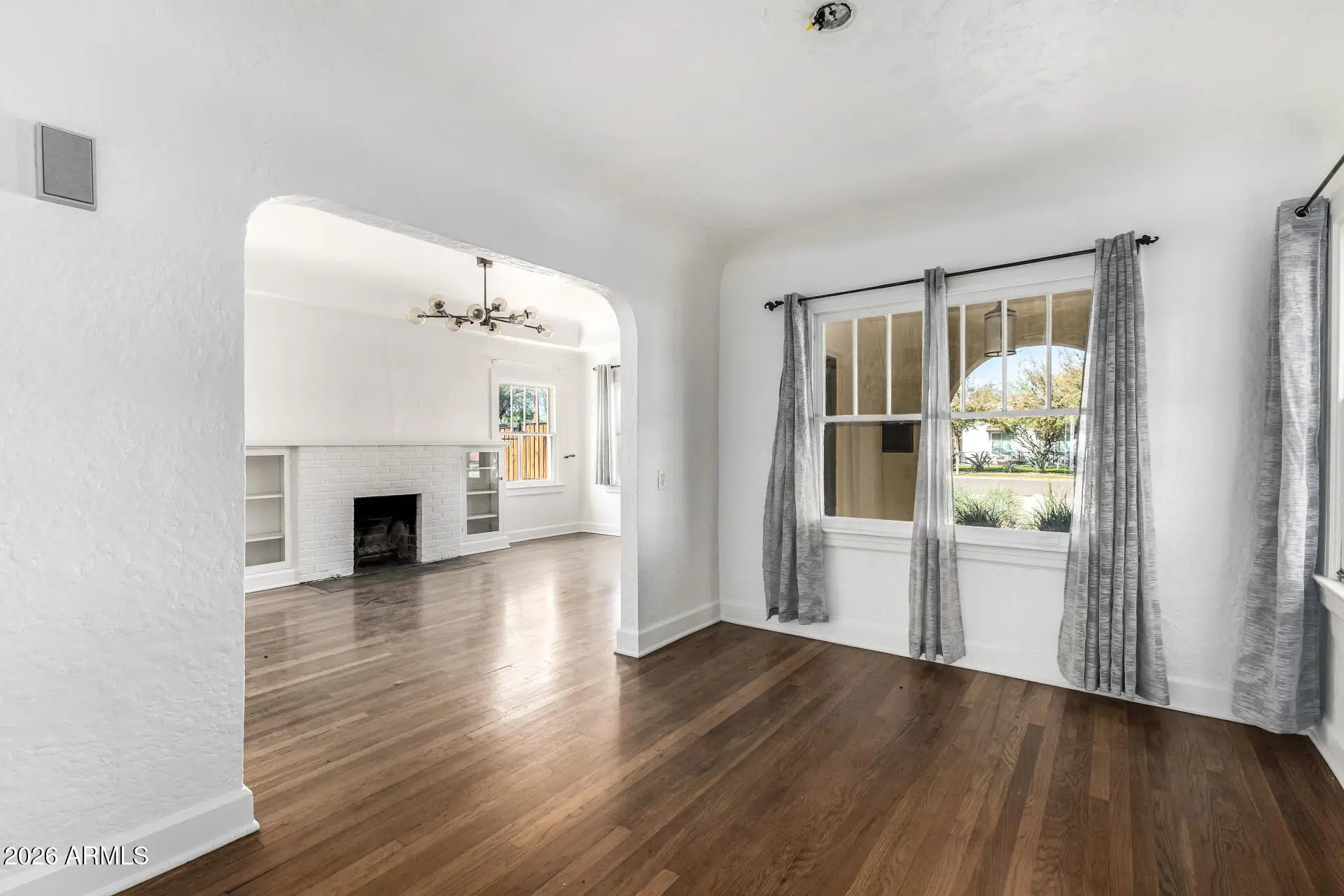This rare offering features a 3-bedroom, 2-bath main home plus a fully detached 1-bedroom, 1-bath casita with kitchenette, private entrance, and its own A/C, all set within the coveted Willo Historic District. The main residence showcases original hardwood floors, a spacious living room with custom built-ins and a wood-burning fireplace, and abundant natural light through large windows, several upgraded to dual-pane. A formal dining room anchors the layout, while the galley kitchen includes granite countertops and ample cabinetry. Two bedrooms and a full bath are located upstairs, with a third bedroom and second full bath on the main level, offering flexibility for guests or multi-use living. Outdoors, the property feels like a private retreat with mature landscaping, a sparkling pool, and a relaxing hot tub. A paved patio is ideal for outdoor dining, all within a fully fenced yard with no alley access. The detached casita adds exceptional versatility for guests, extended family, or rental potential, while a one-car carport and extended driveway provide convenient off-street parking. A timeless Willo bungalow that blends historic charm, flexible living spaces, and resort-style amenities in one of Phoenix's most desirable neighborhoods.